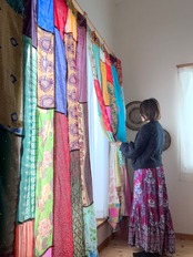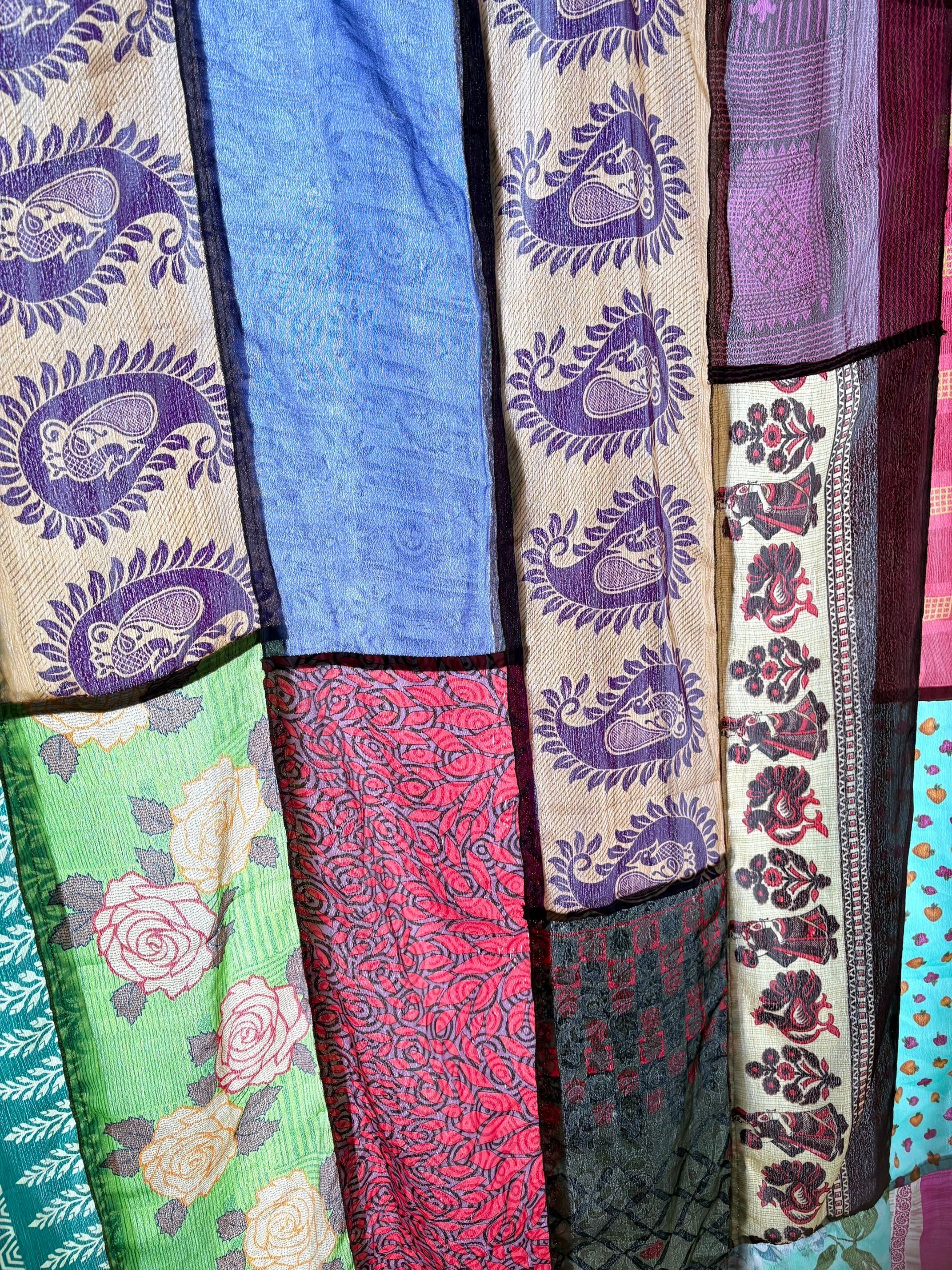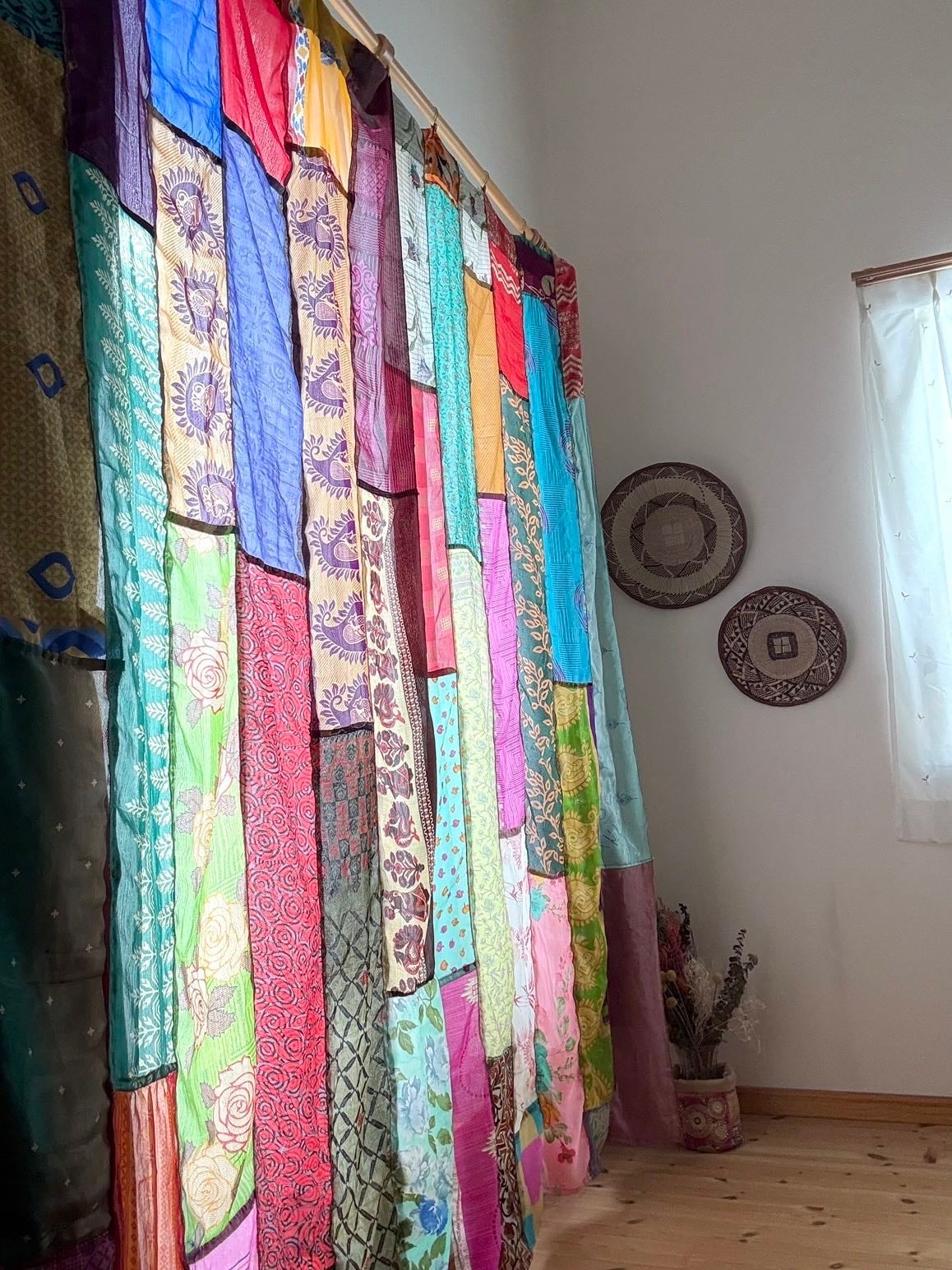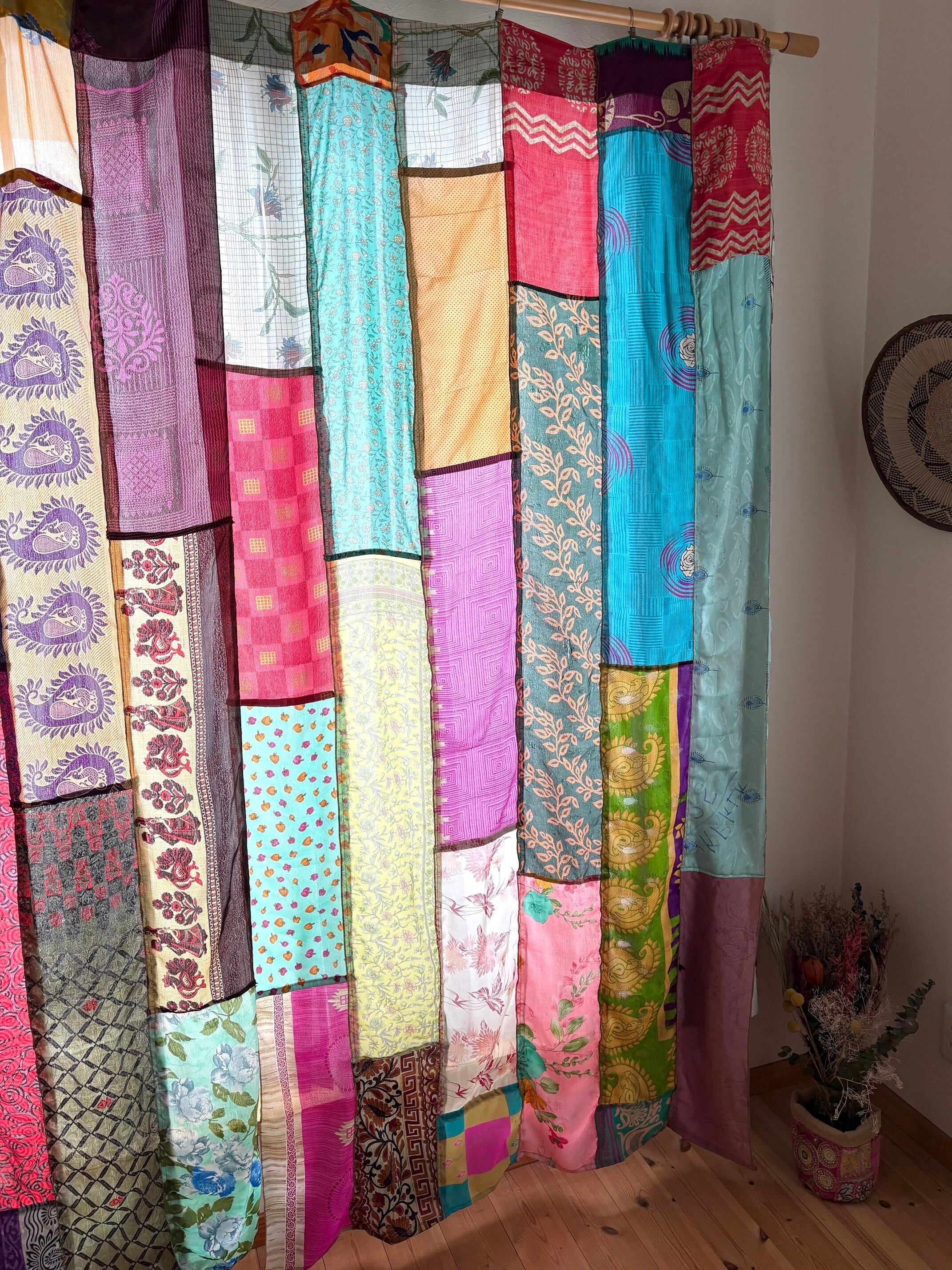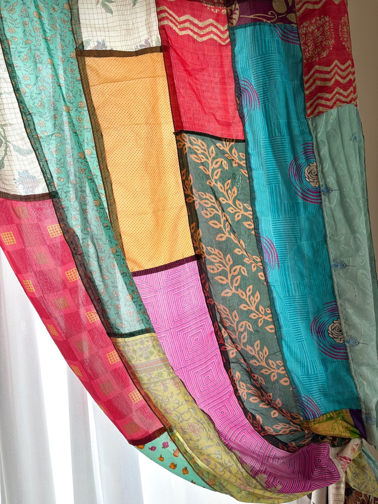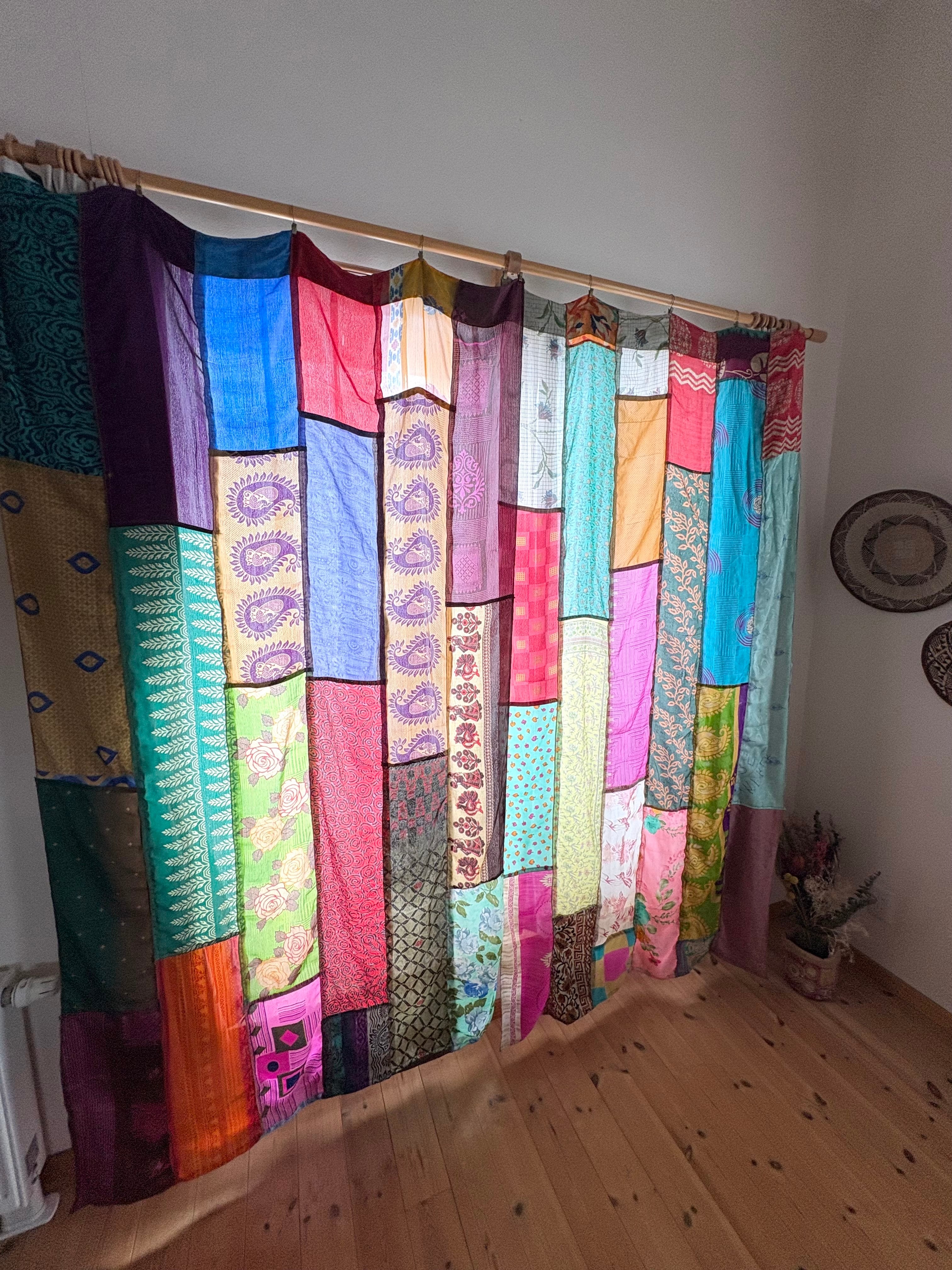 ヴィンテージサリーで出来たパッチワークシルクカーテン