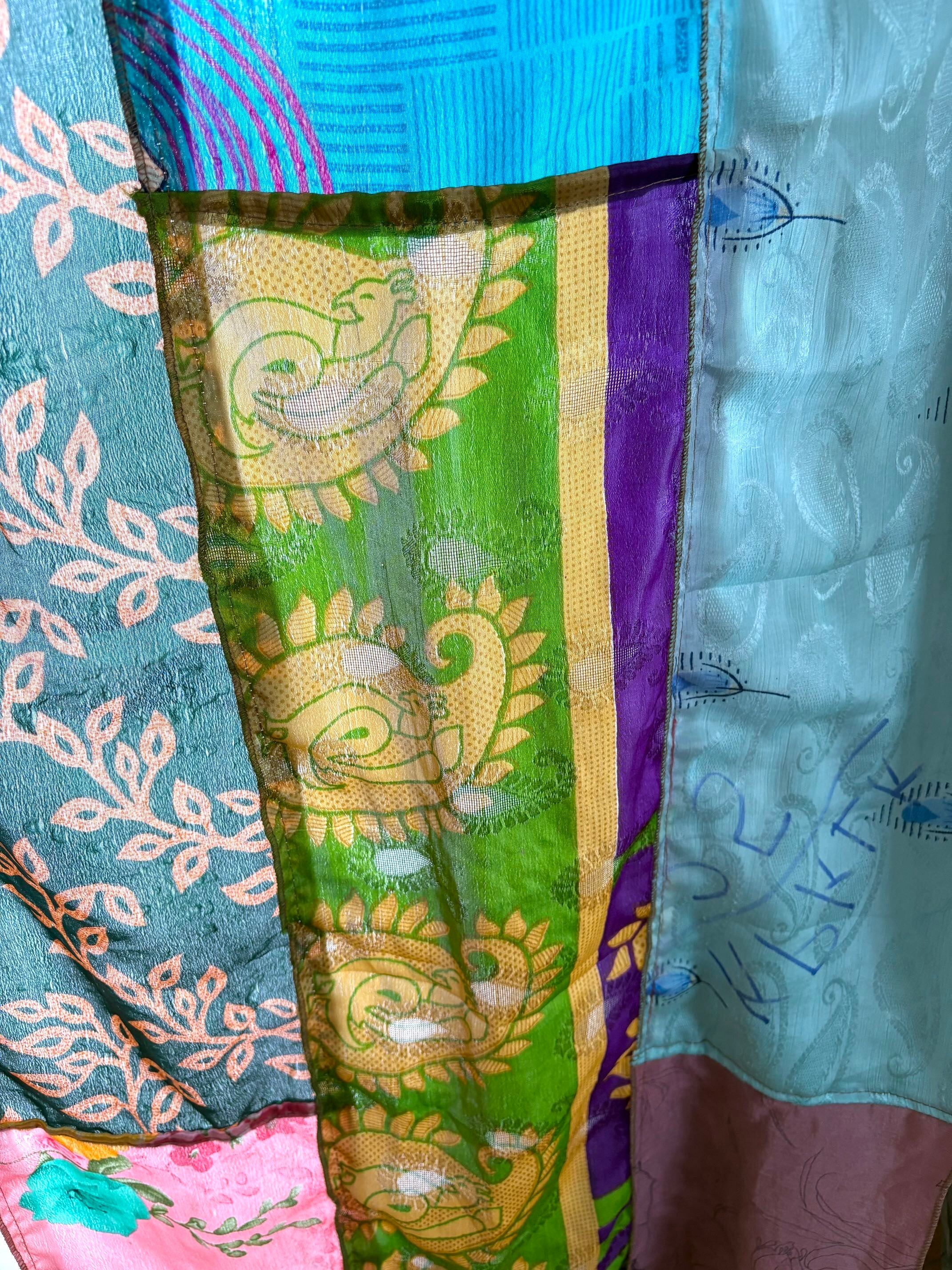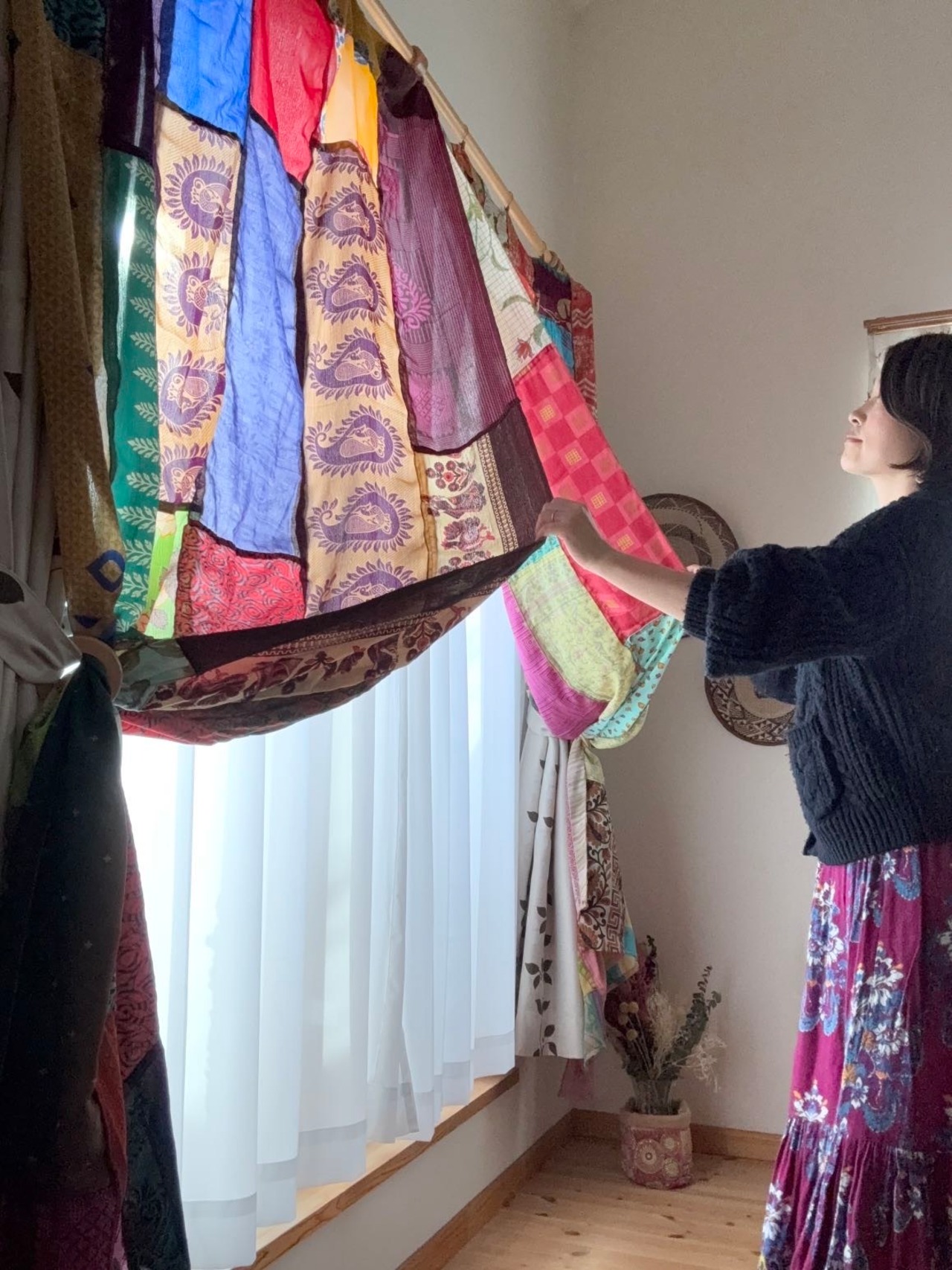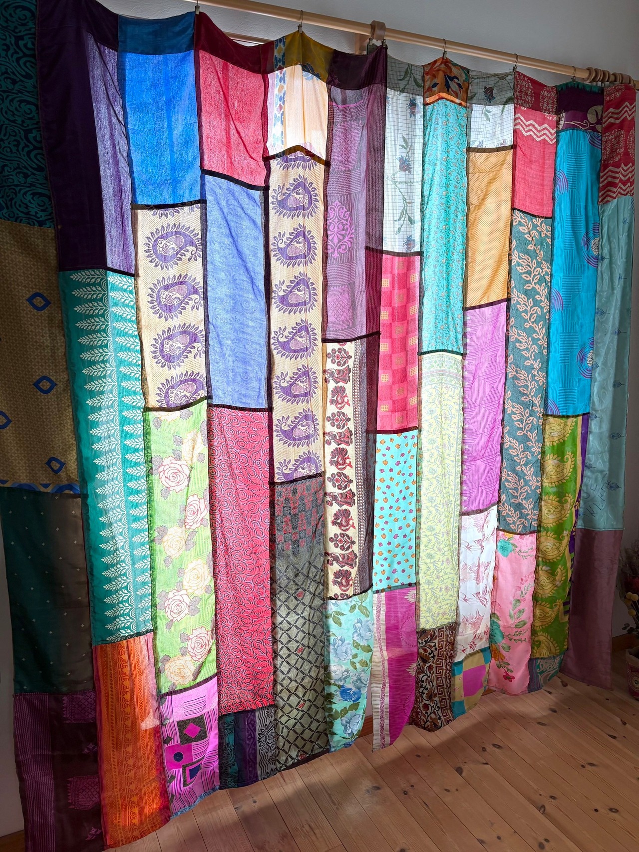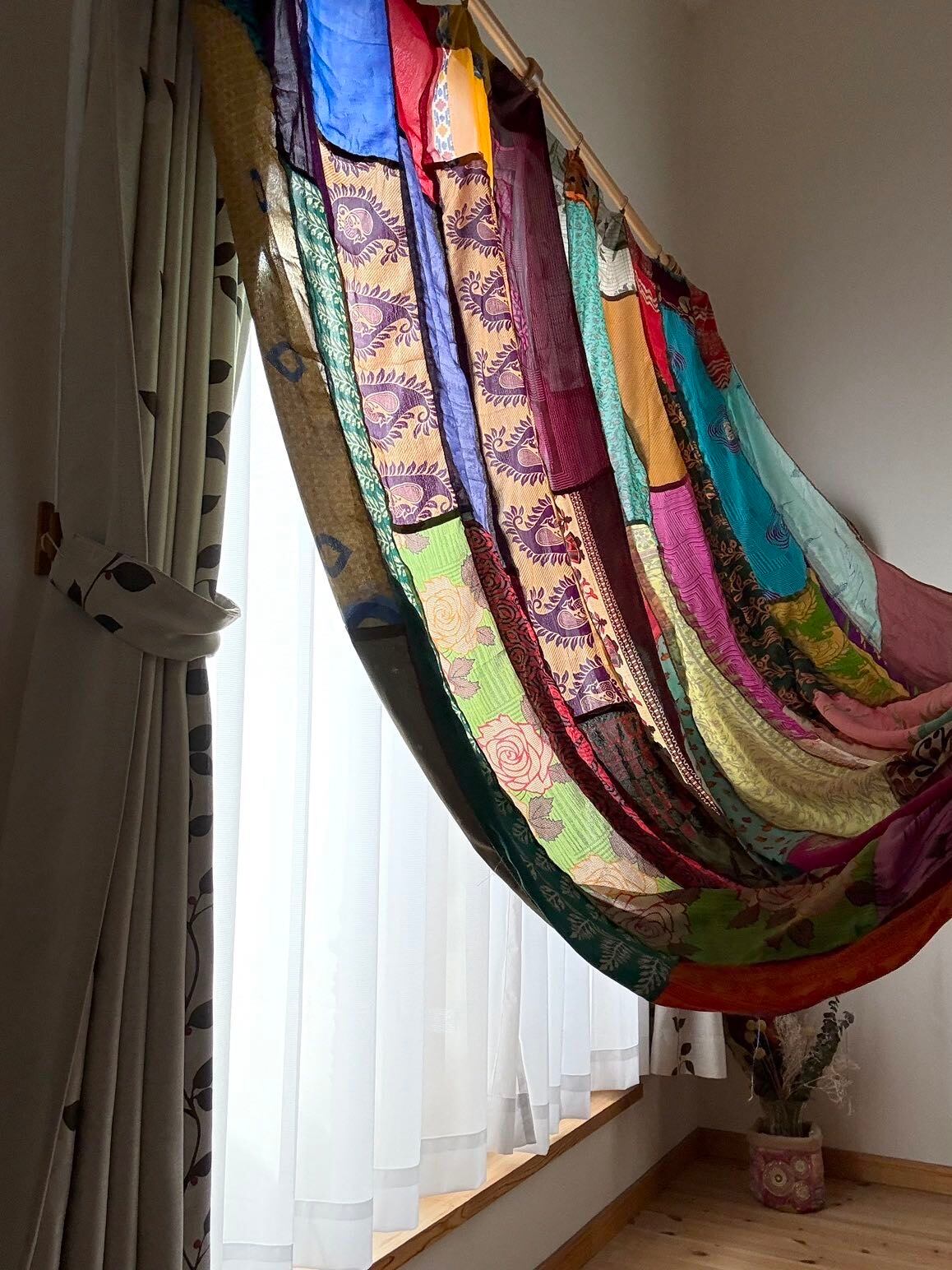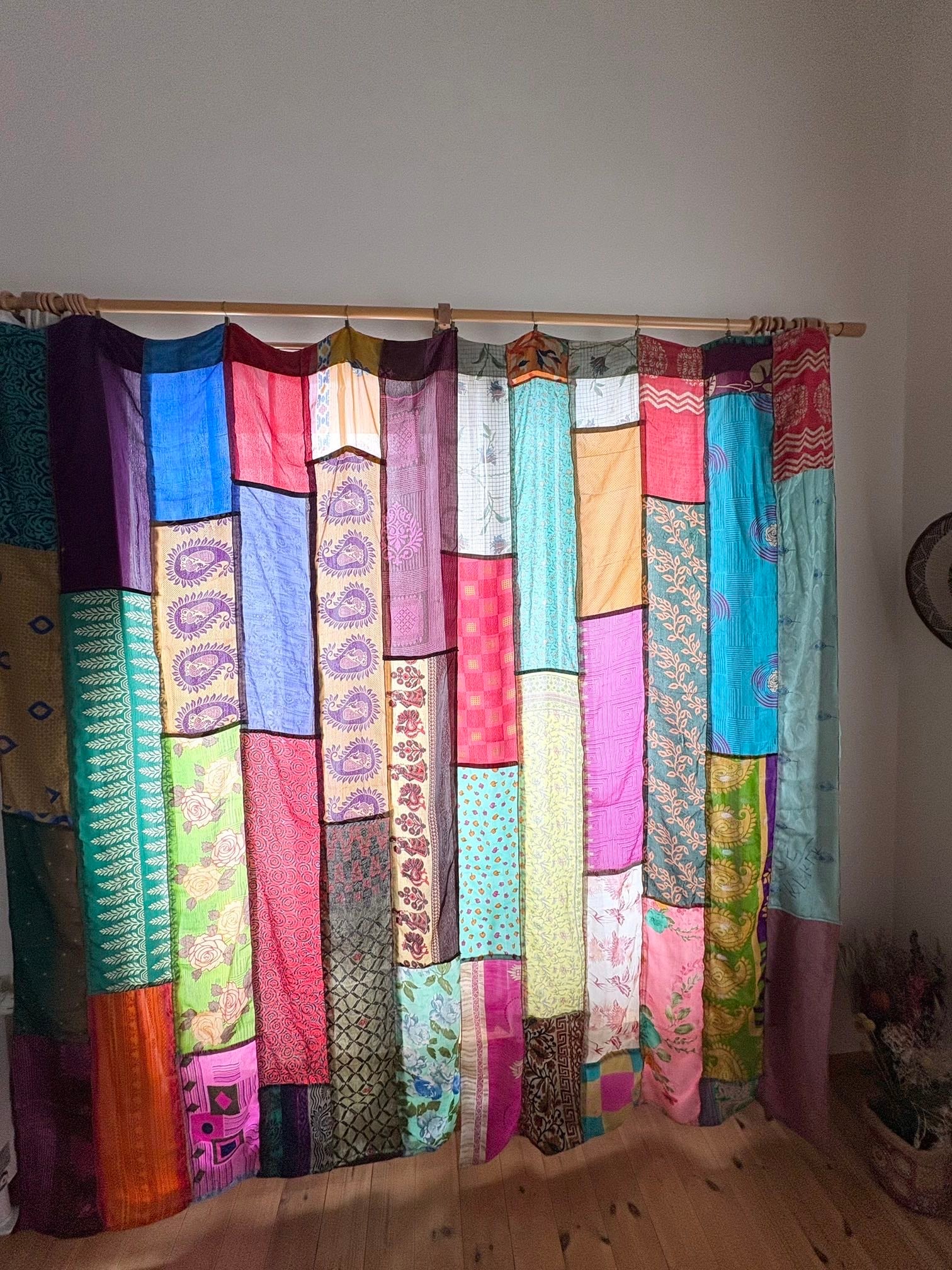 ヴィンテージサリーで出来たパッチワークシルクカーテン