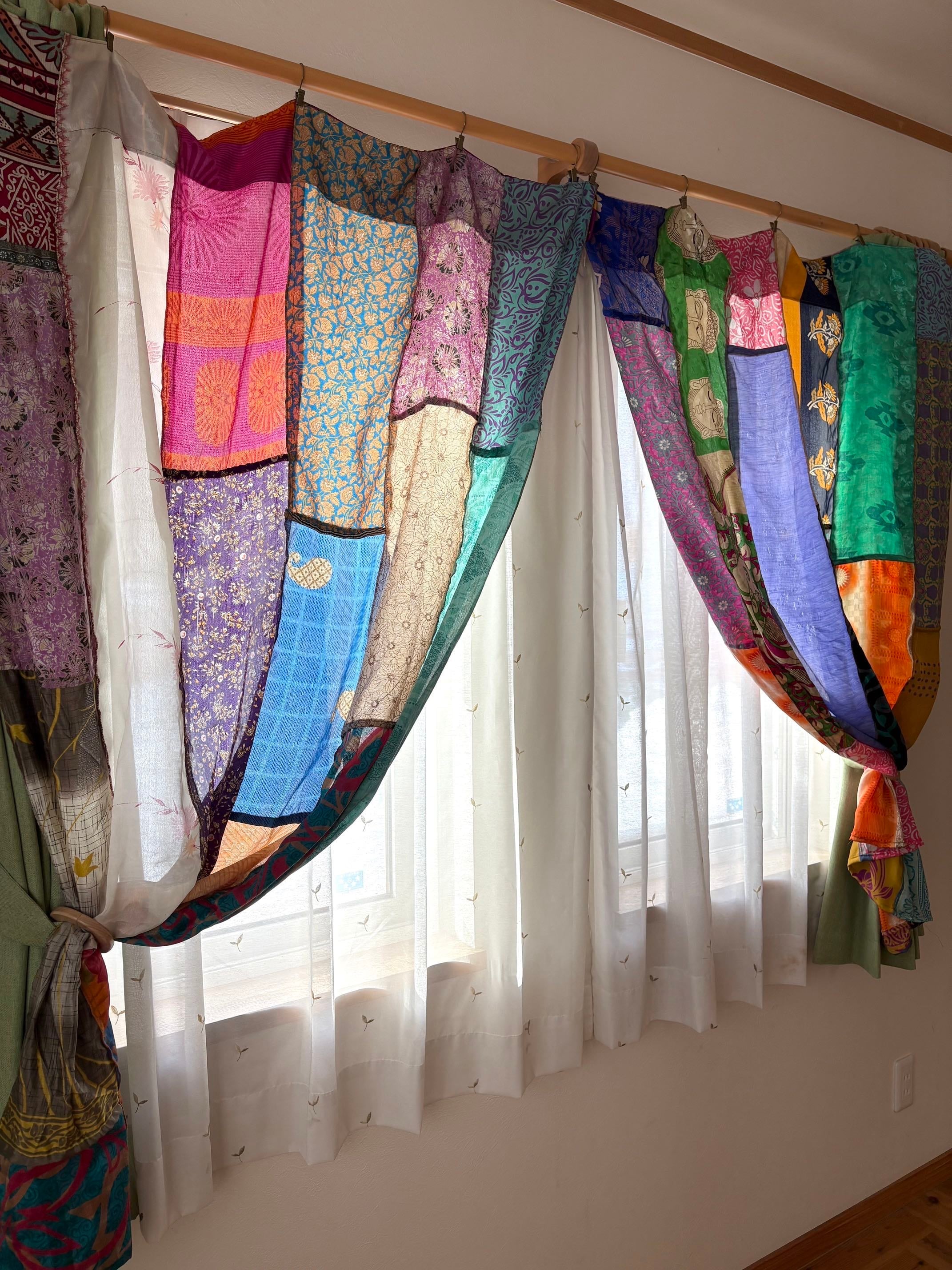 ※カーテンとしては新品未使用ですが、布はヴィンテージサリーを使っております。