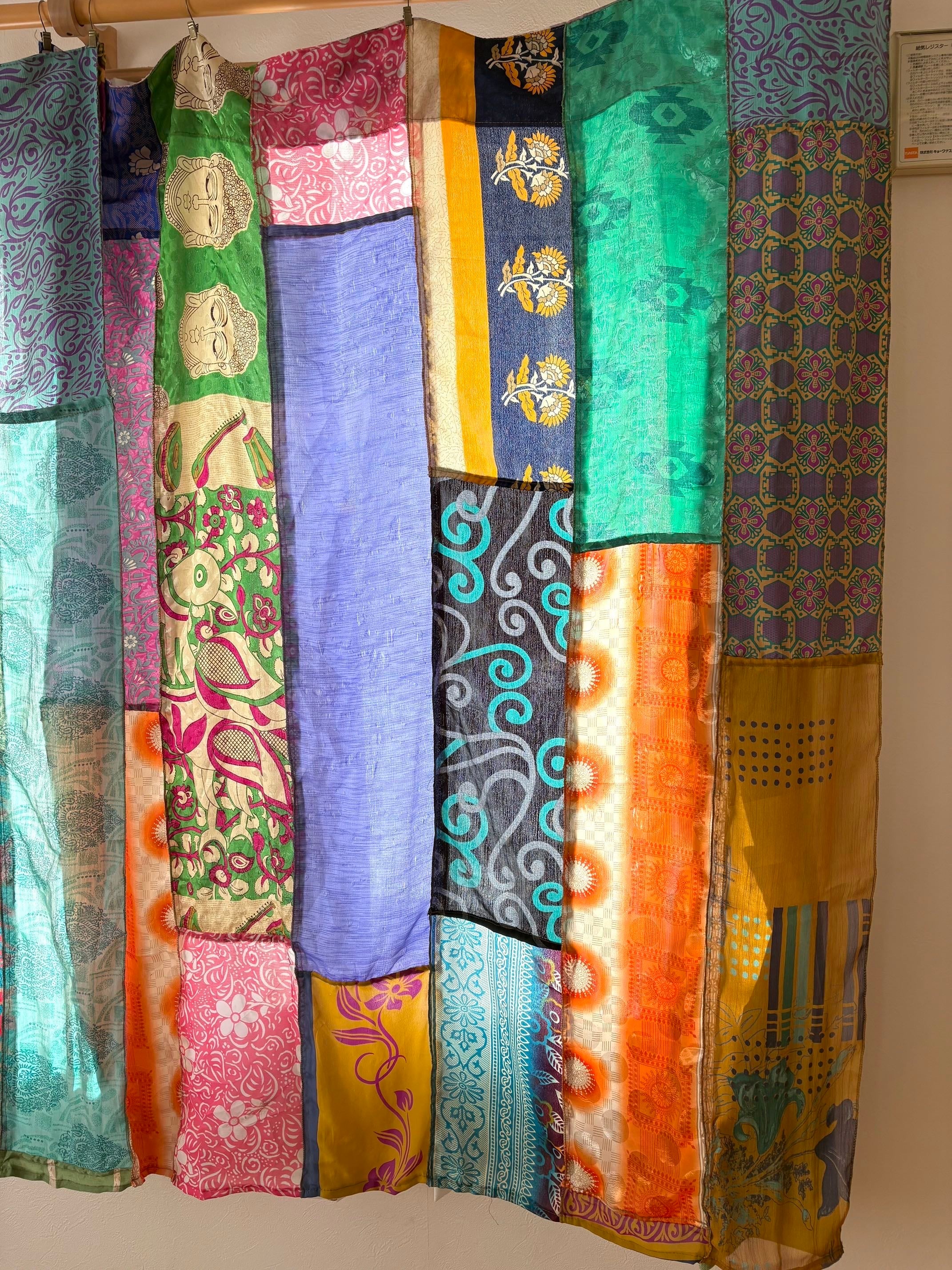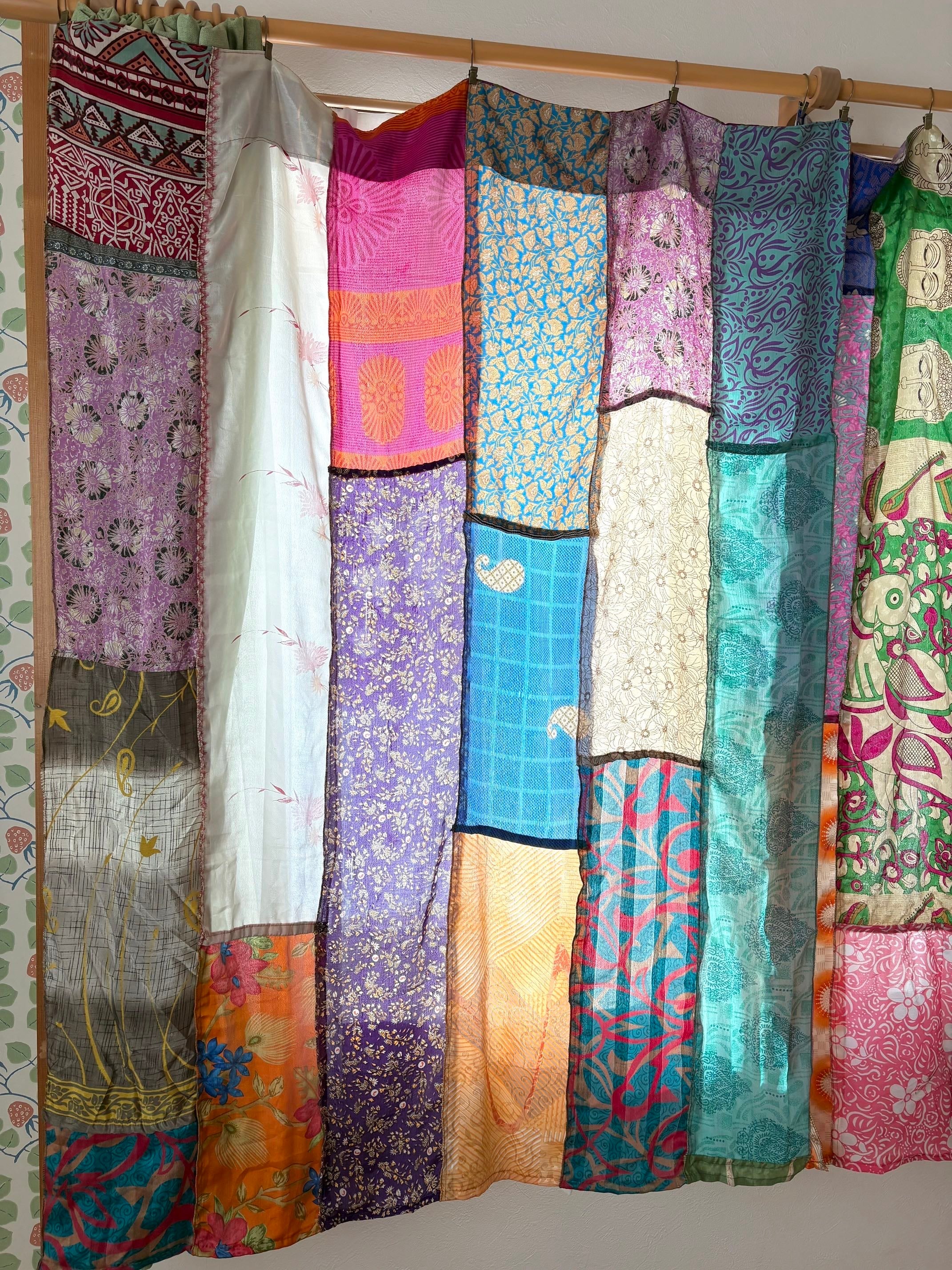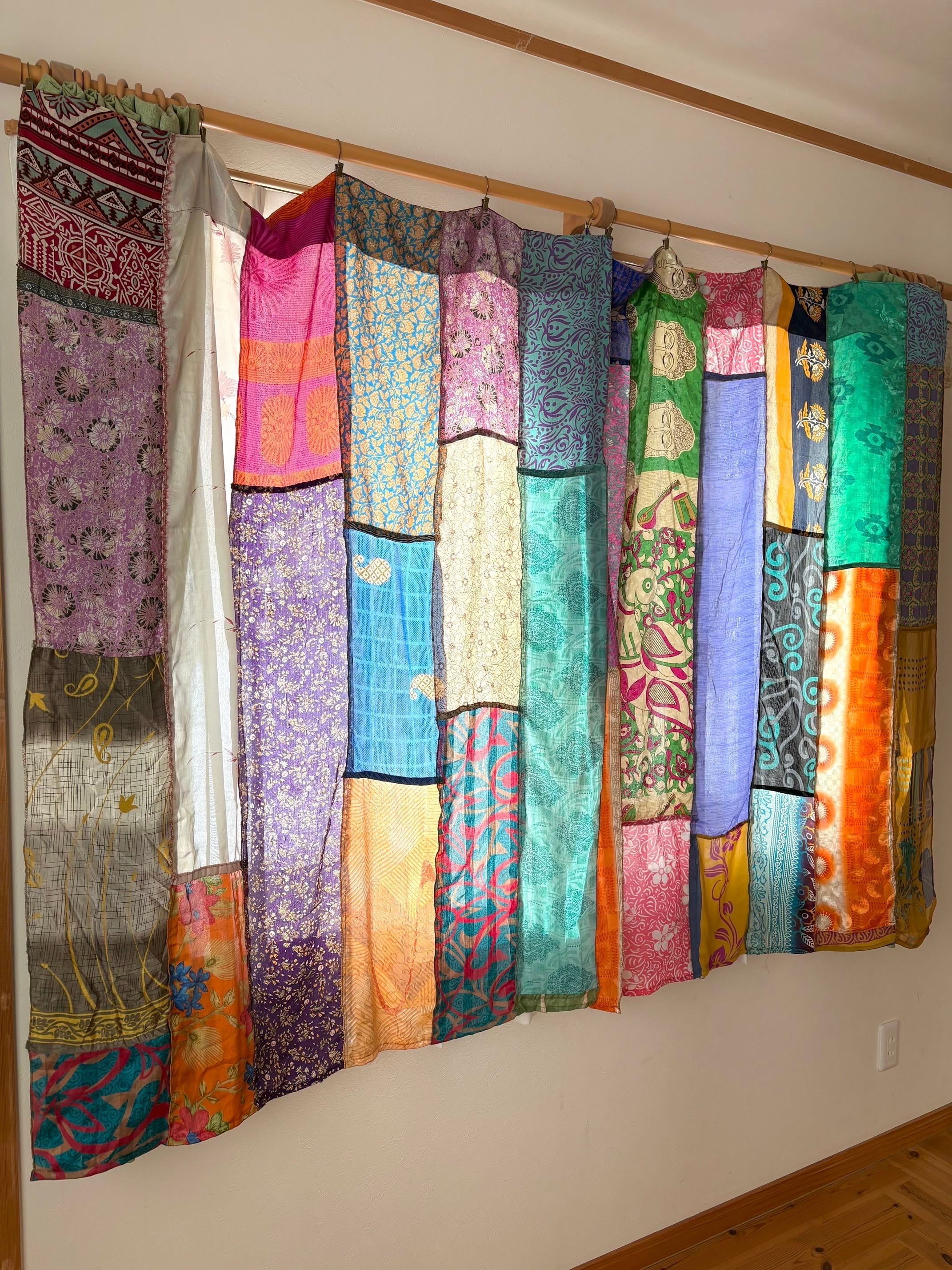 ヴィンテージサリーで出来たパッチワークシルクカーテン