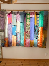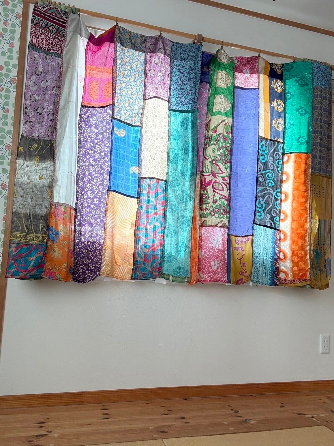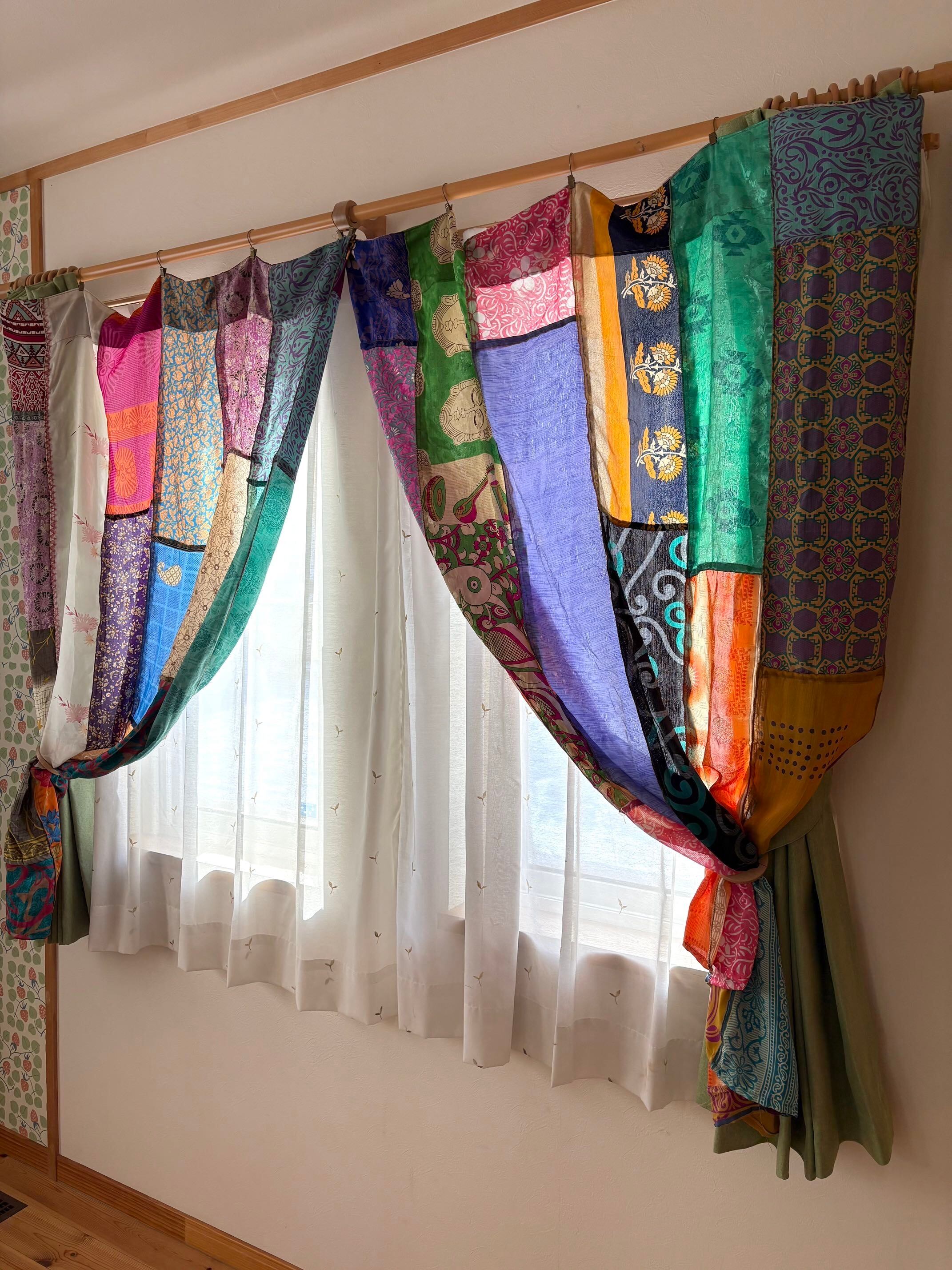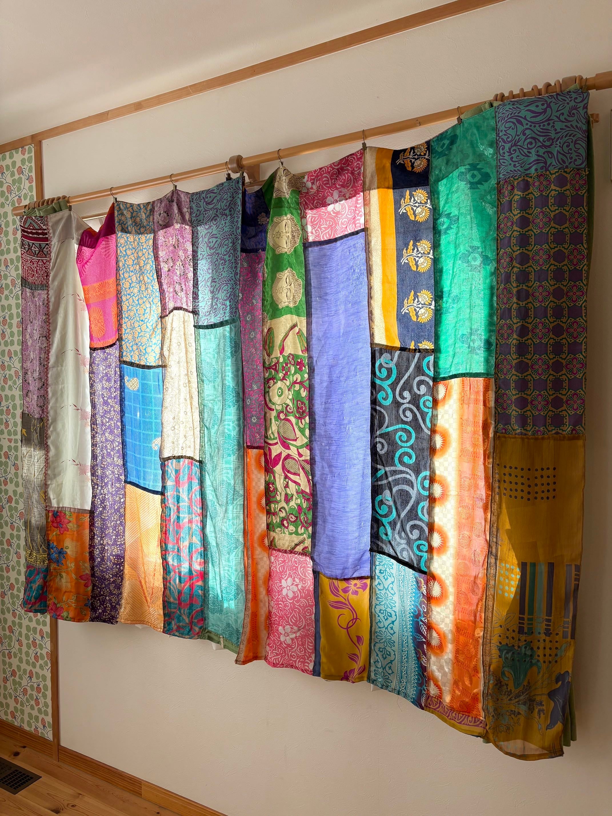 ヴィンテージサリーで出来たパッチワークシルクカーテン