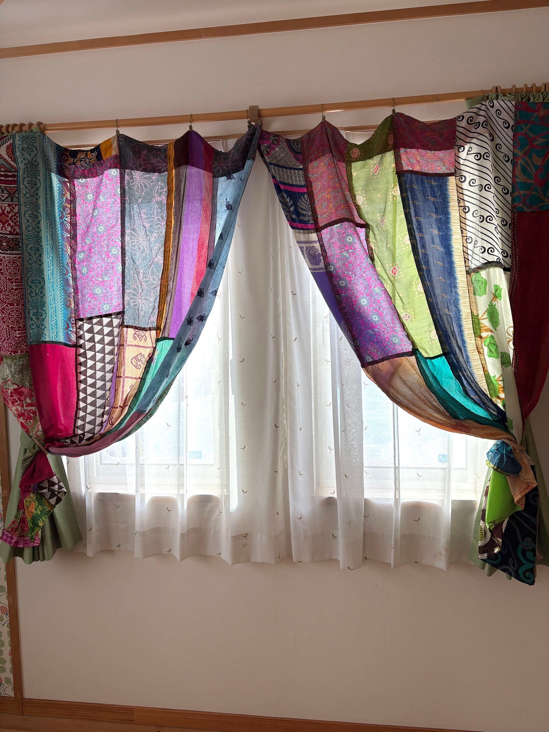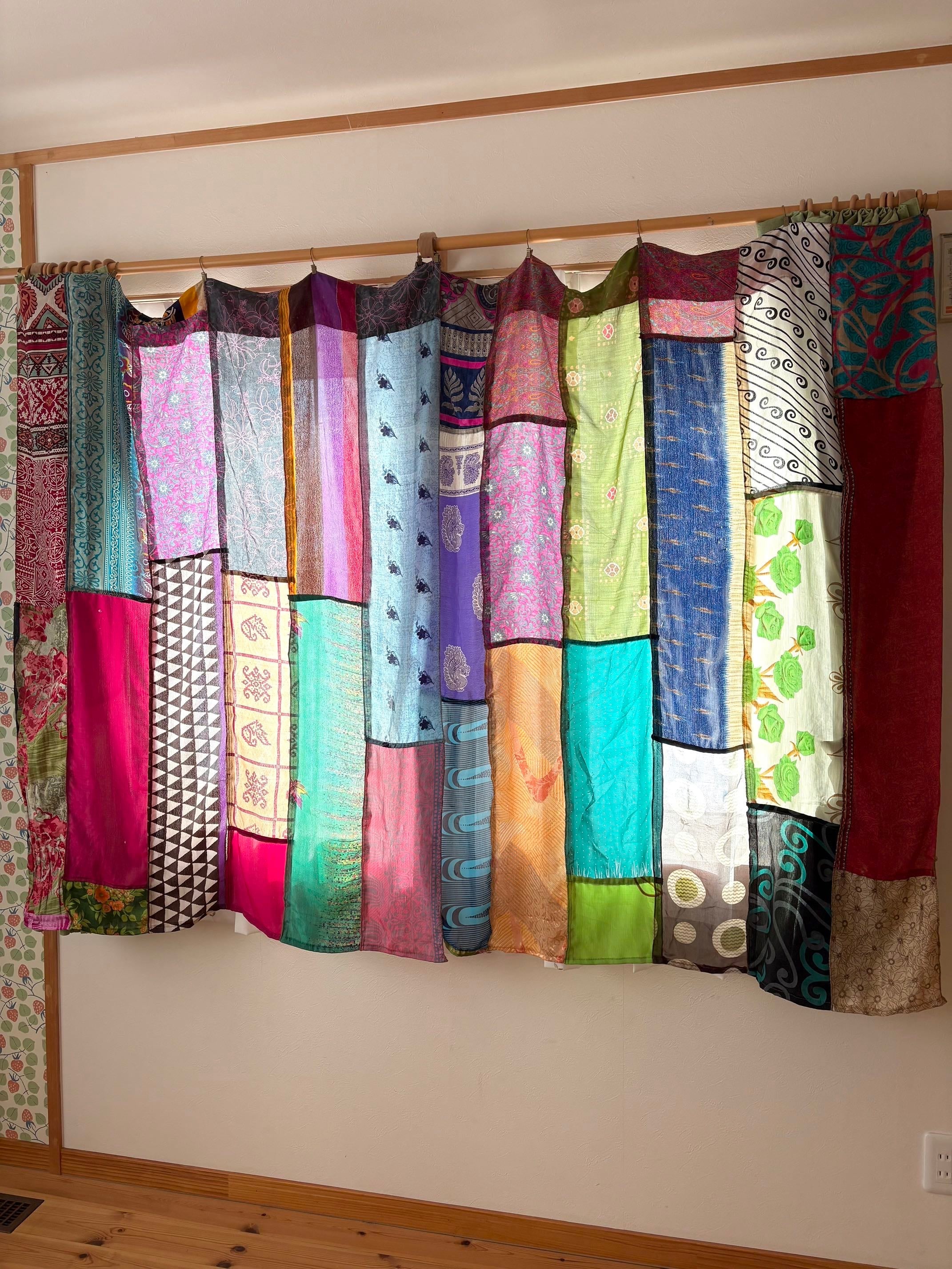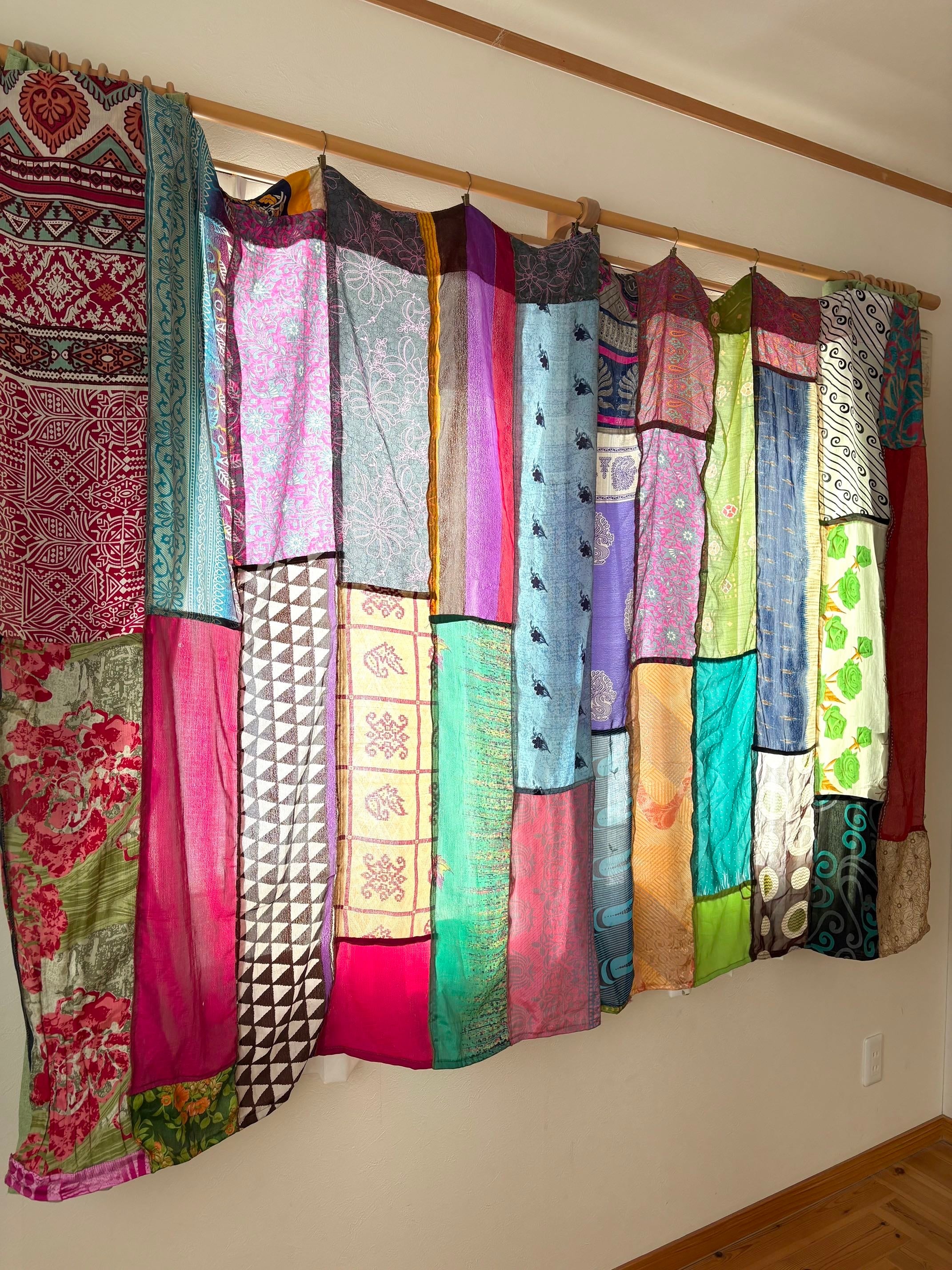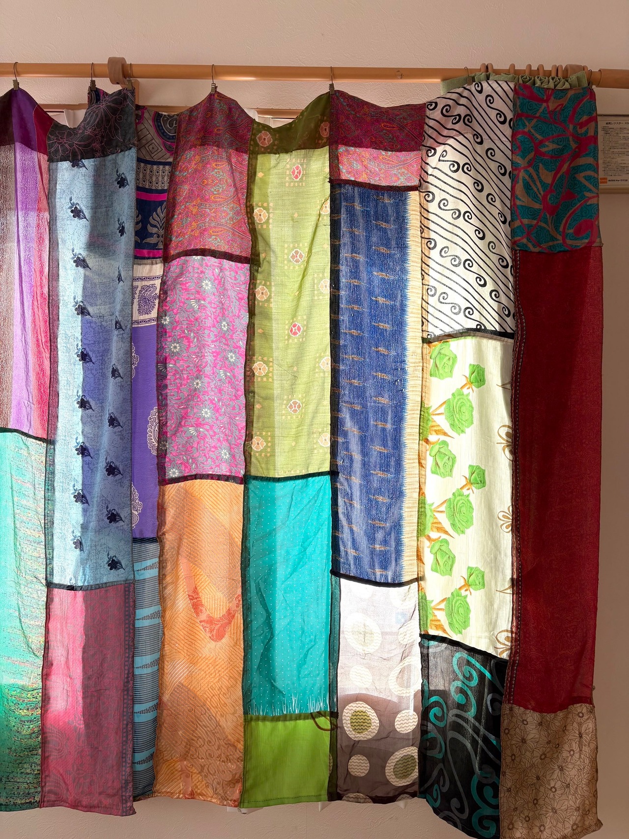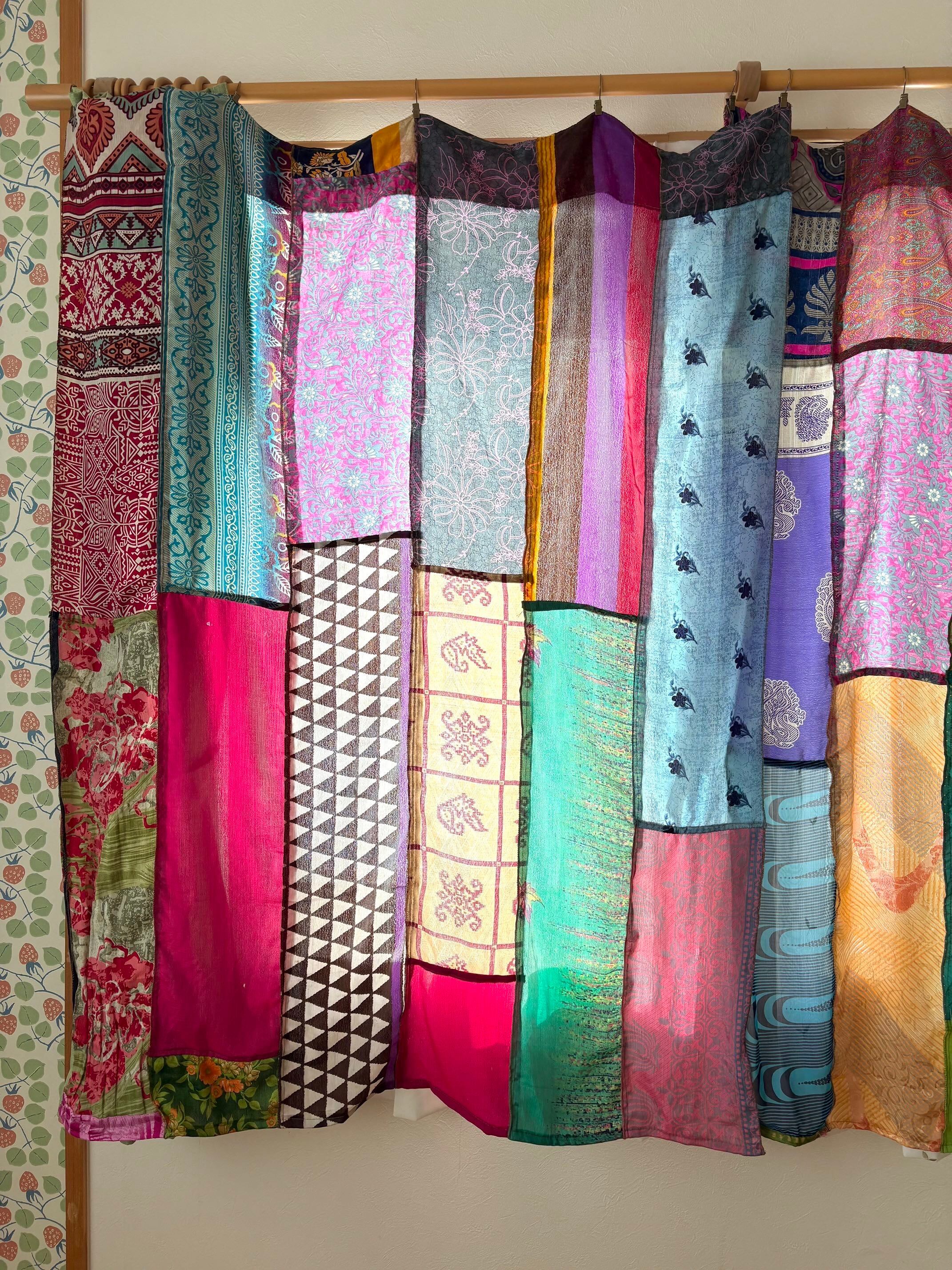 ヴィンテージサリーで出来たパッチワークシルクカーテン