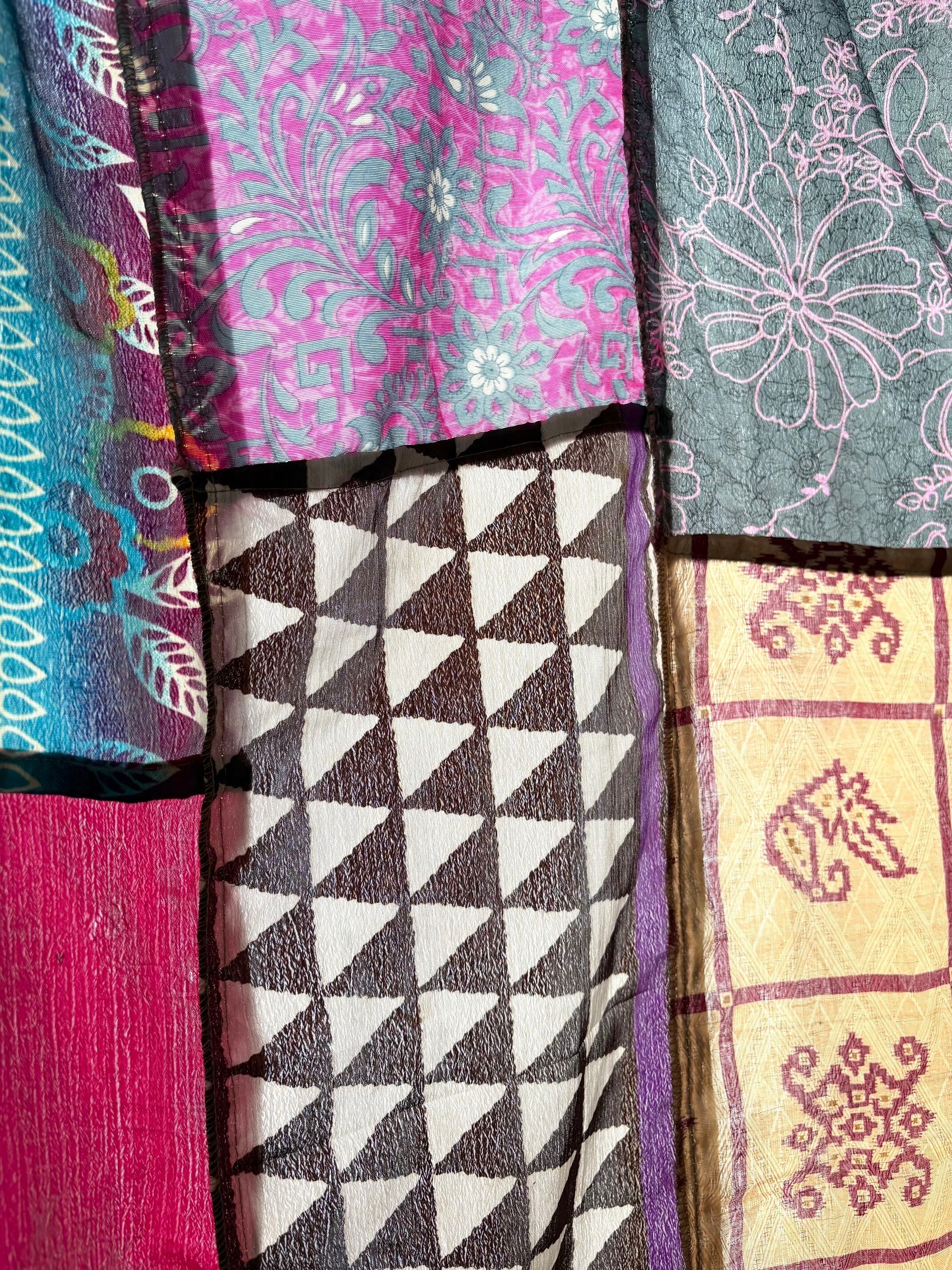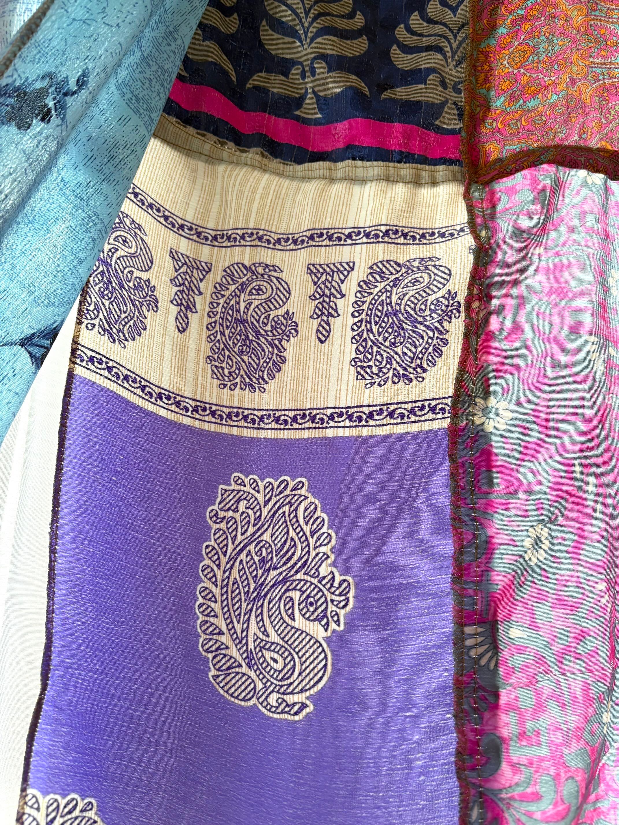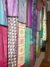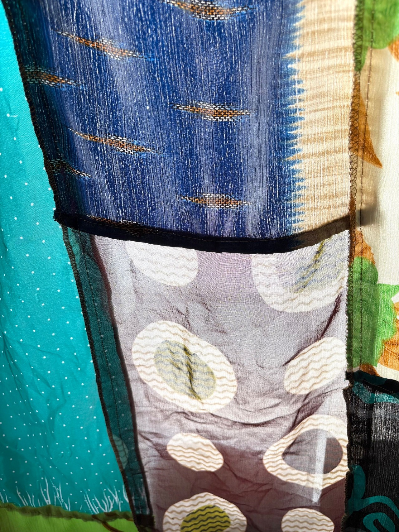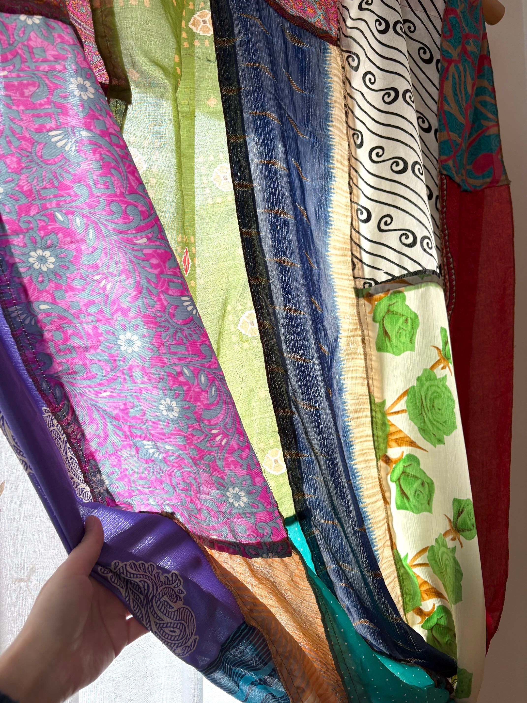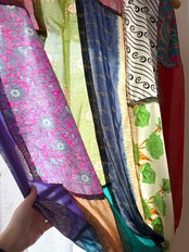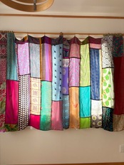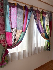 ヴィンテージサリーで出来たパッチワークシルクカーテン