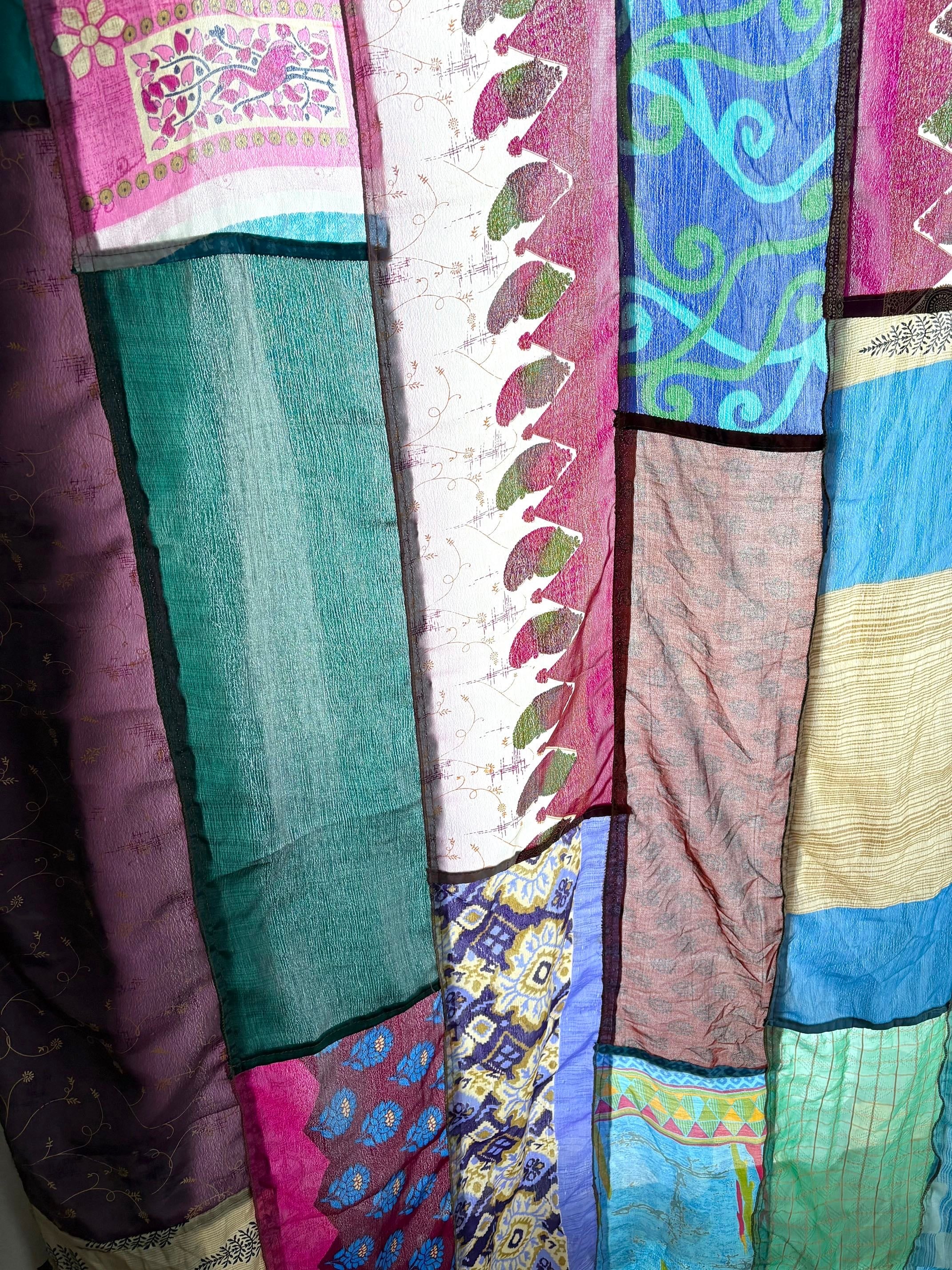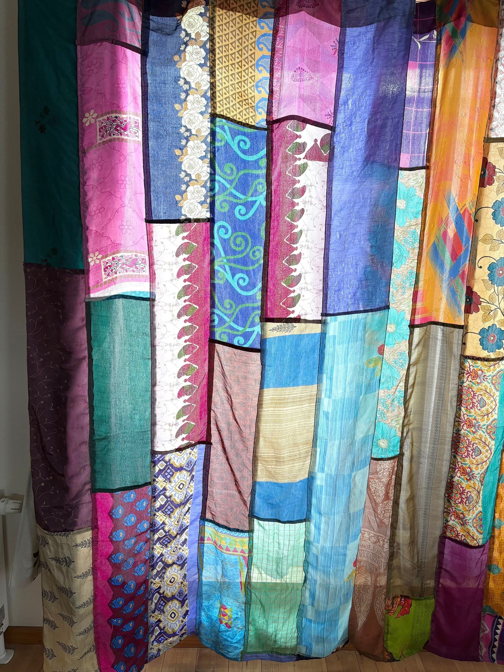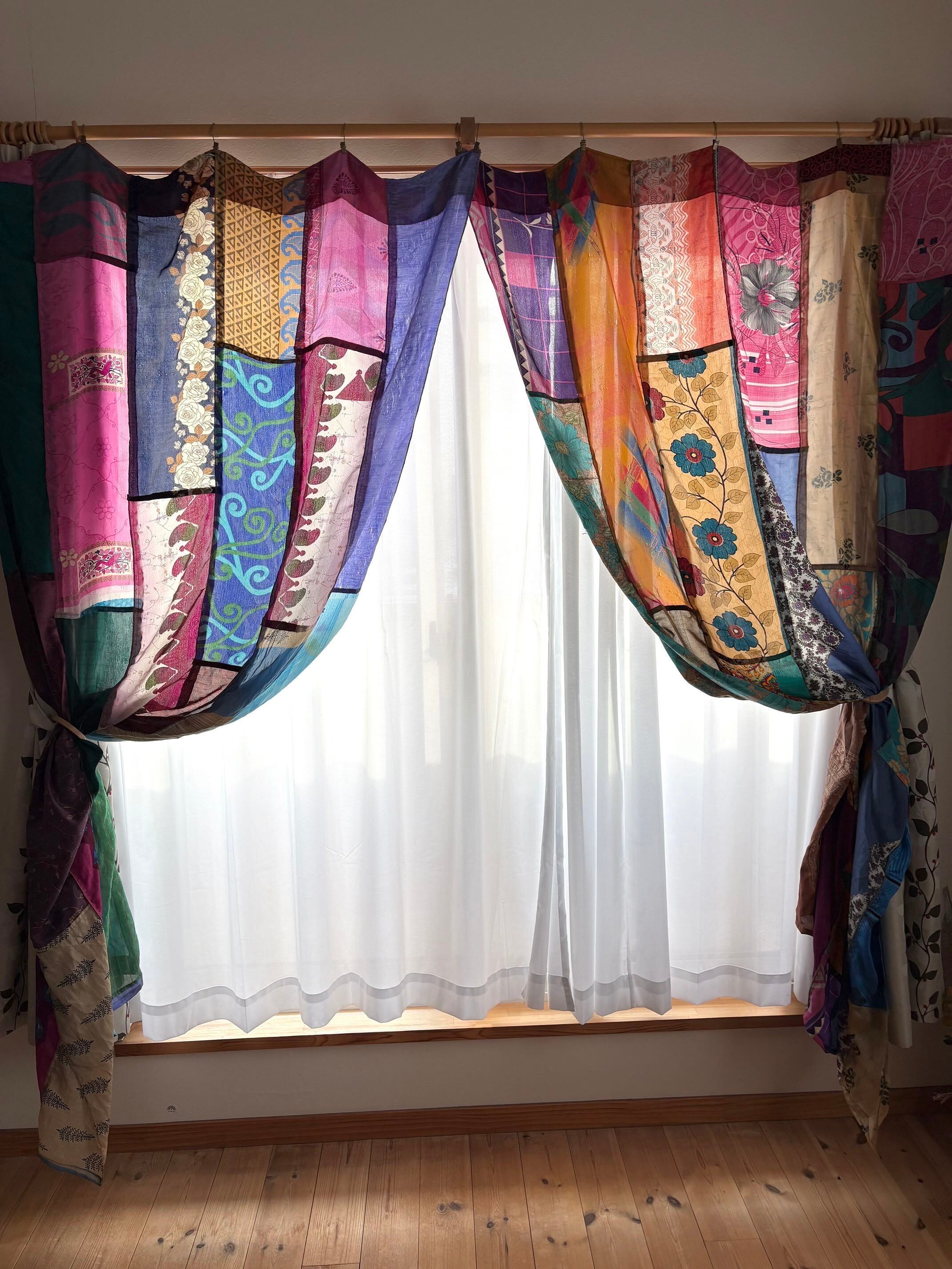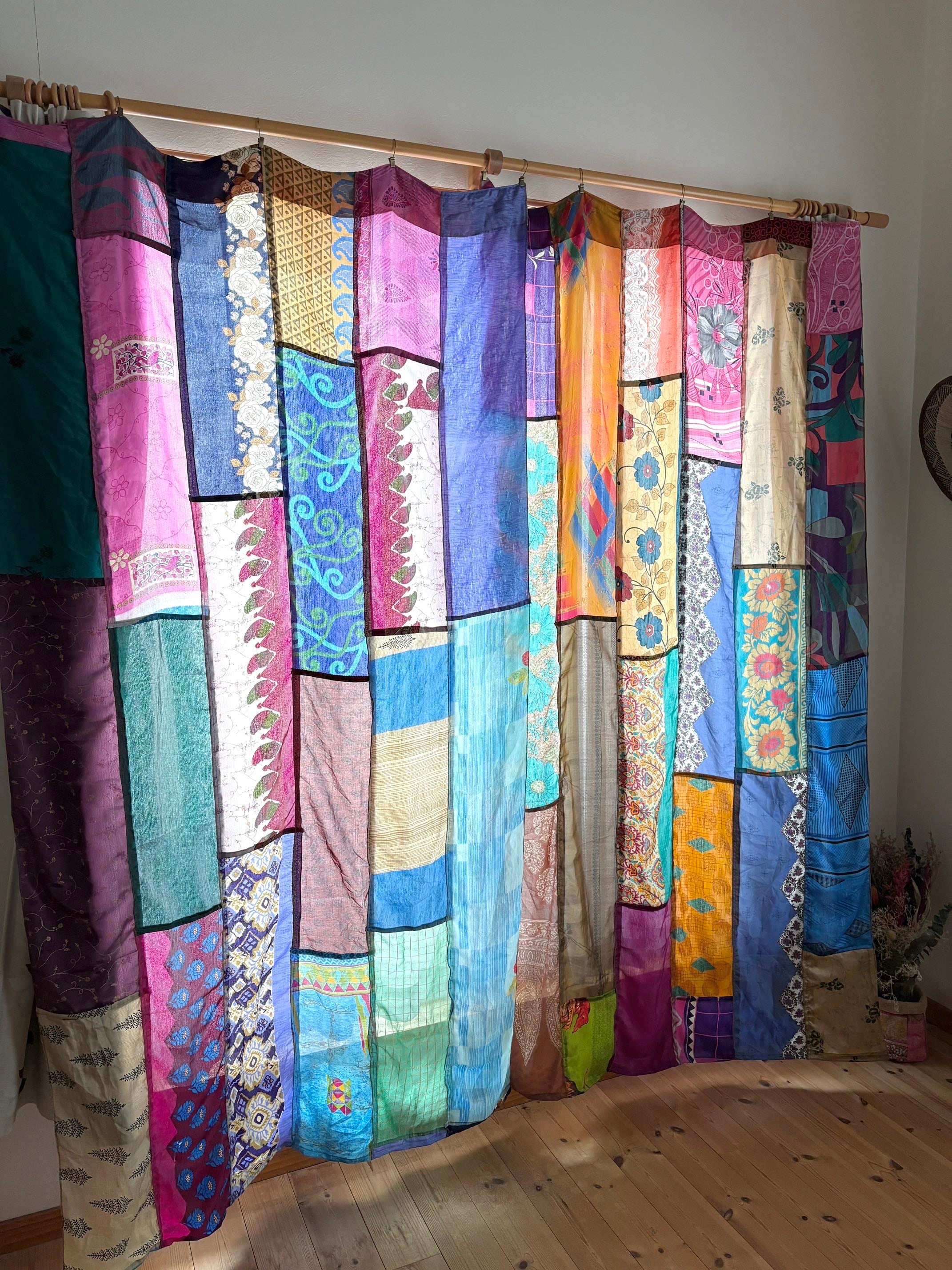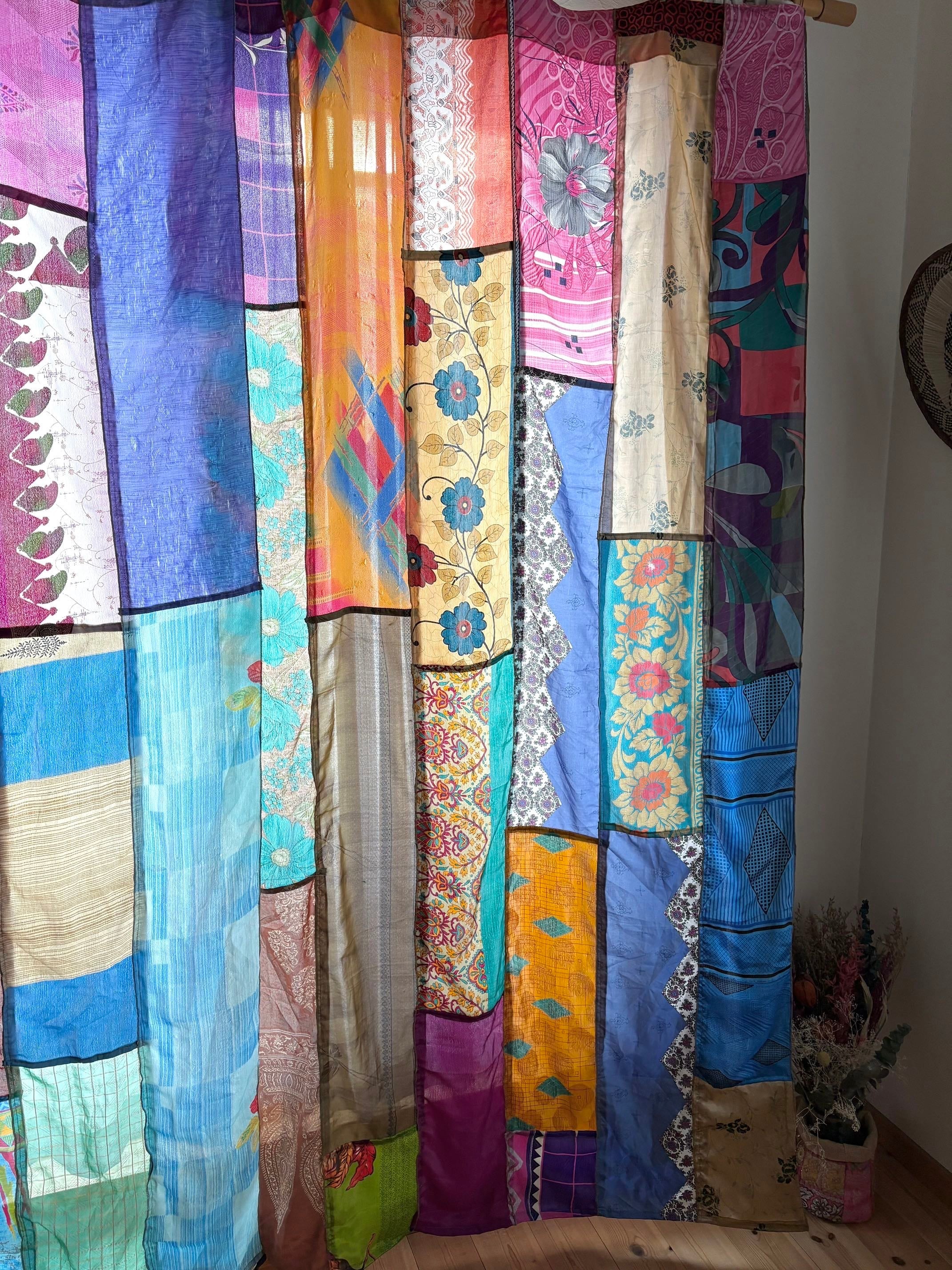 ヴィンテージサリーで出来たパッチワークシルクカーテン