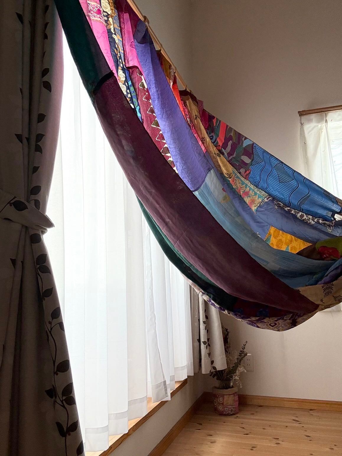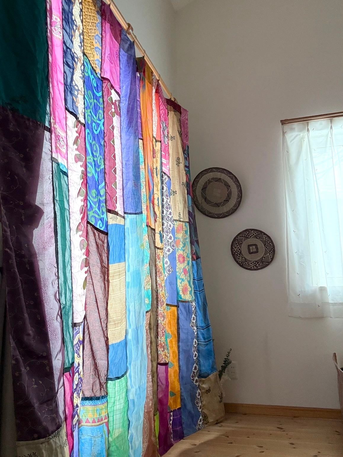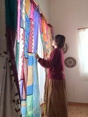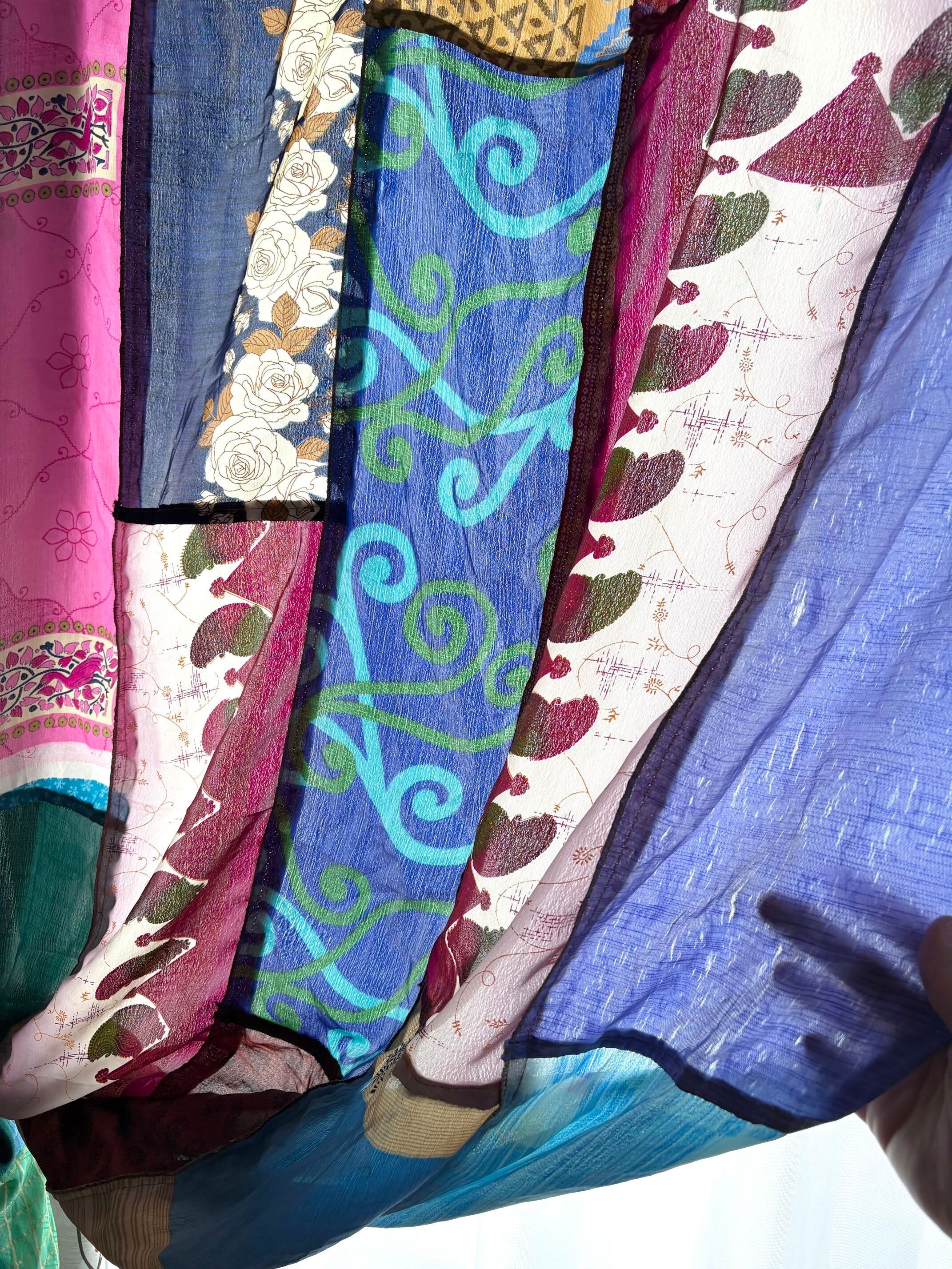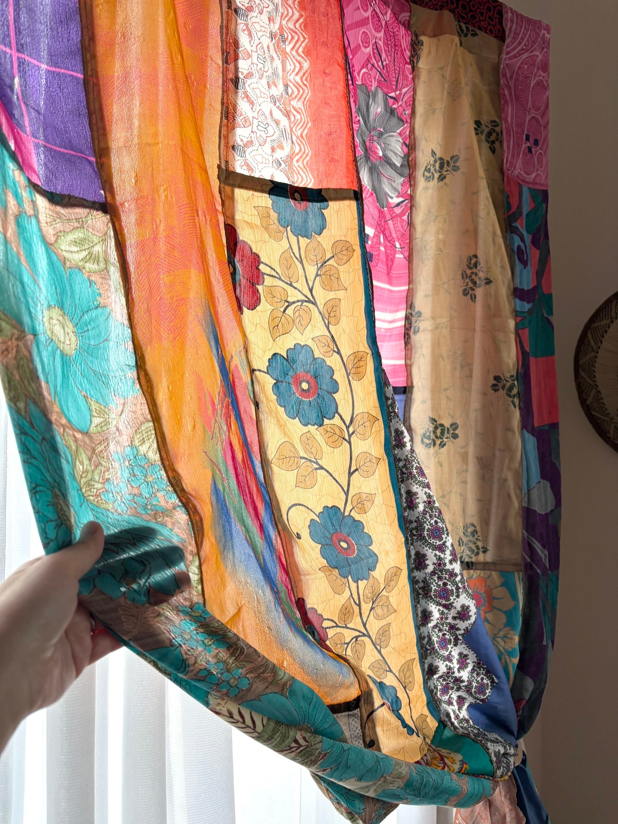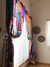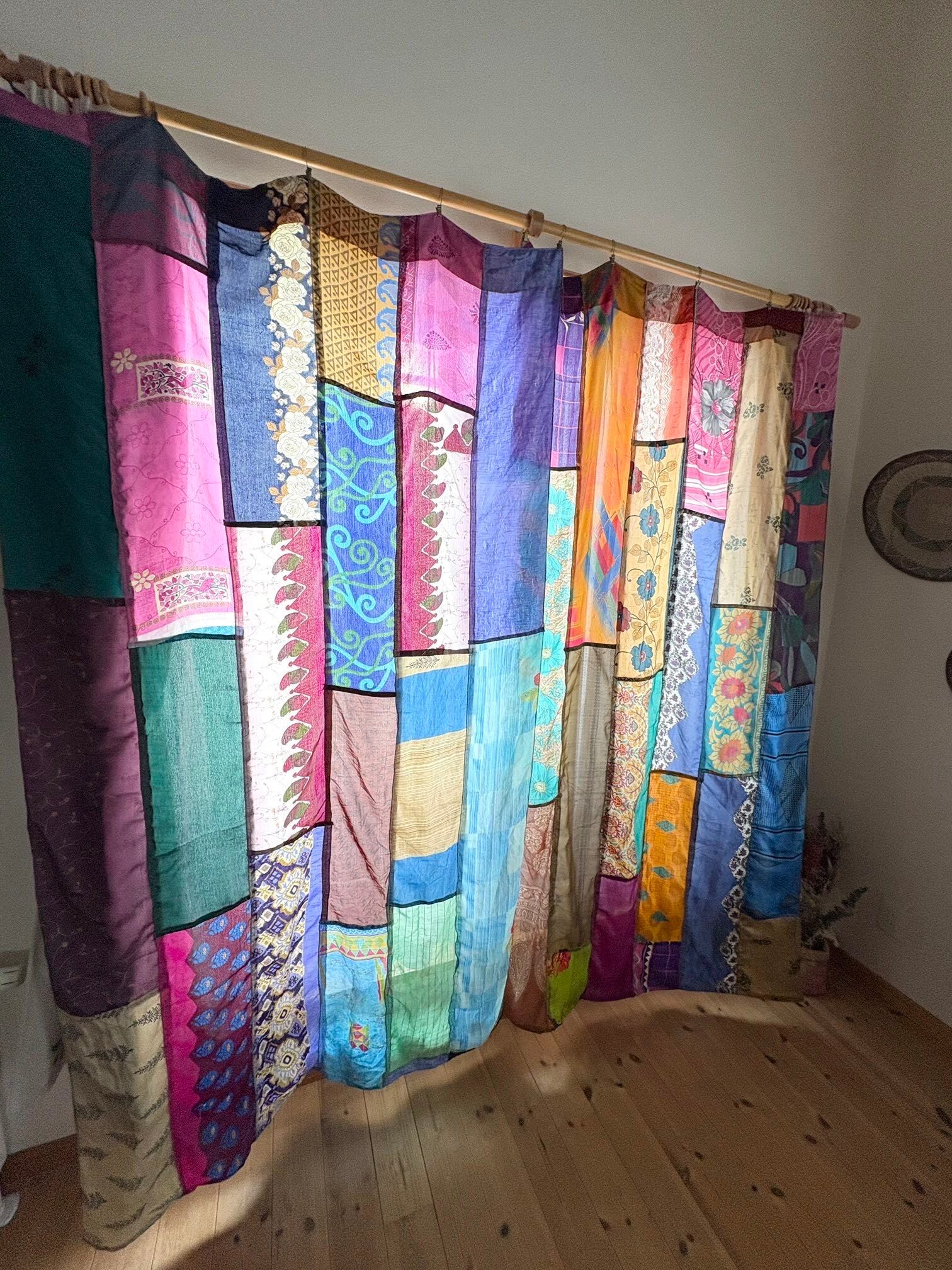 ヴィンテージサリーで出来たパッチワークシルクカーテン