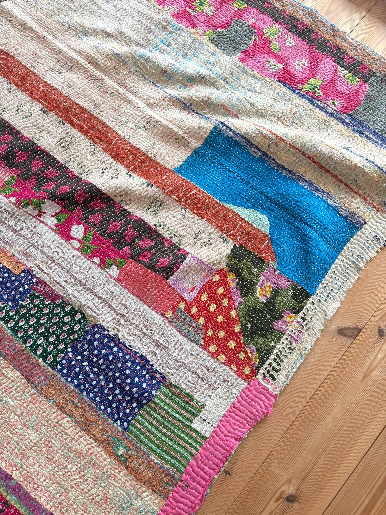 ・こちらは、インドの女性たちによる手刺繍の一点ものキルトです。