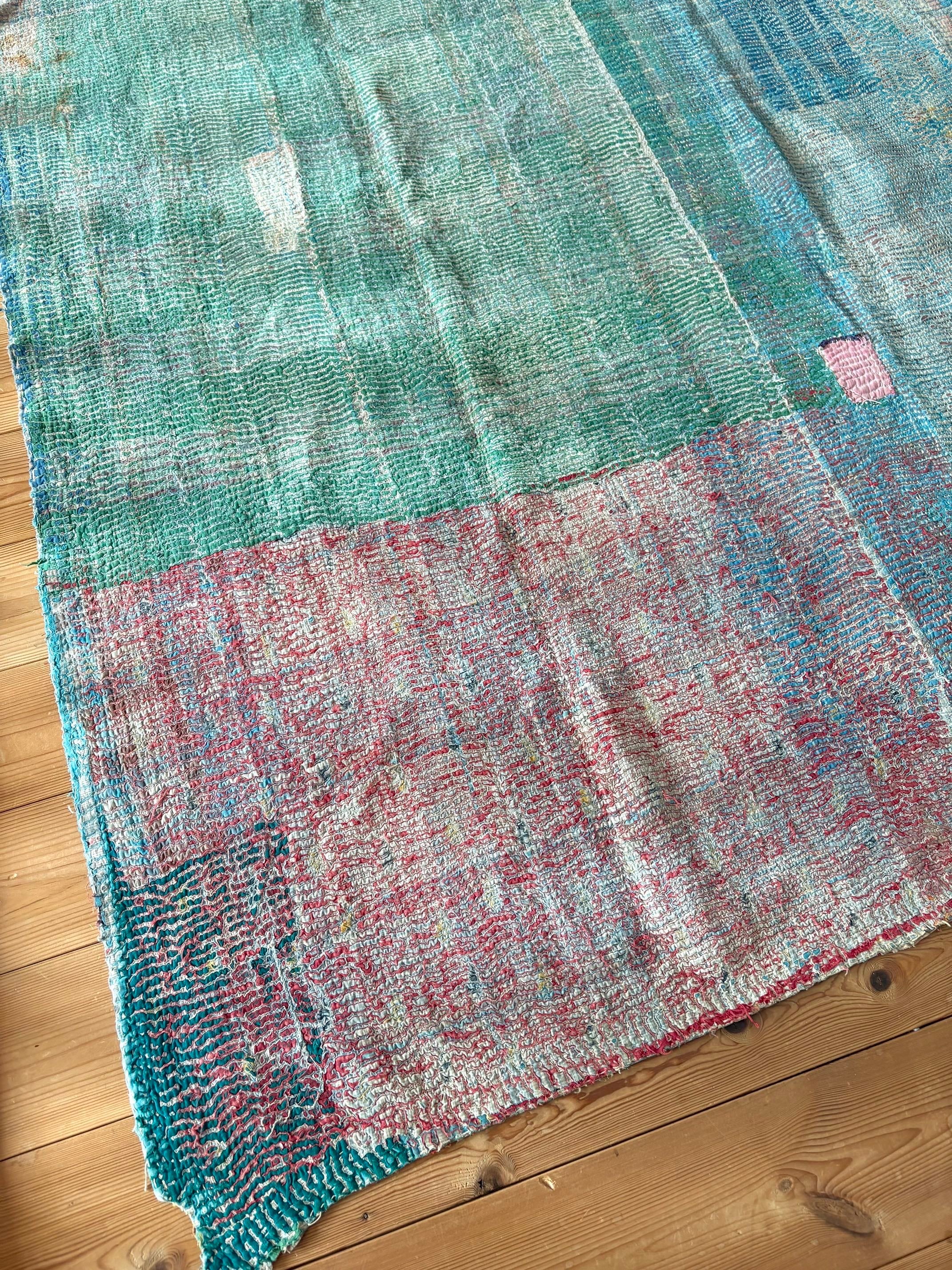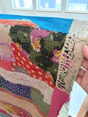 CAAPA店主がインドの信頼できるセラーさんにお願いして無数のカンタキルトの中から、布の表情や色合わせ、刺繍のリズムを見比べながら