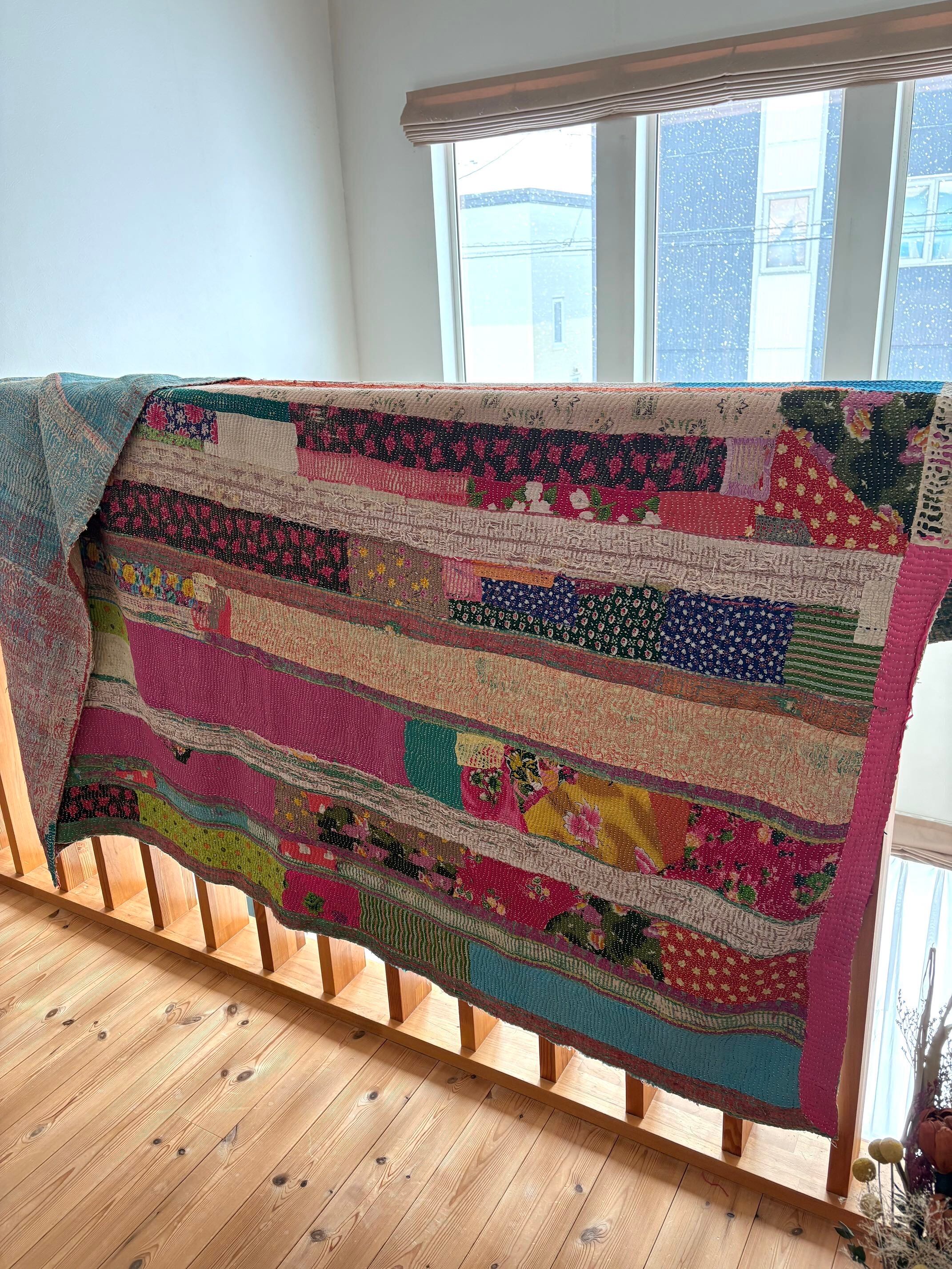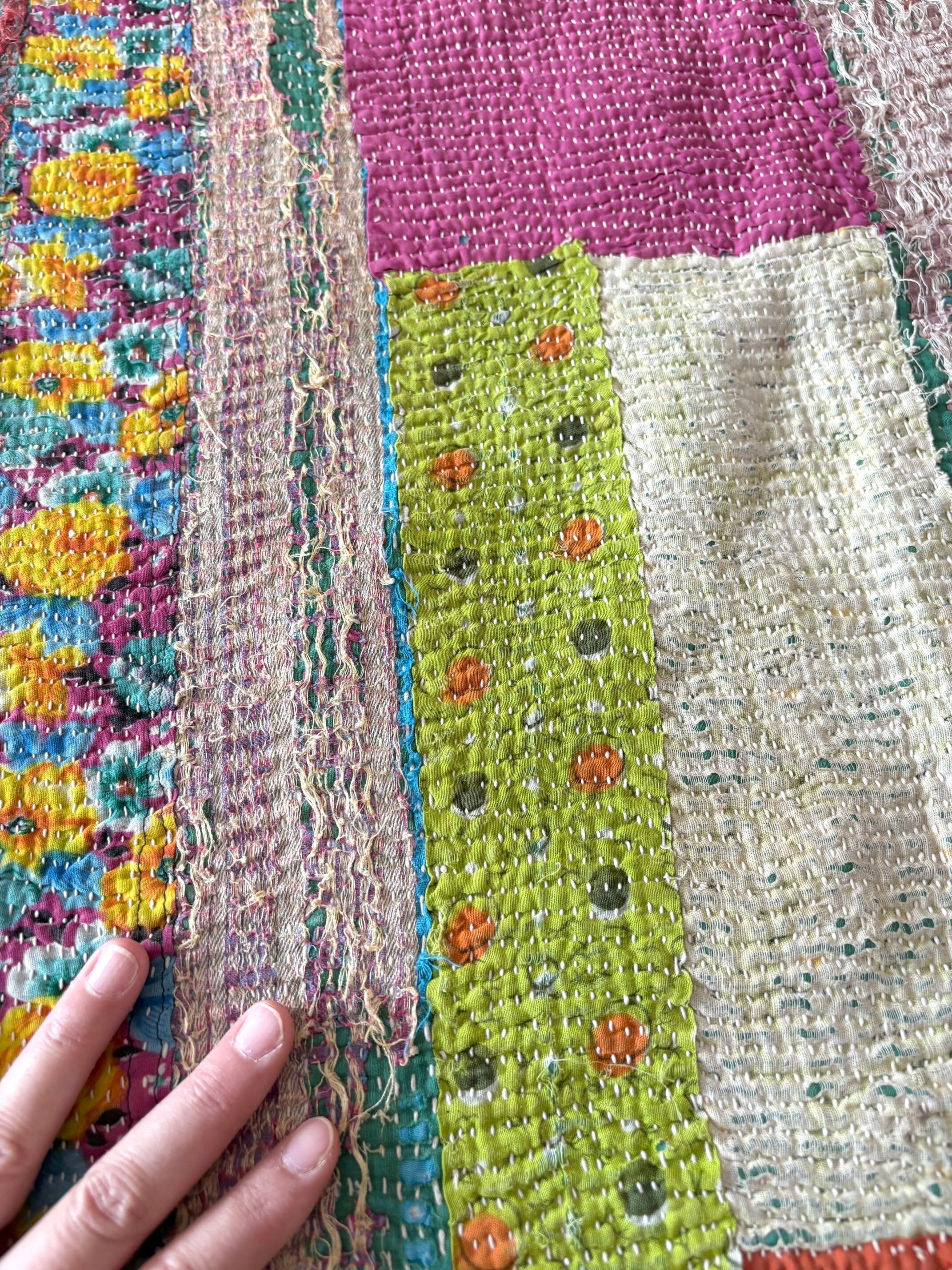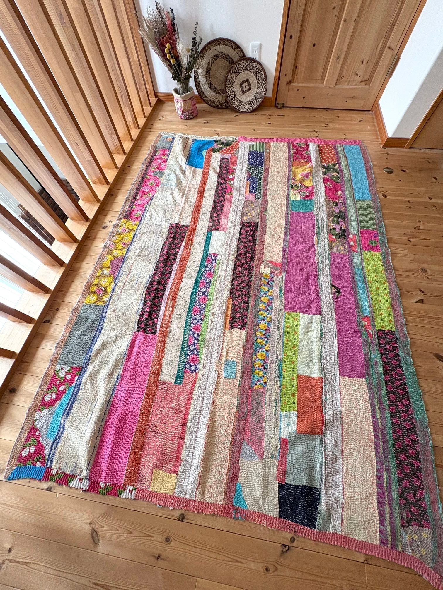 【ヴィンテージパッチワークカンタ刺繍キルト♡】