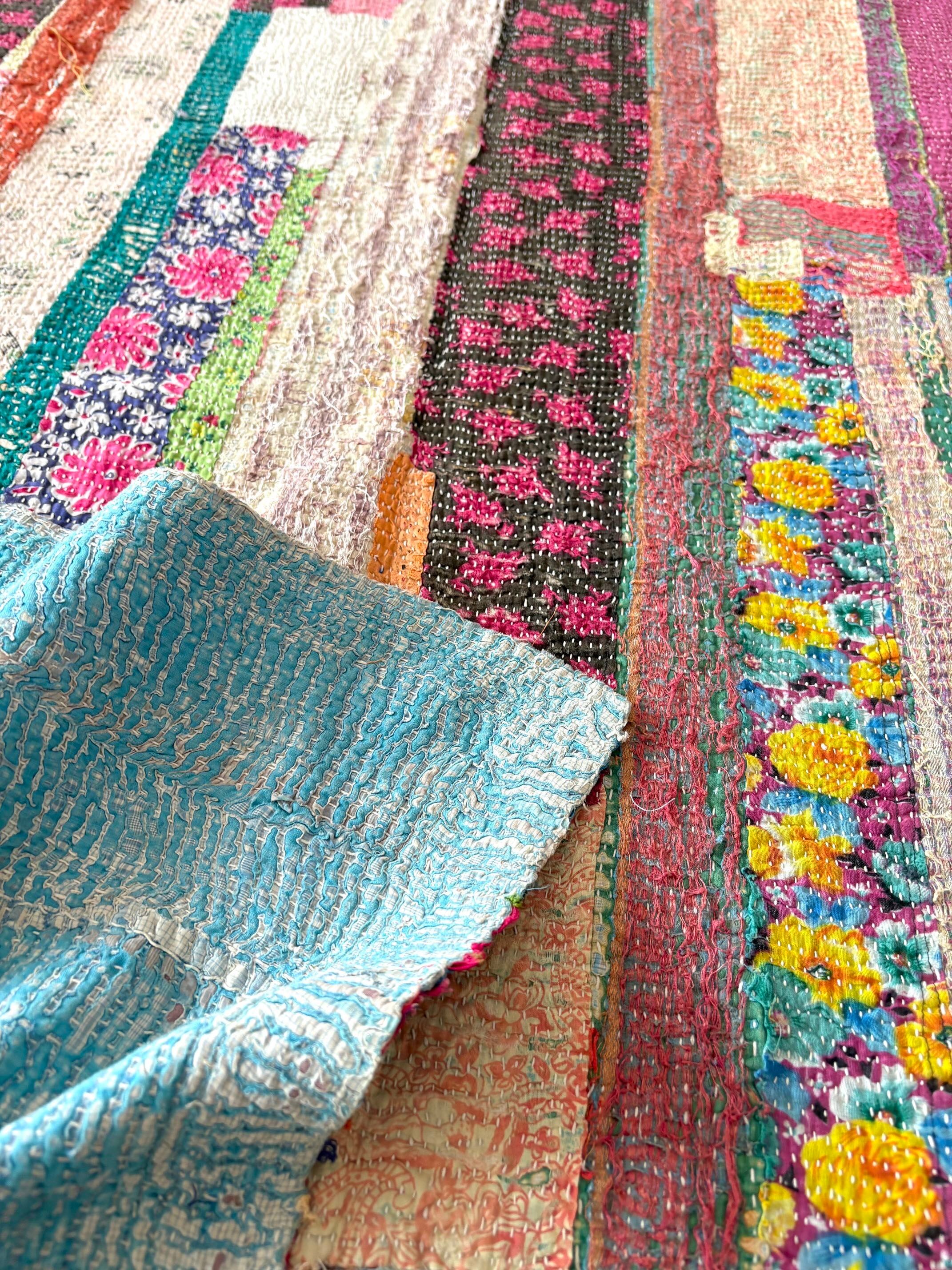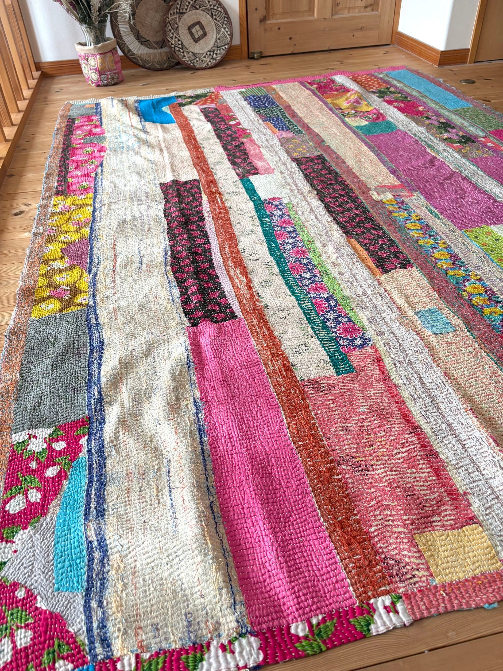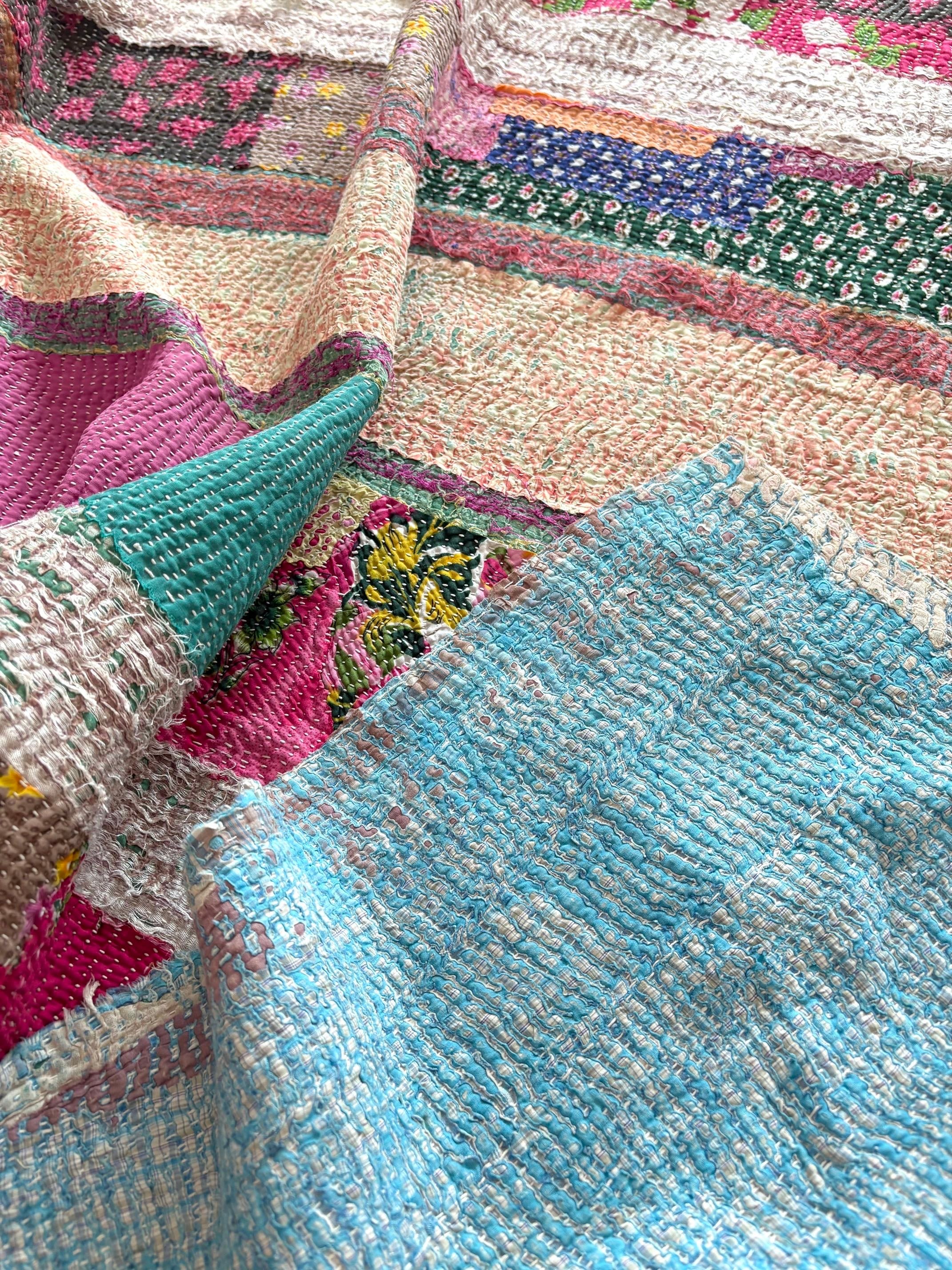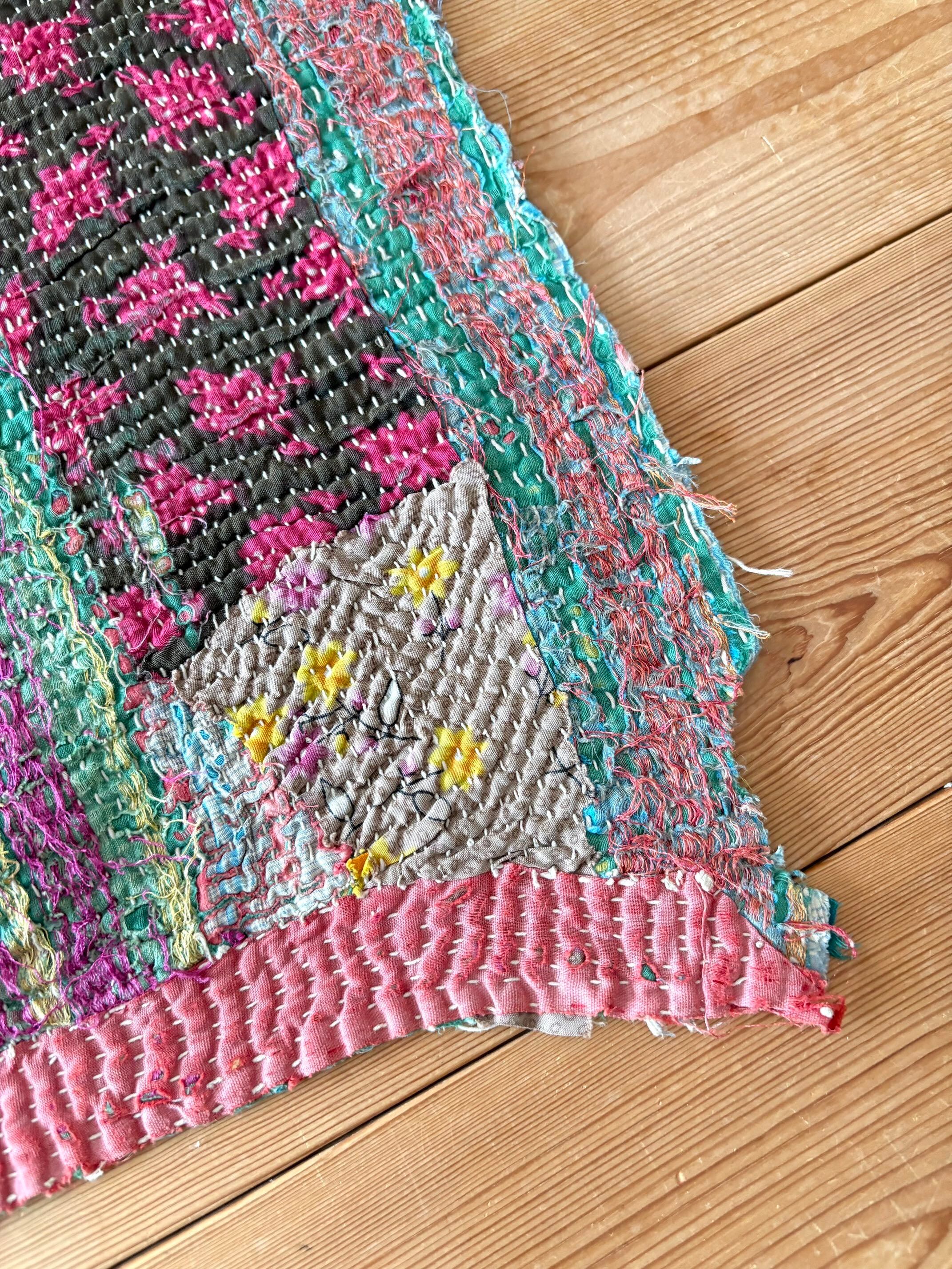 【ヴィンテージパッチワークカンタ刺繍キルト♡】