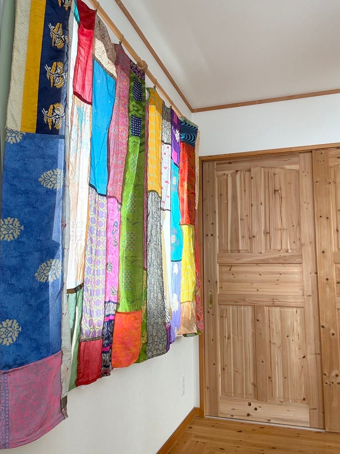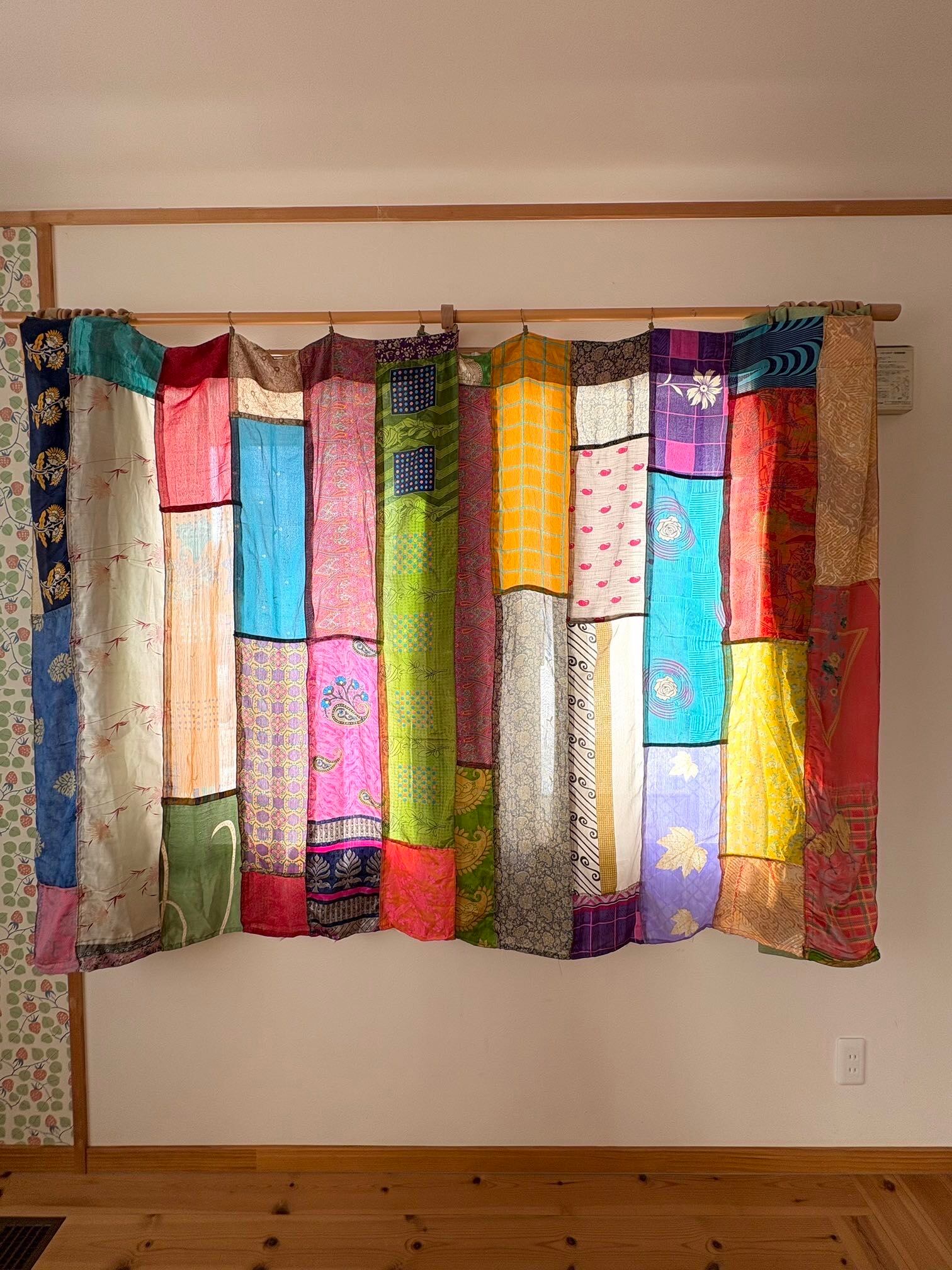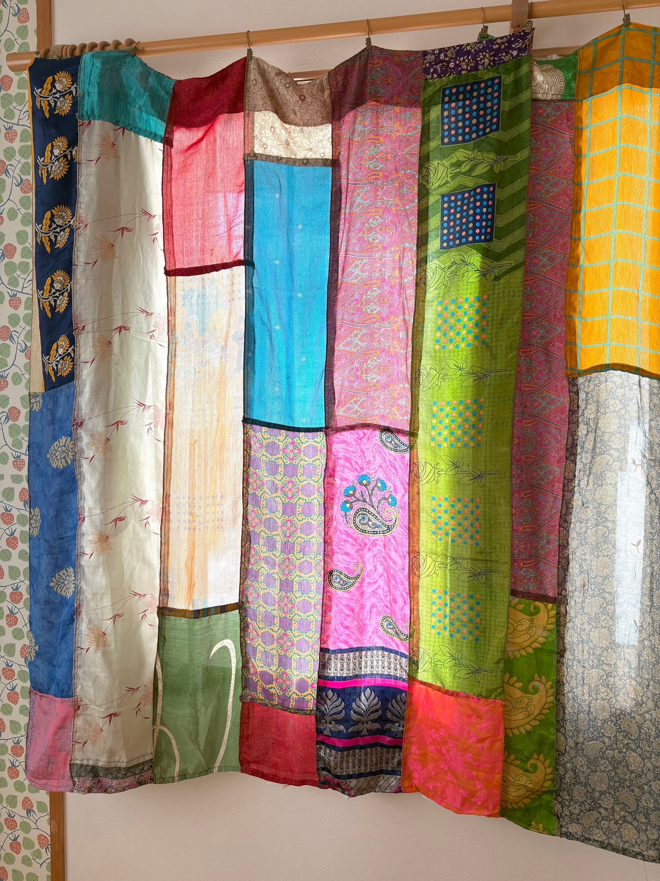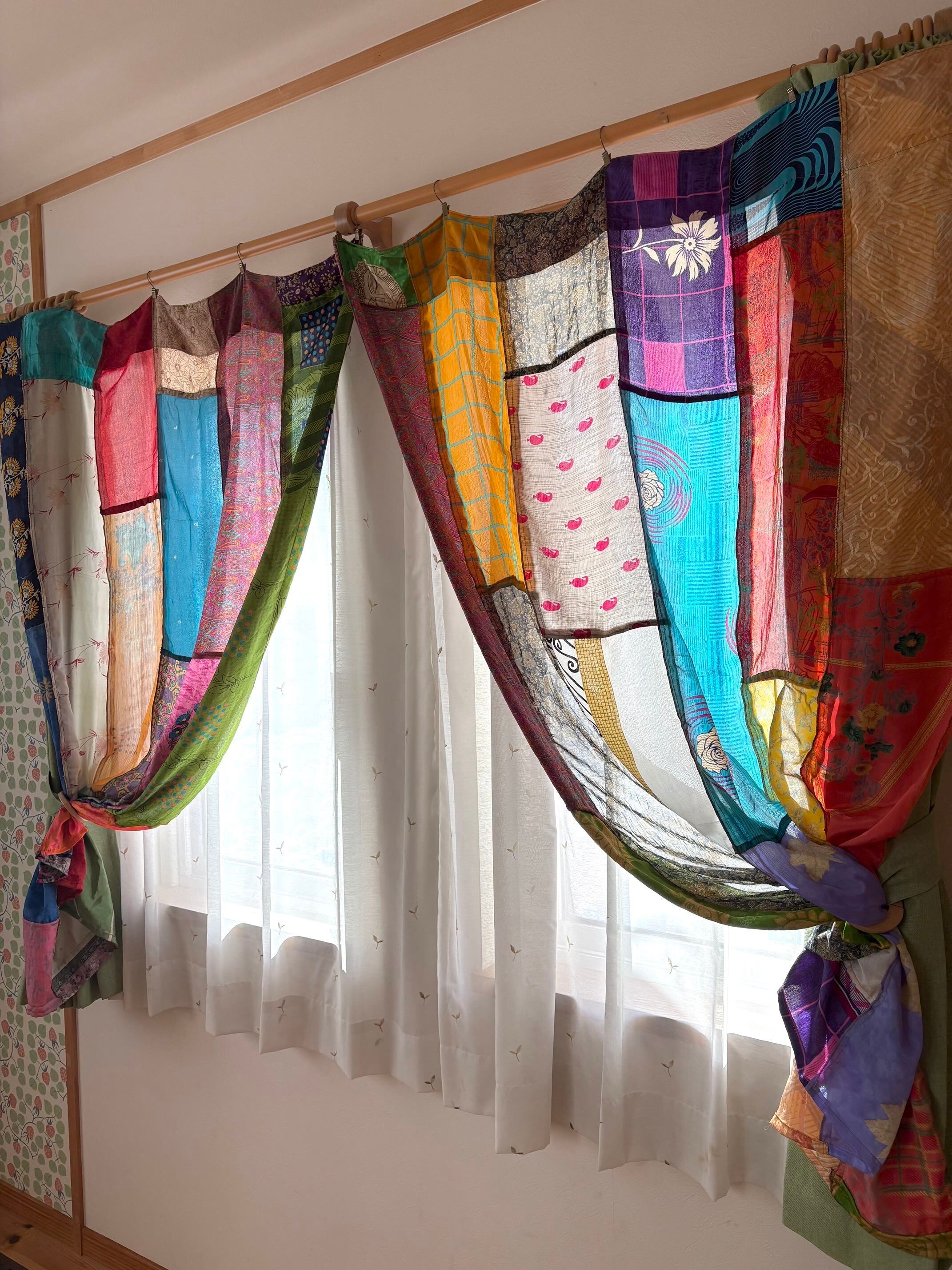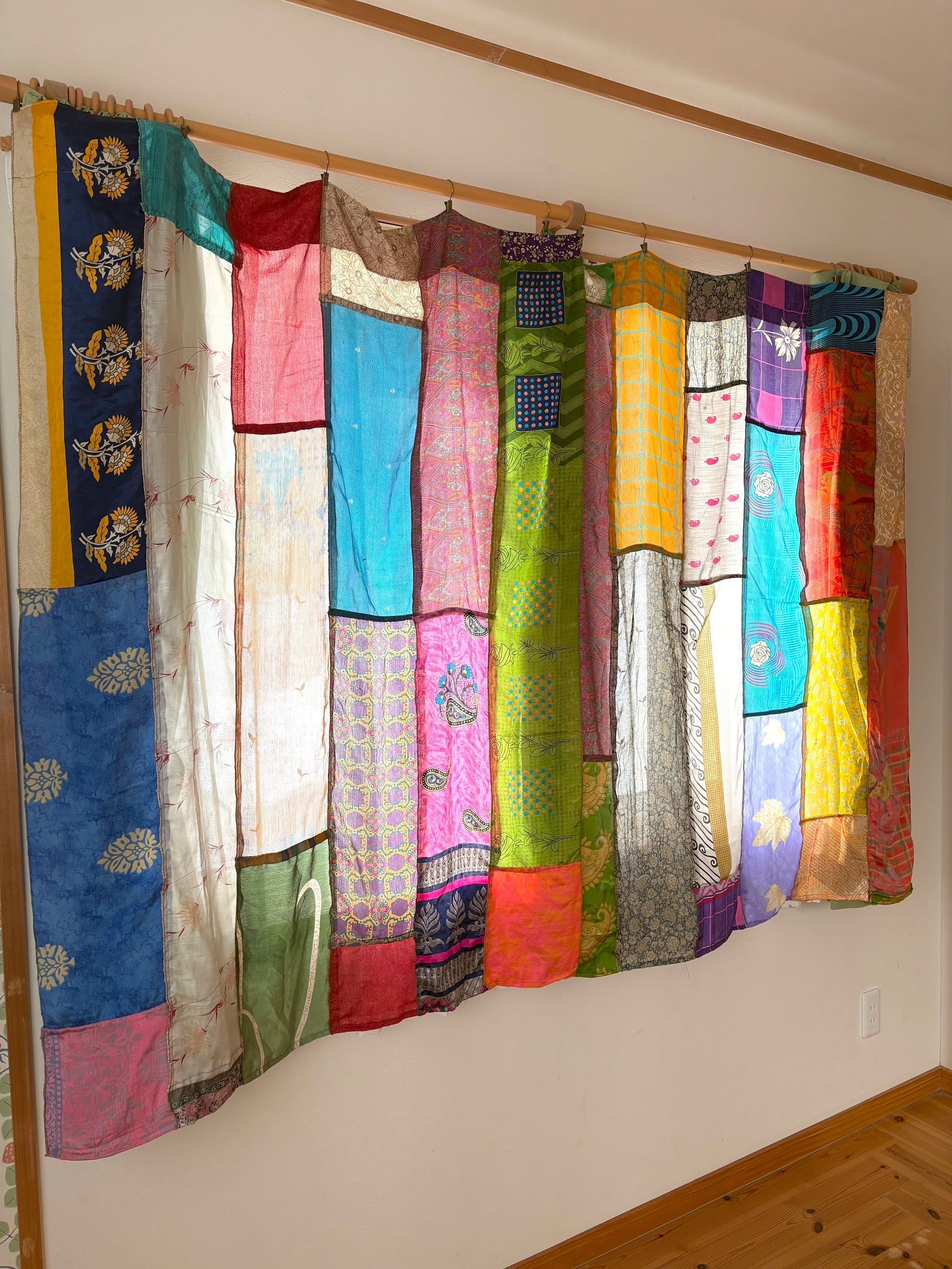 ヴィンテージサリーで出来たパッチワークシルクカーテン