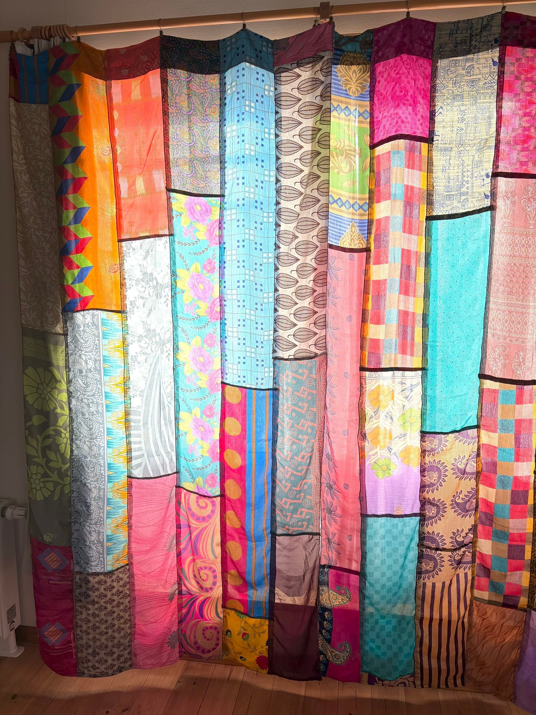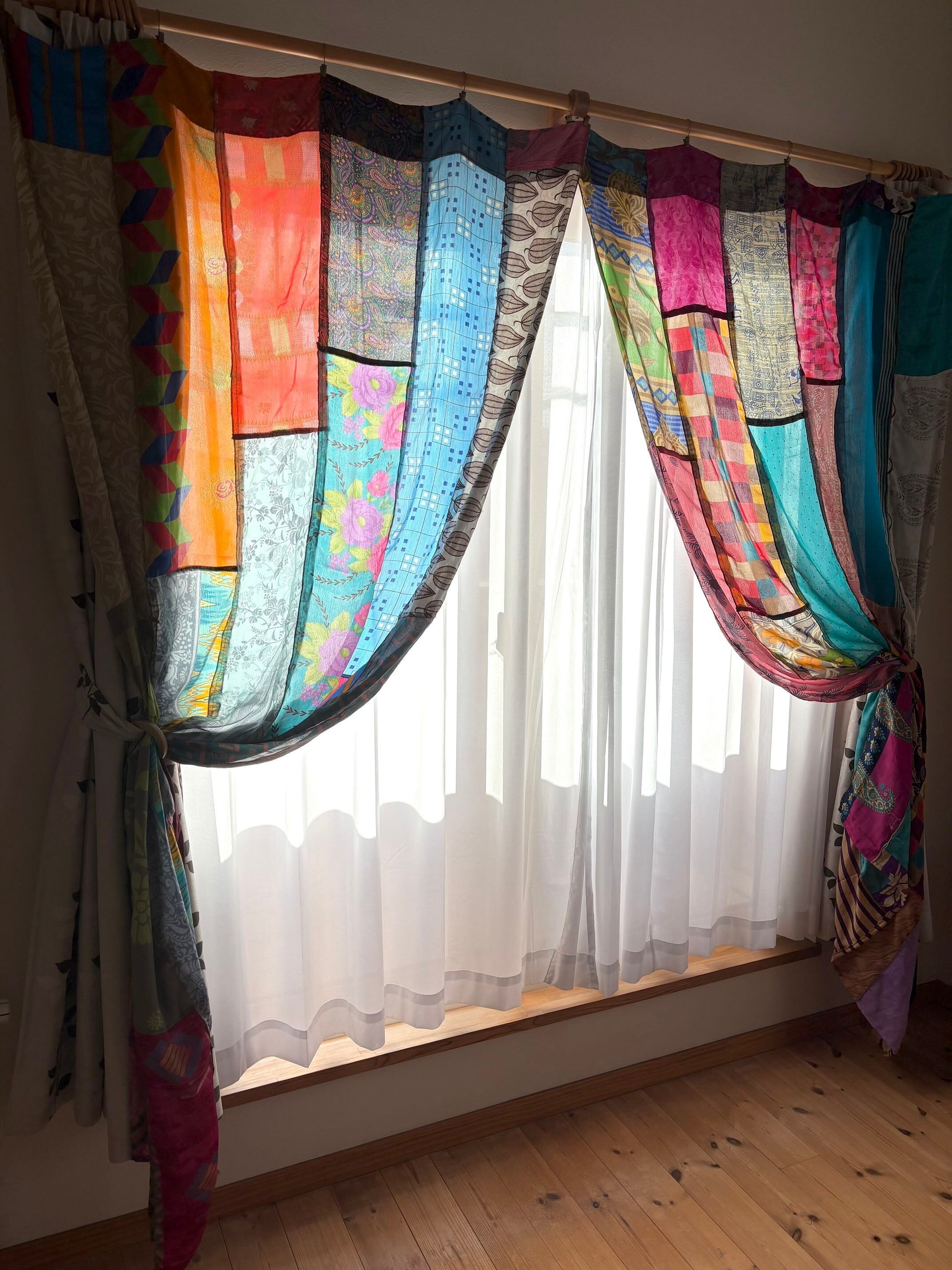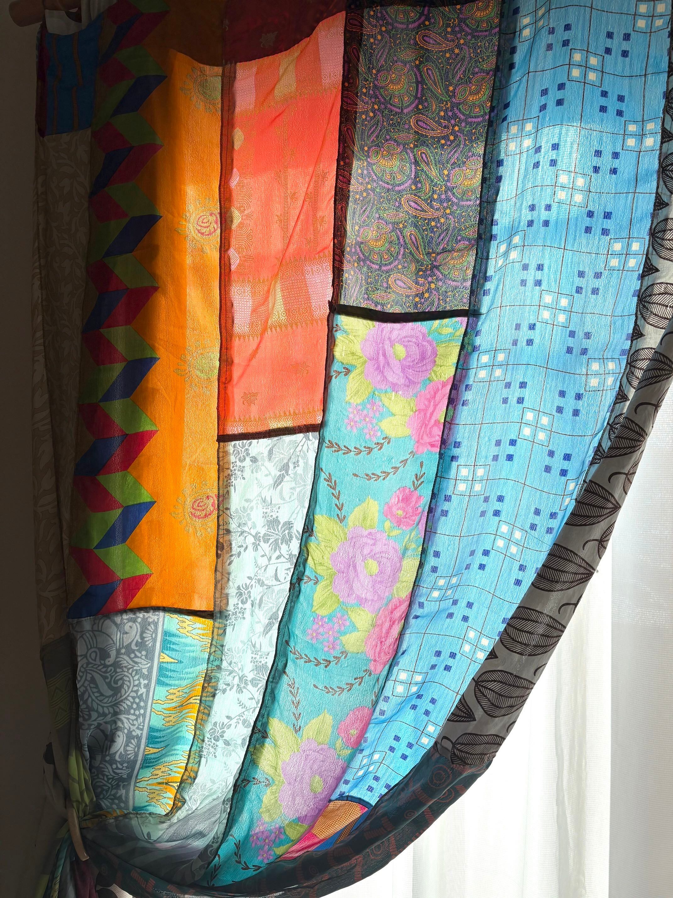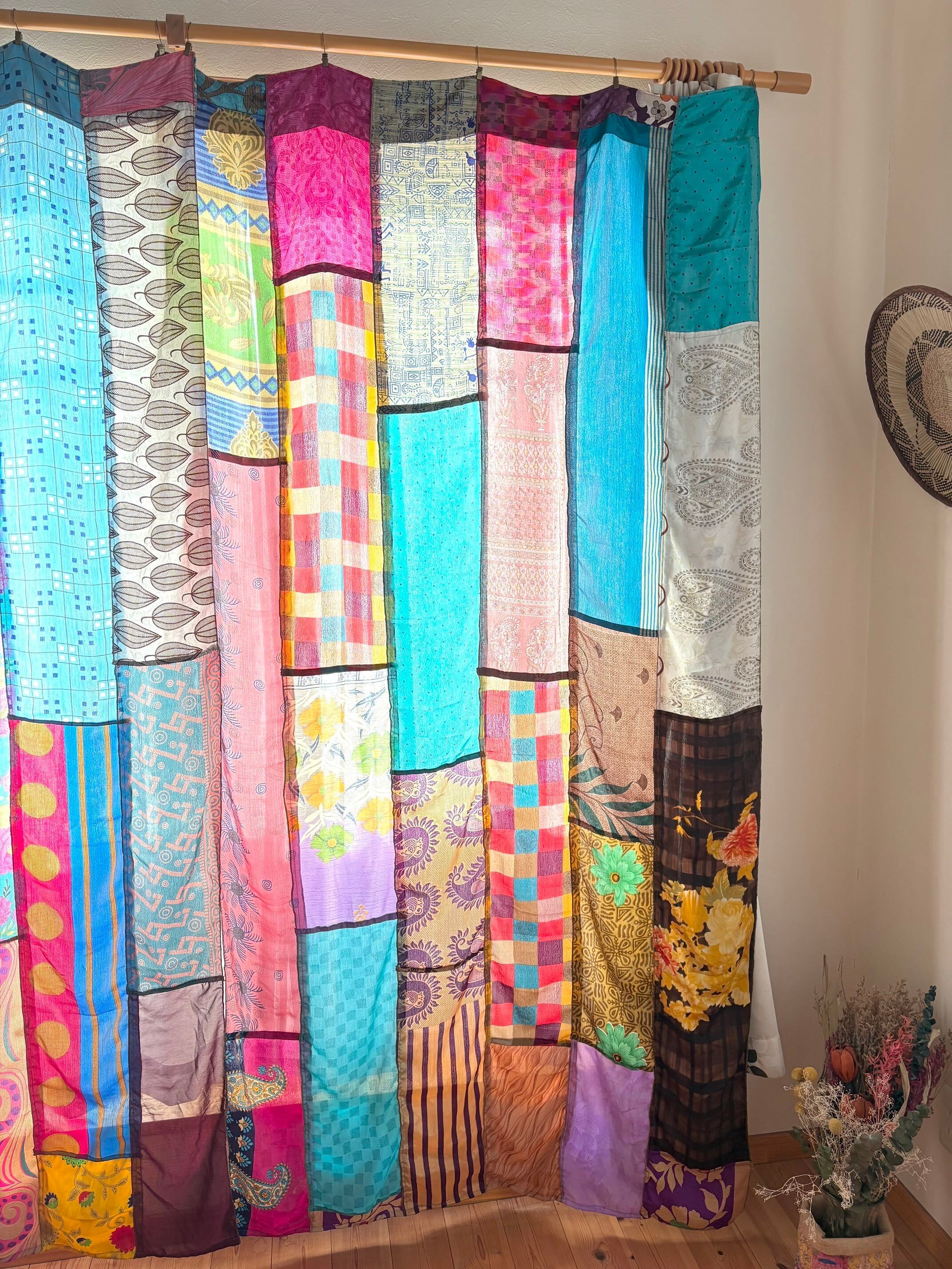 ヴィンテージサリーで出来たパッチワークシルクカーテン