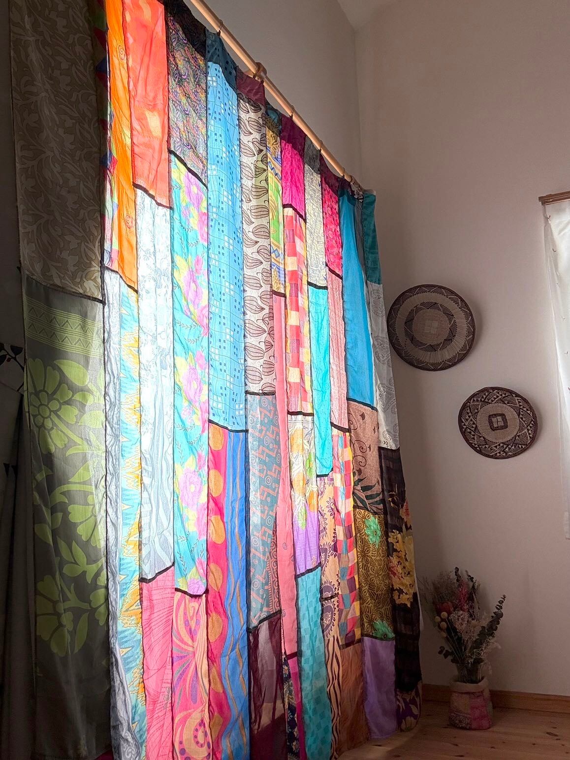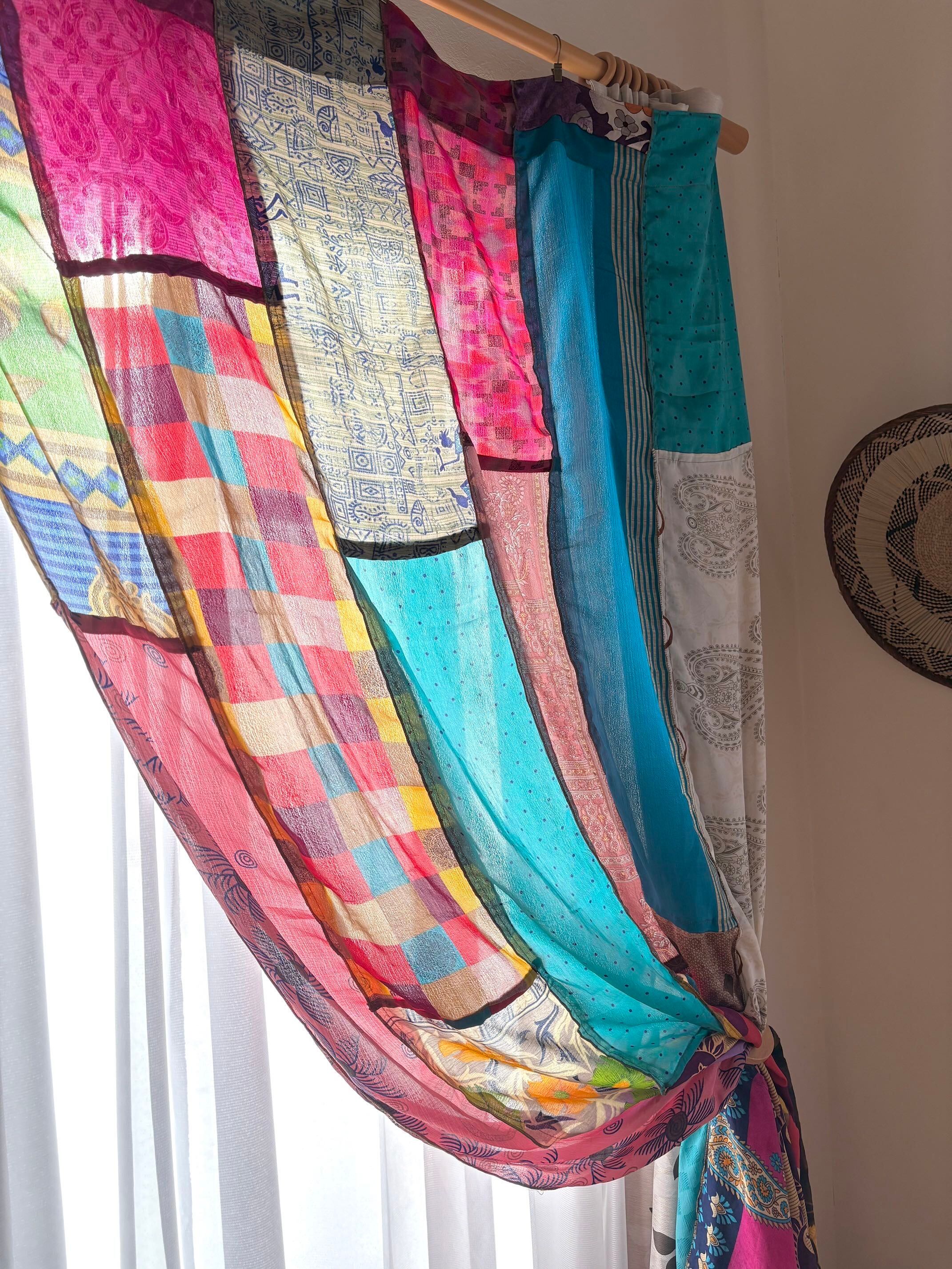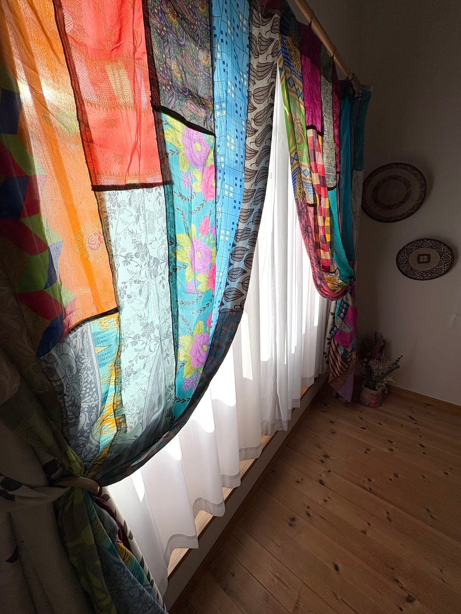 ヴィンテージサリーで出来たパッチワークシルクカーテン