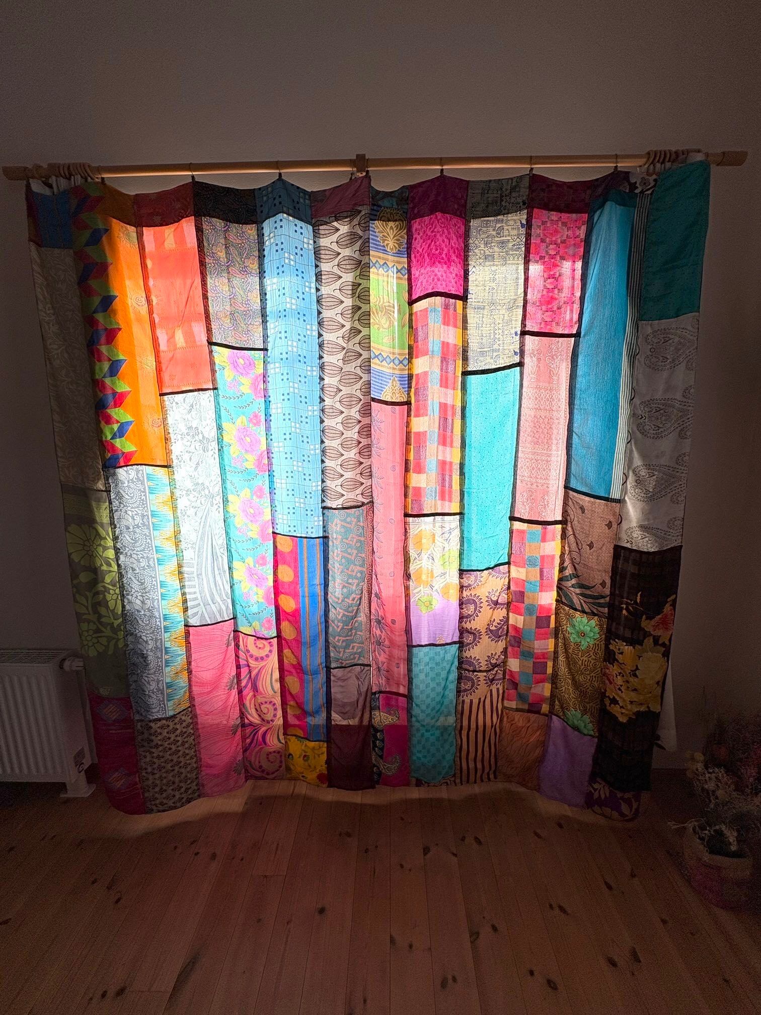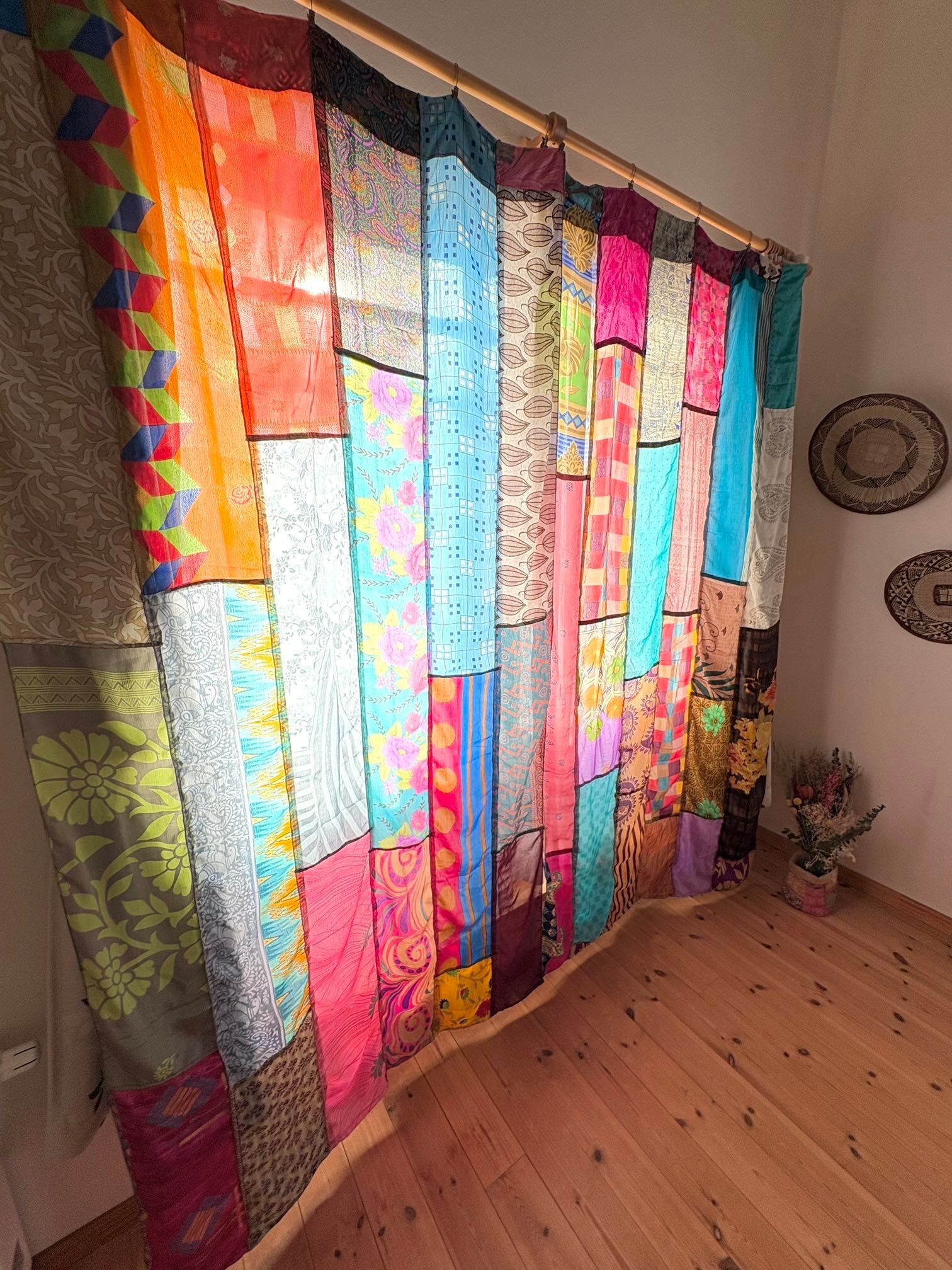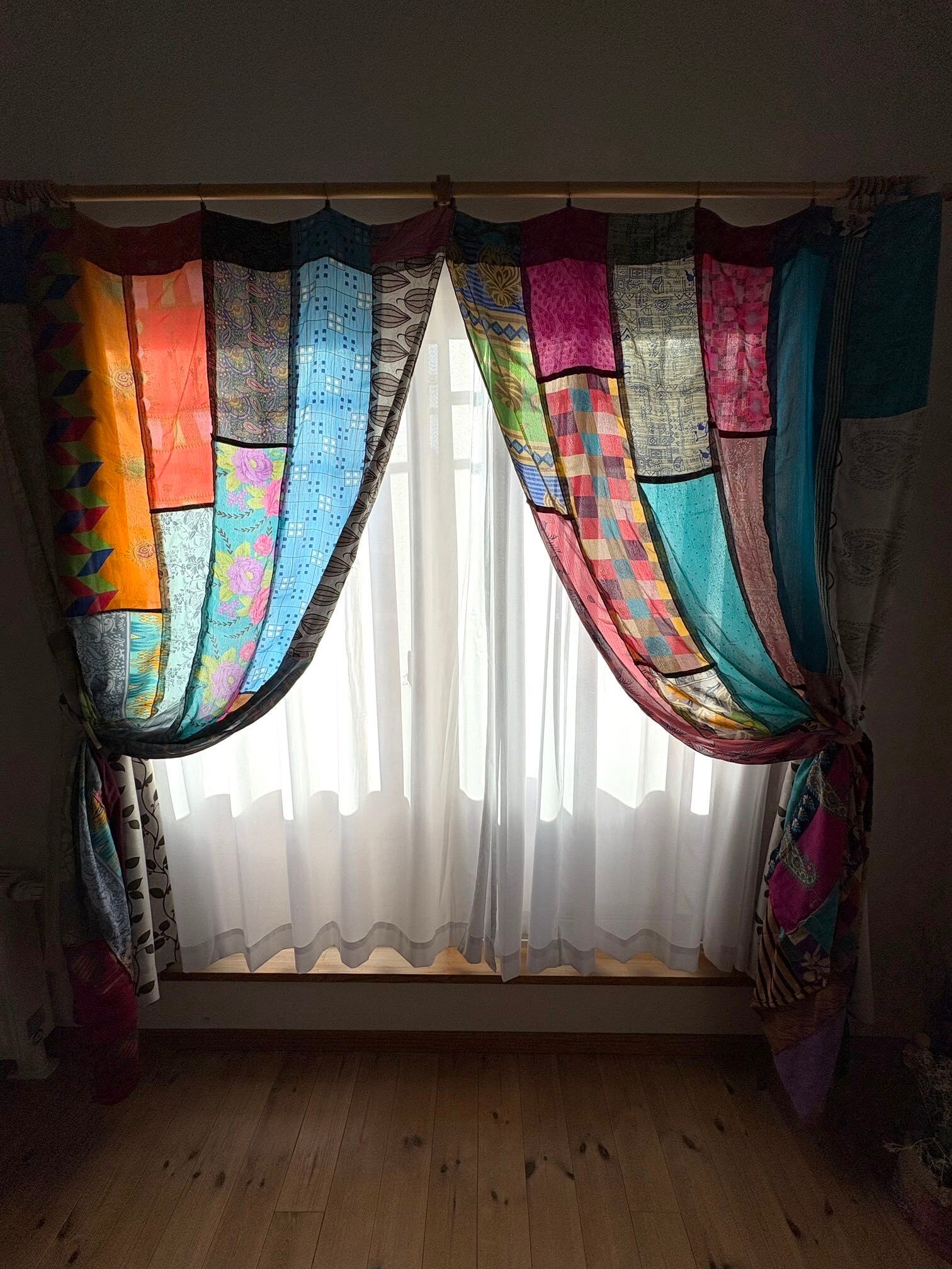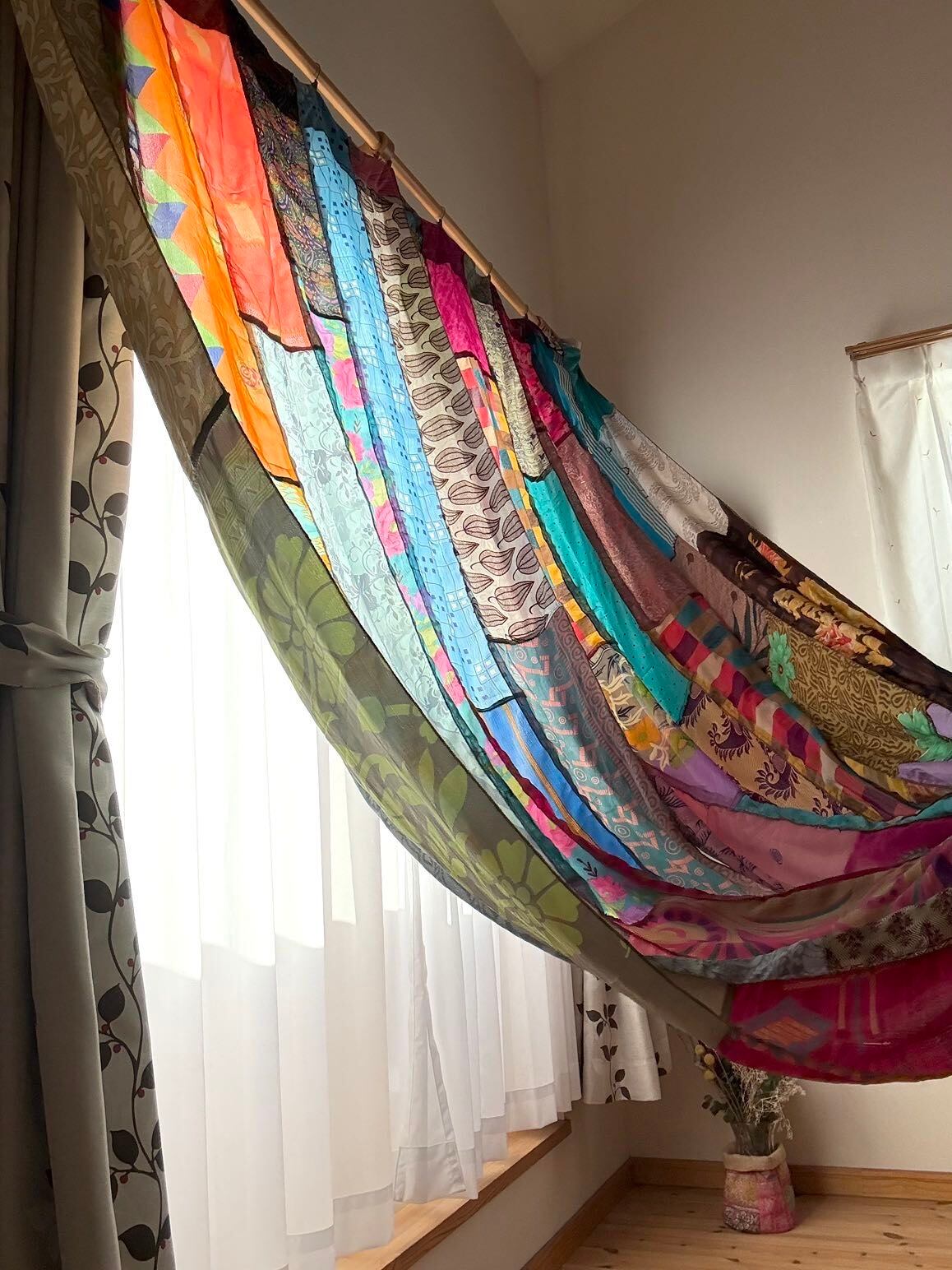 ヴィンテージサリーで出来たパッチワークシルクカーテン
