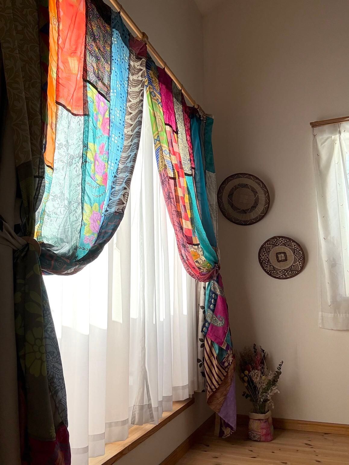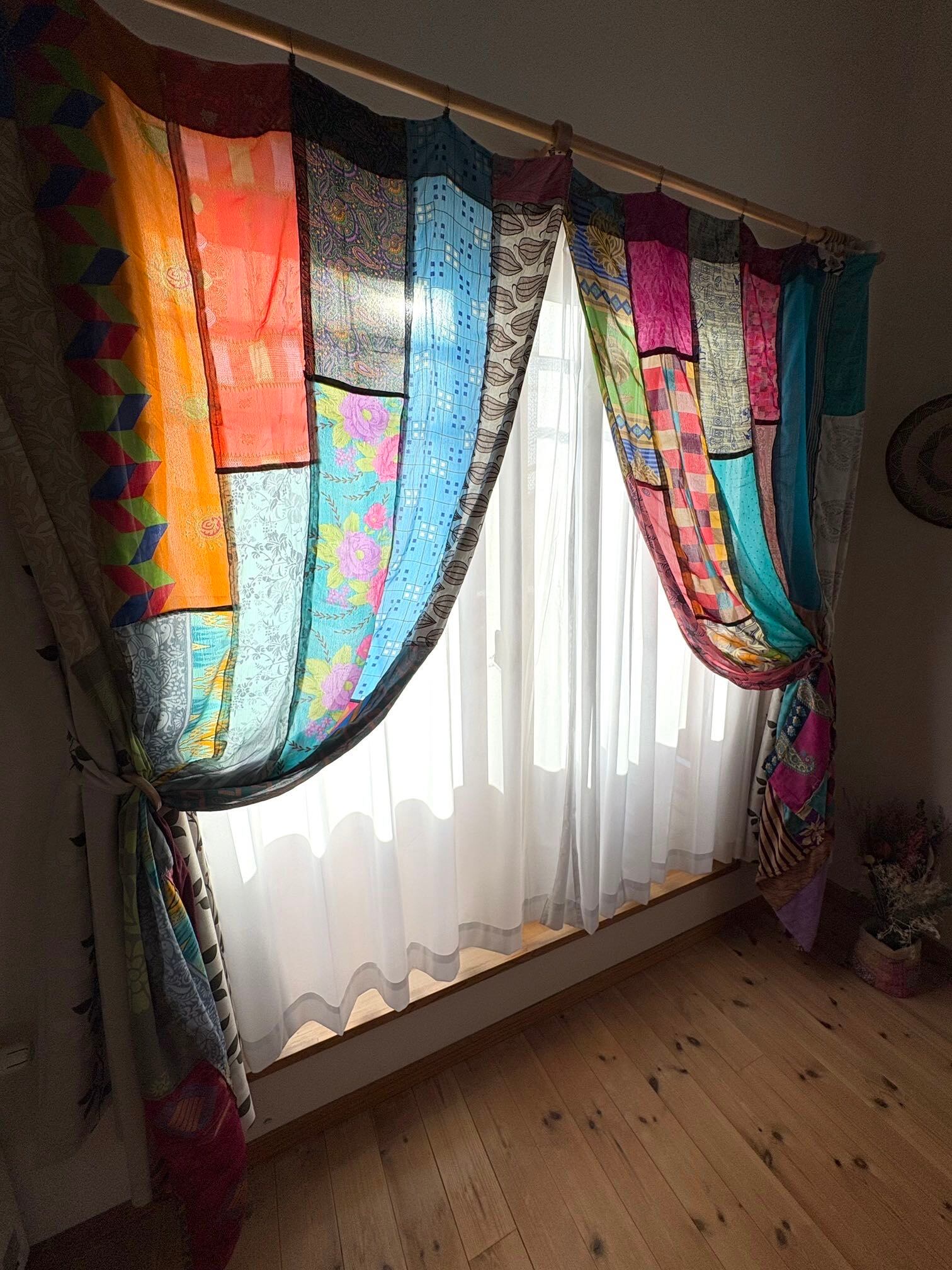 ※カーテンとしては新品未使用ですが、布はヴィンテージサリーを使っております。