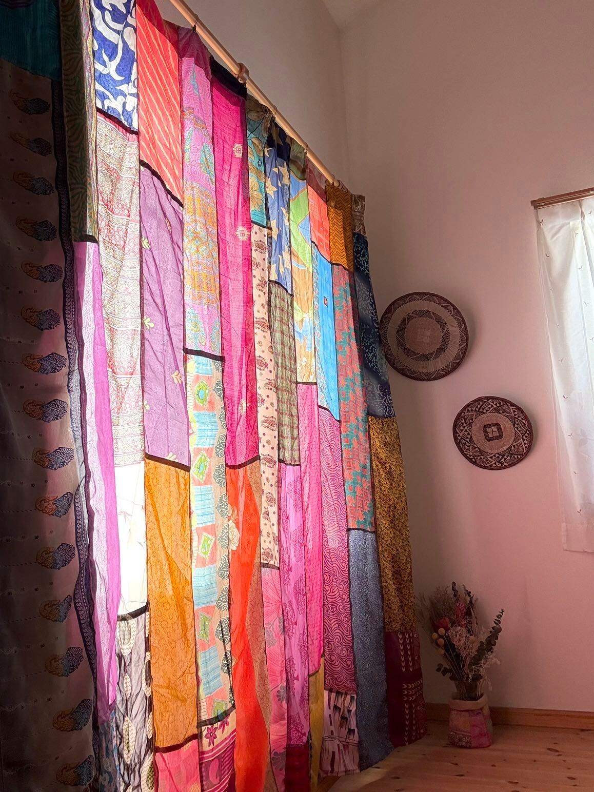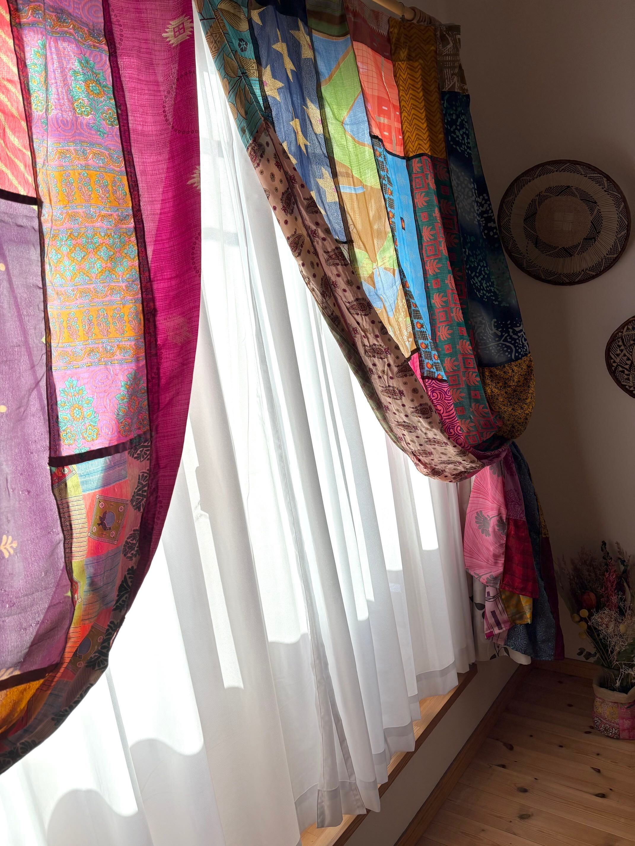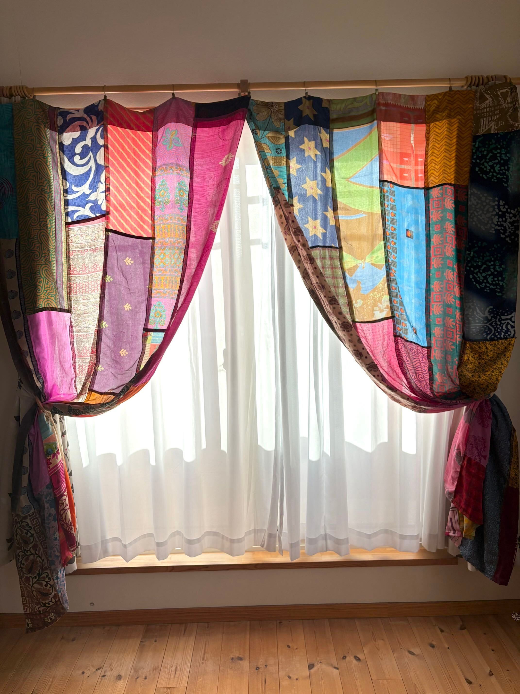 ヴィンテージサリーで出来たパッチワークシルクカーテン