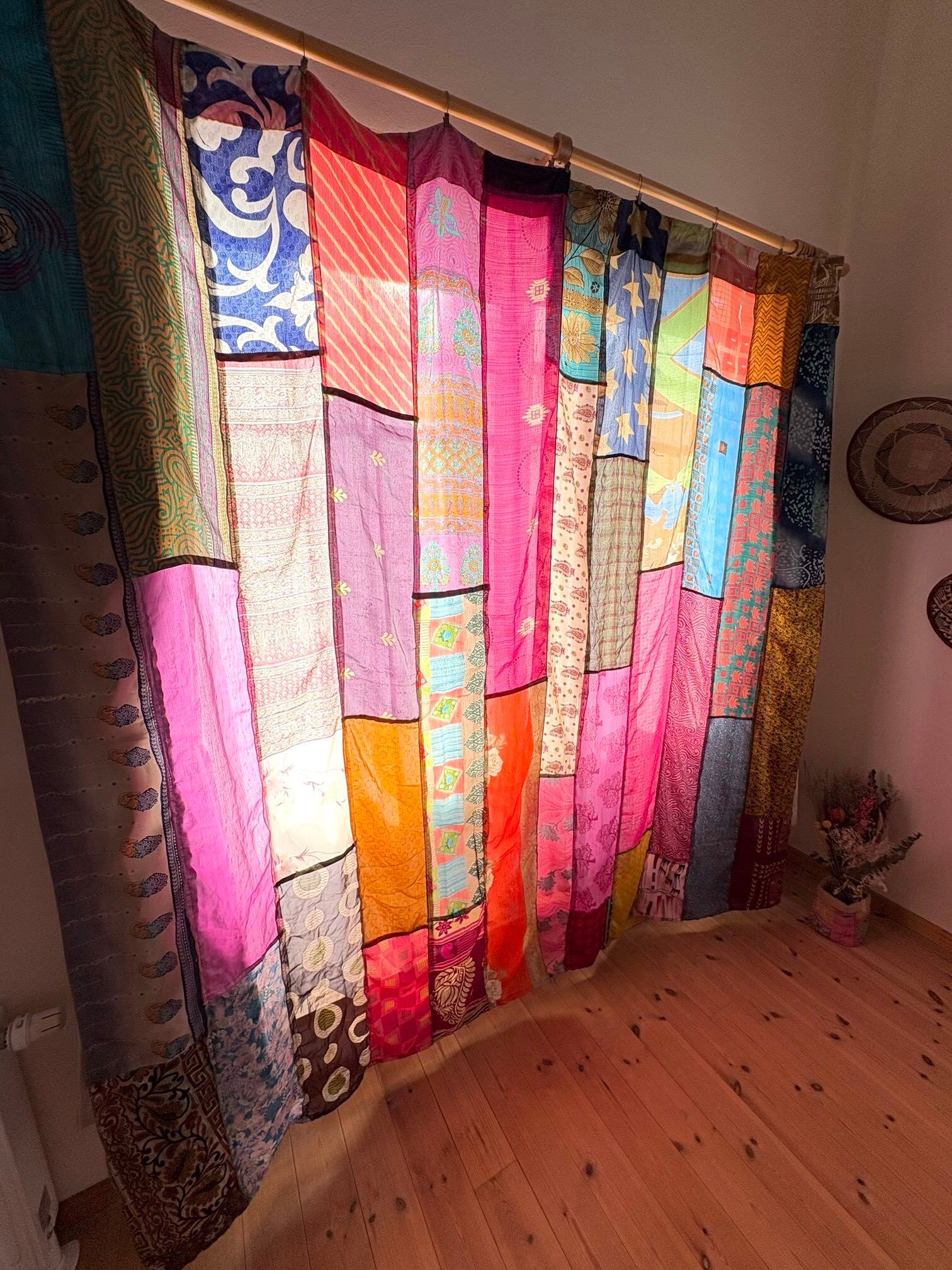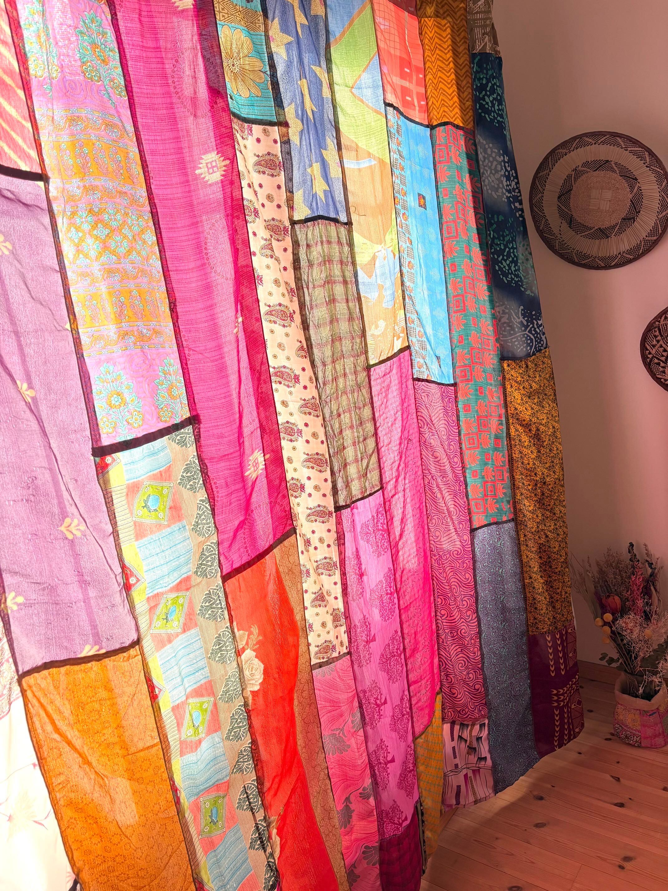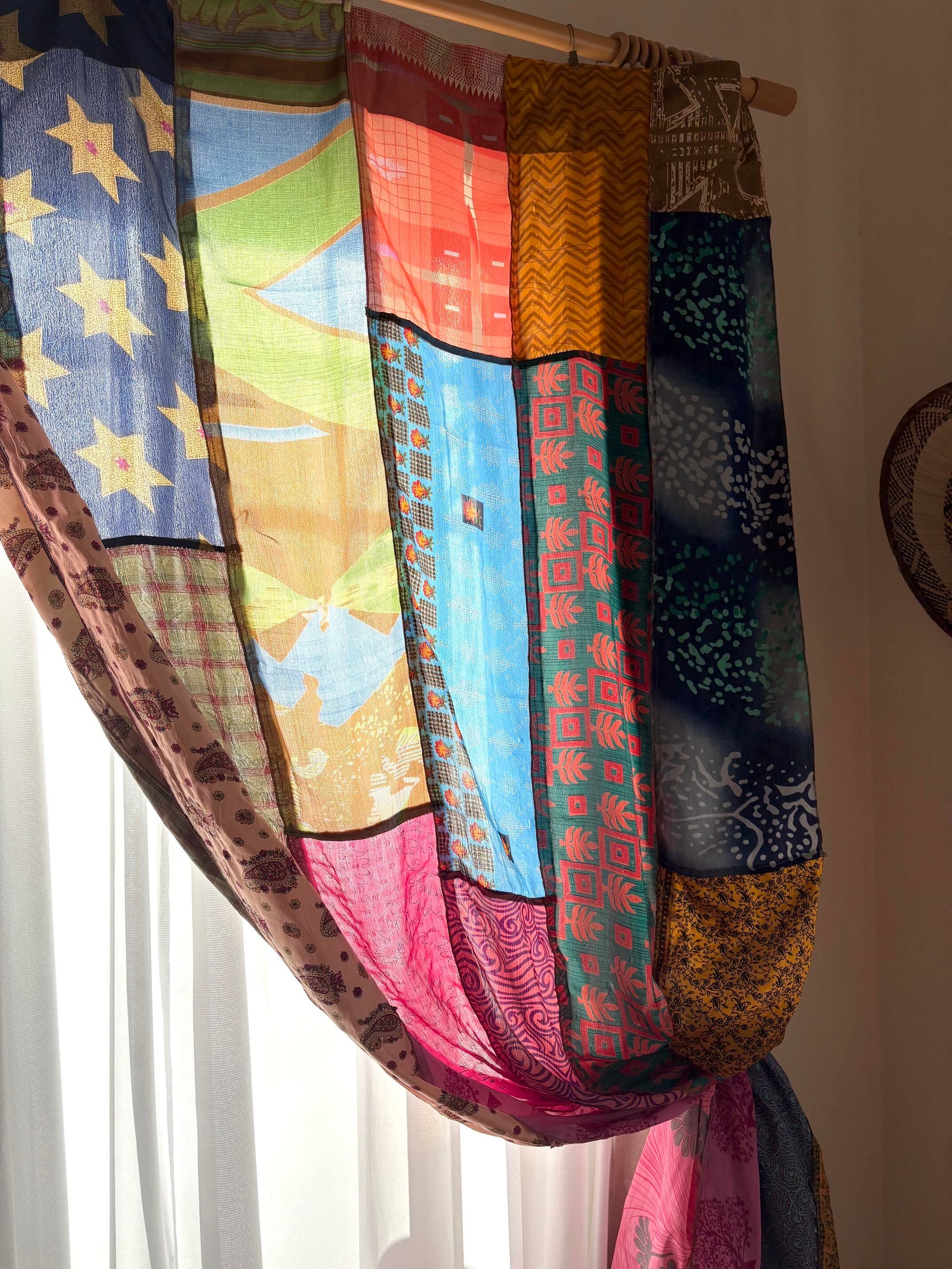 ヴィンテージサリーで出来たパッチワークシルクカーテン