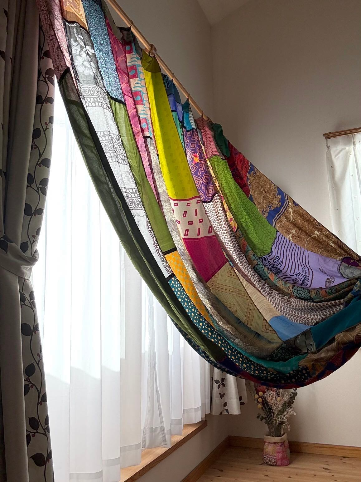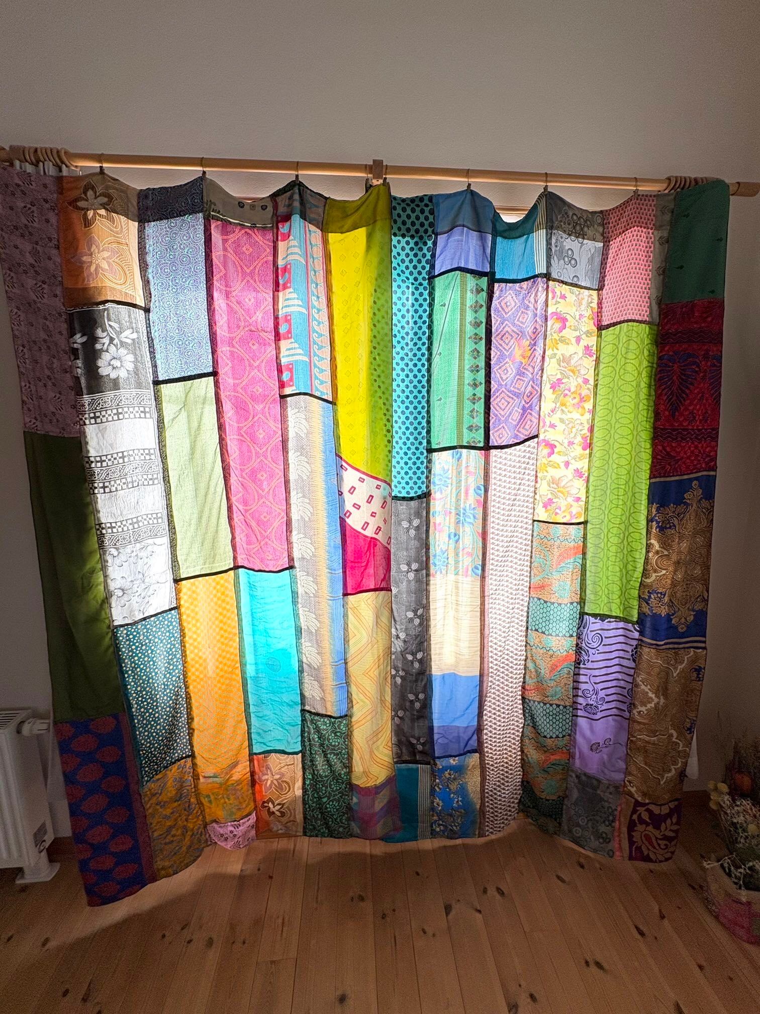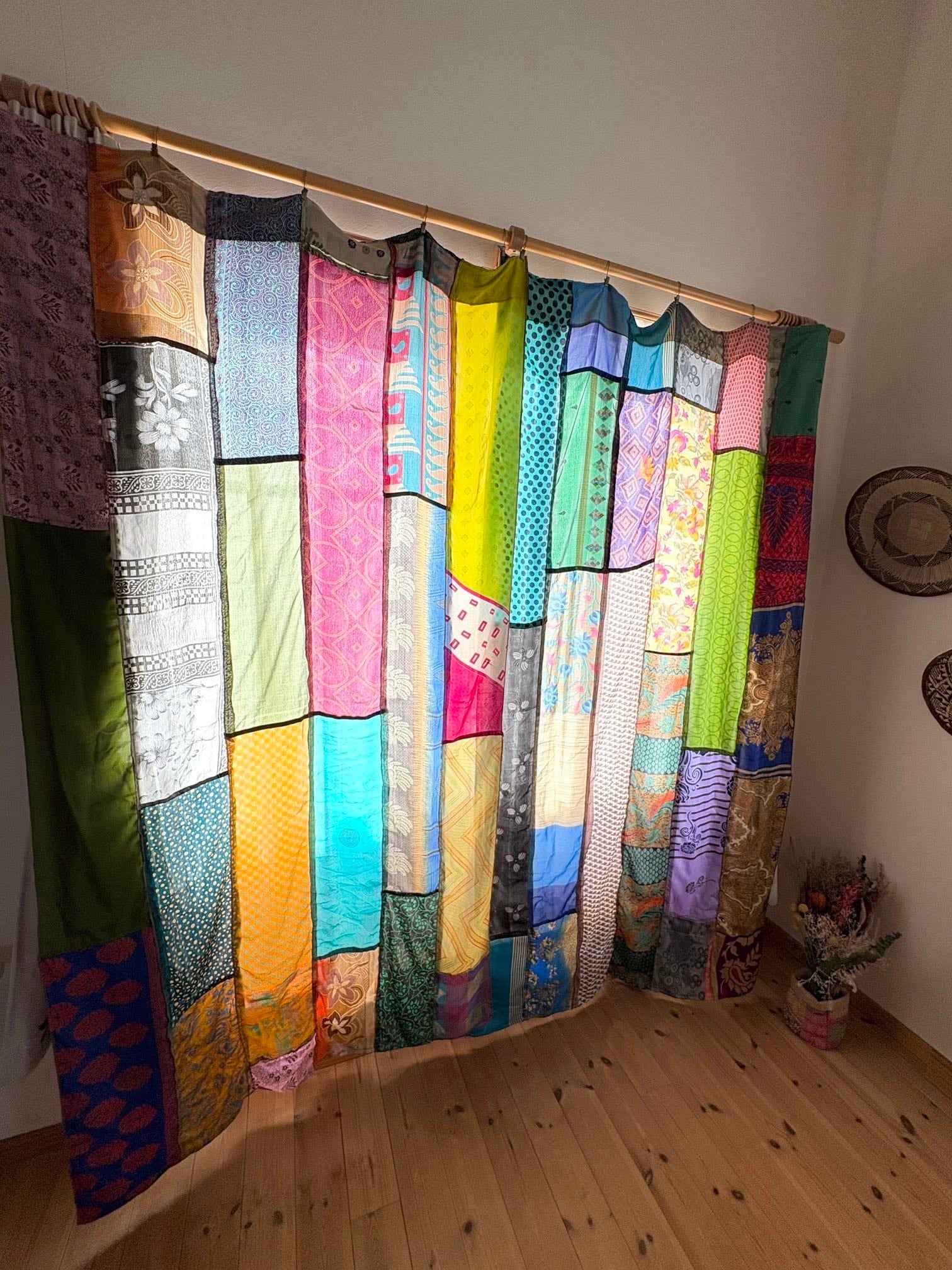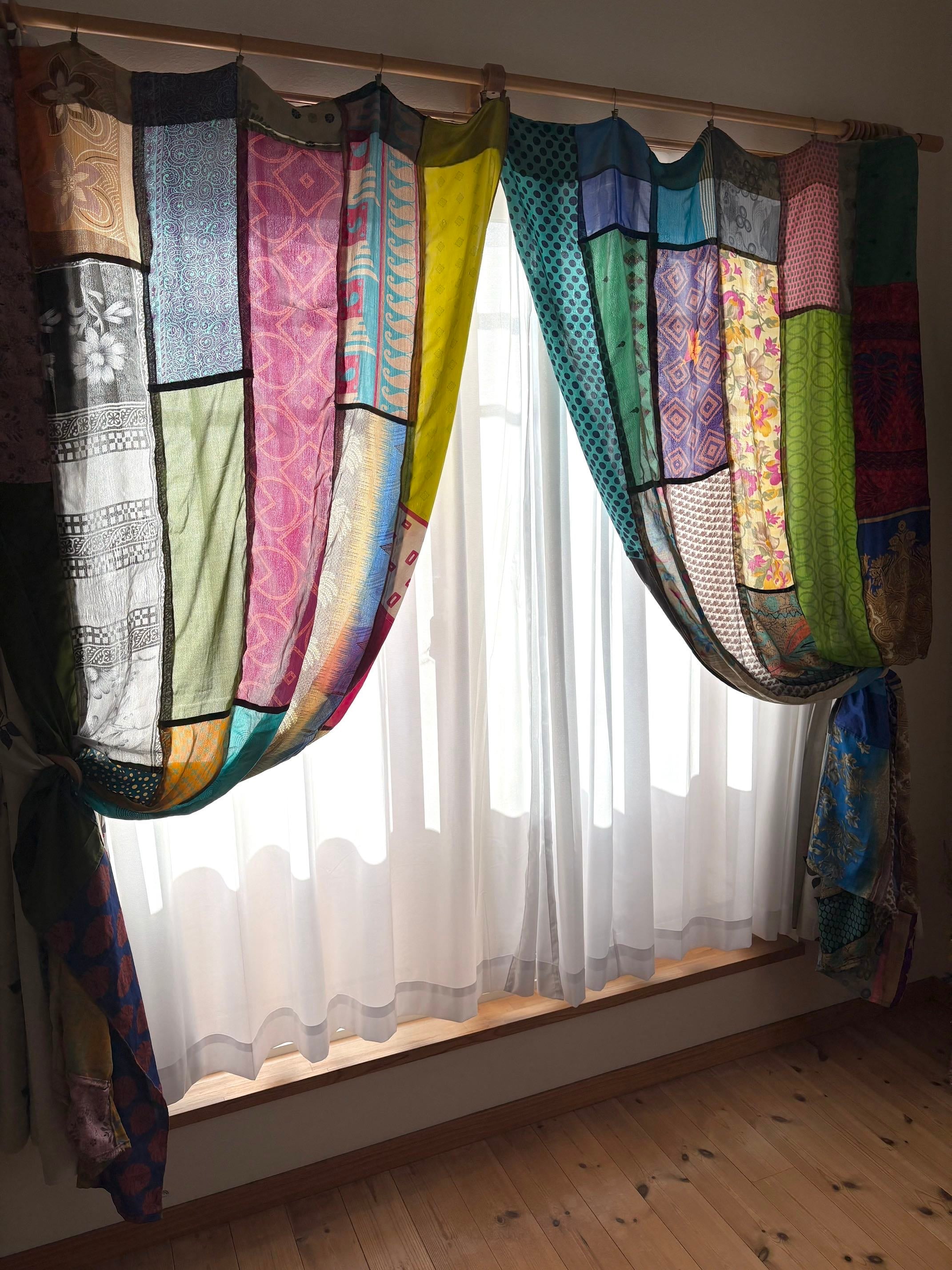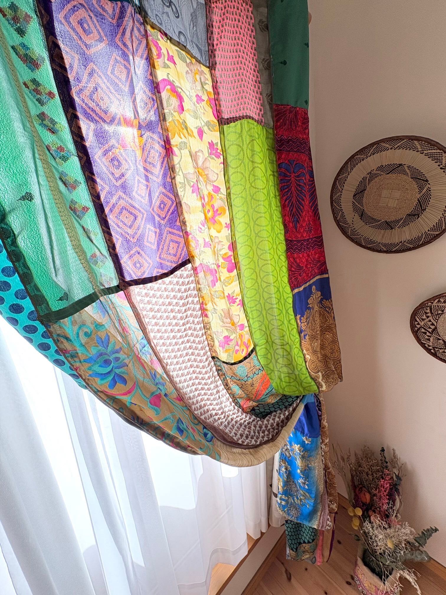 ヴィンテージサリーで出来たパッチワークシルクカーテン