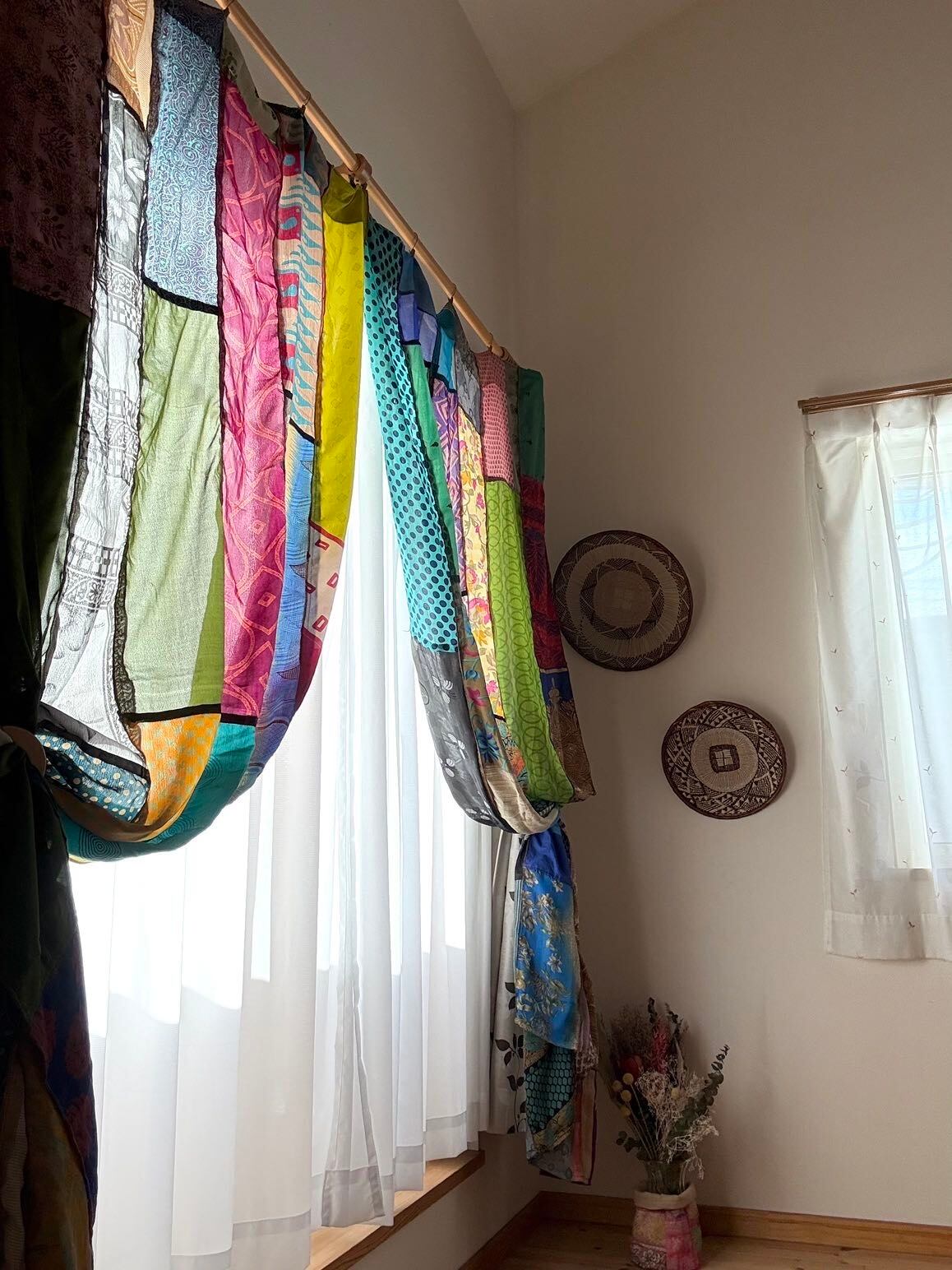 ※カーテンとしては新品未使用ですが、布はヴィンテージサリーを使っております。