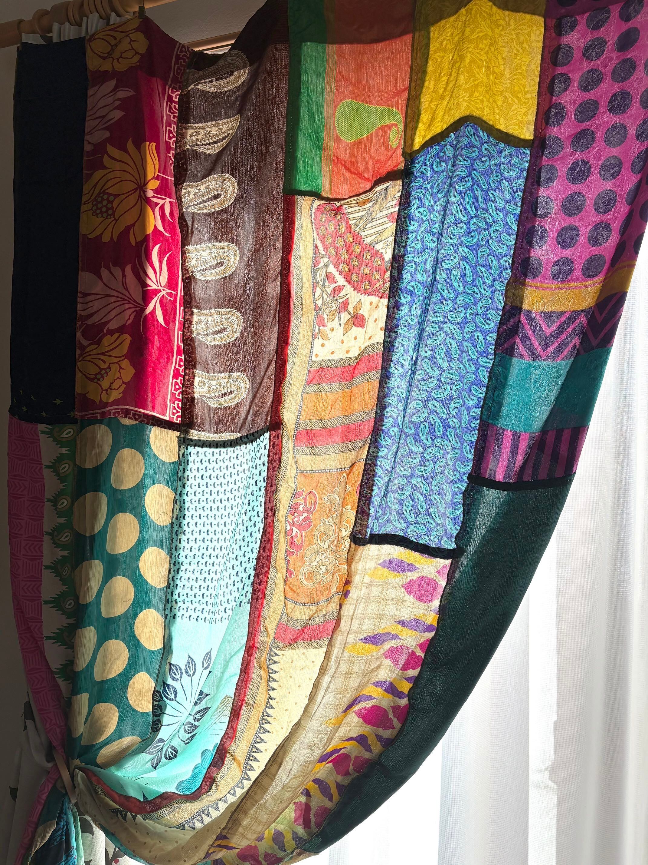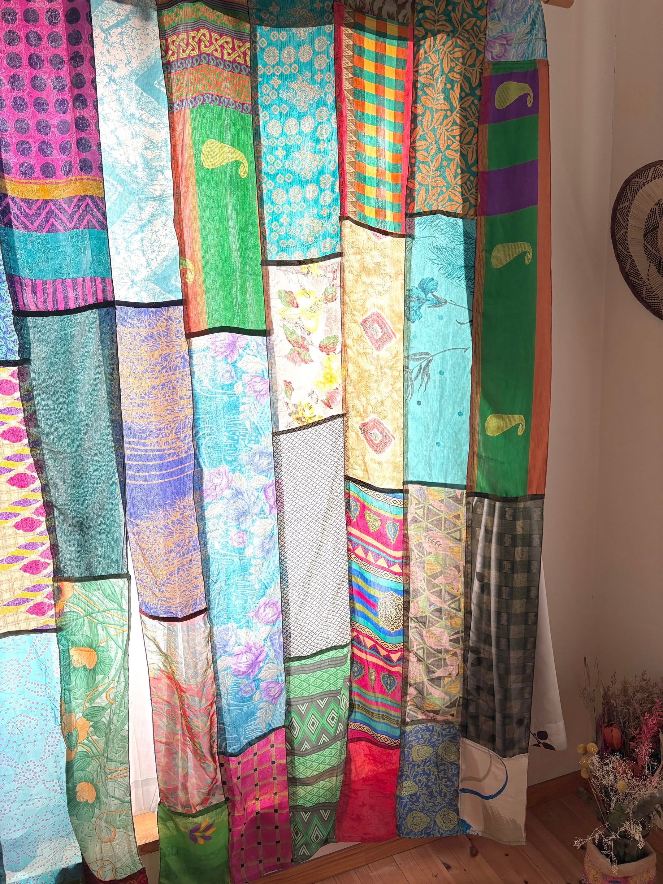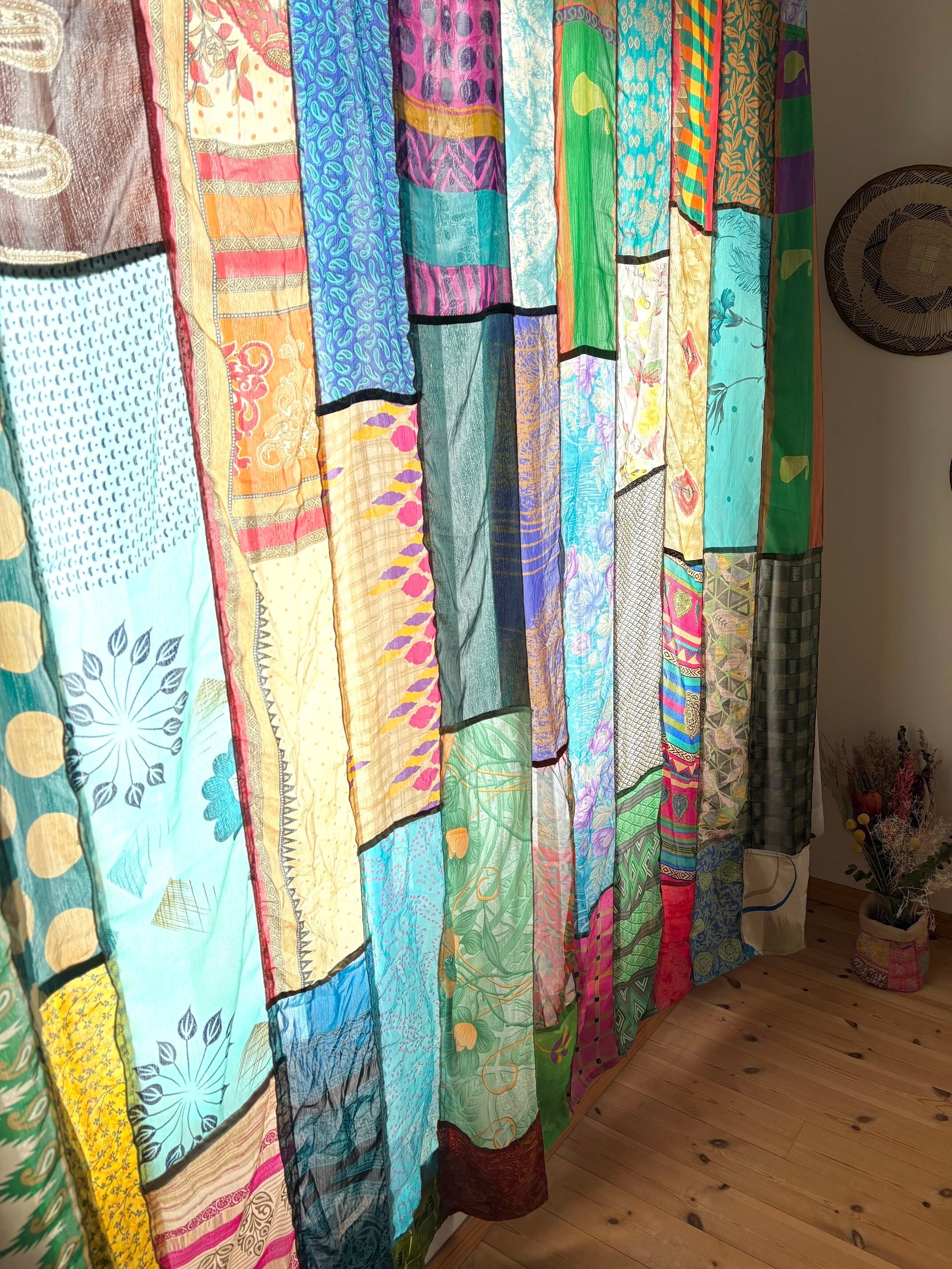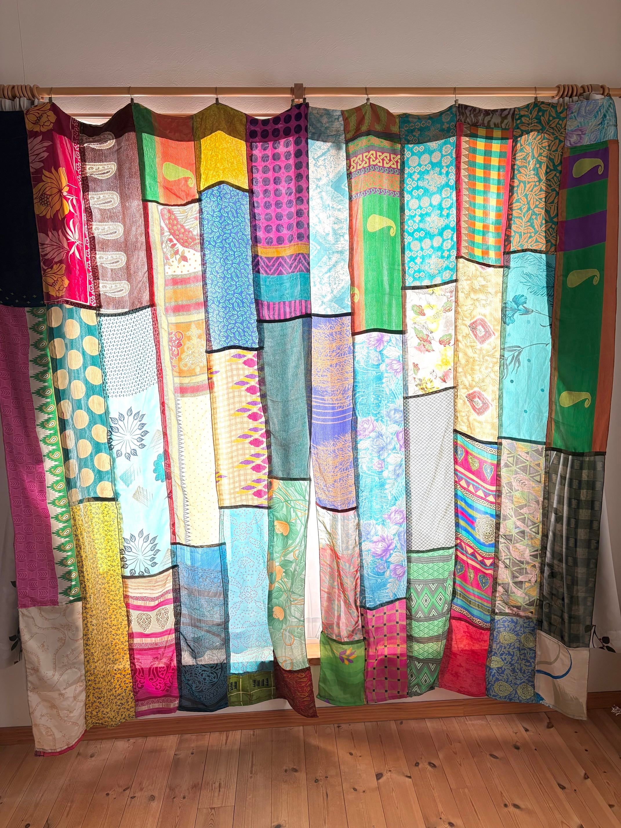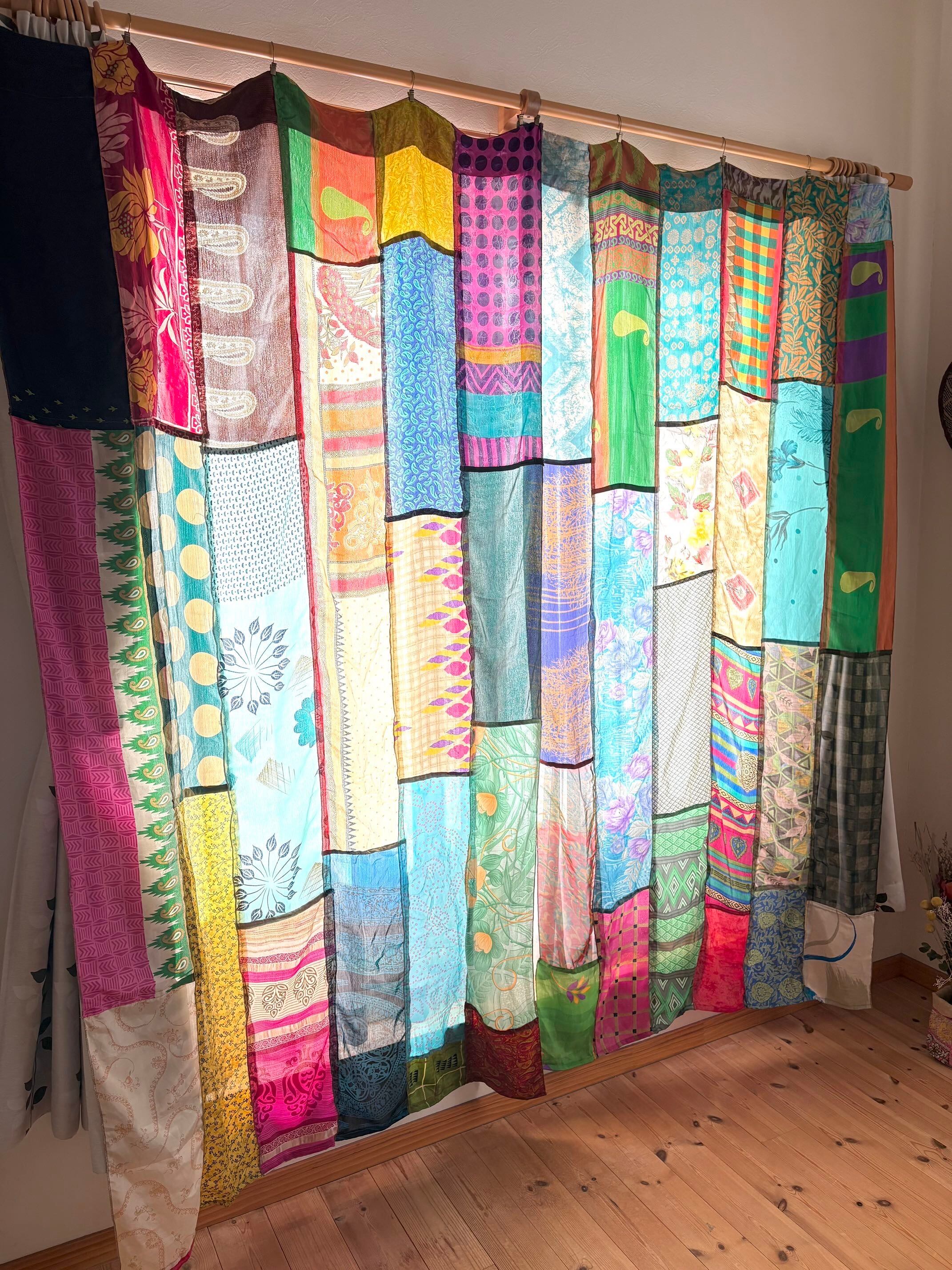 ヴィンテージサリーで出来たパッチワークシルクカーテン