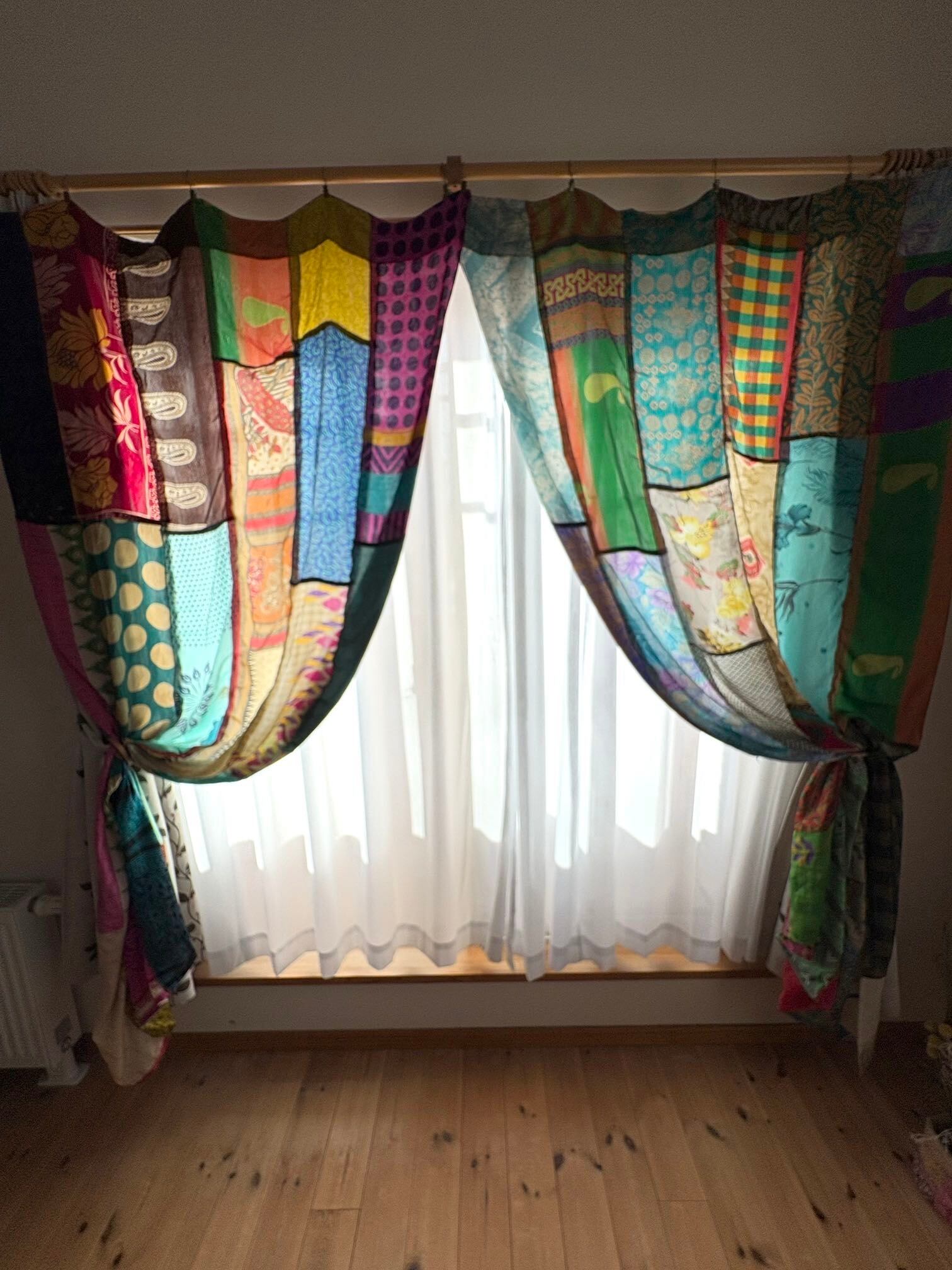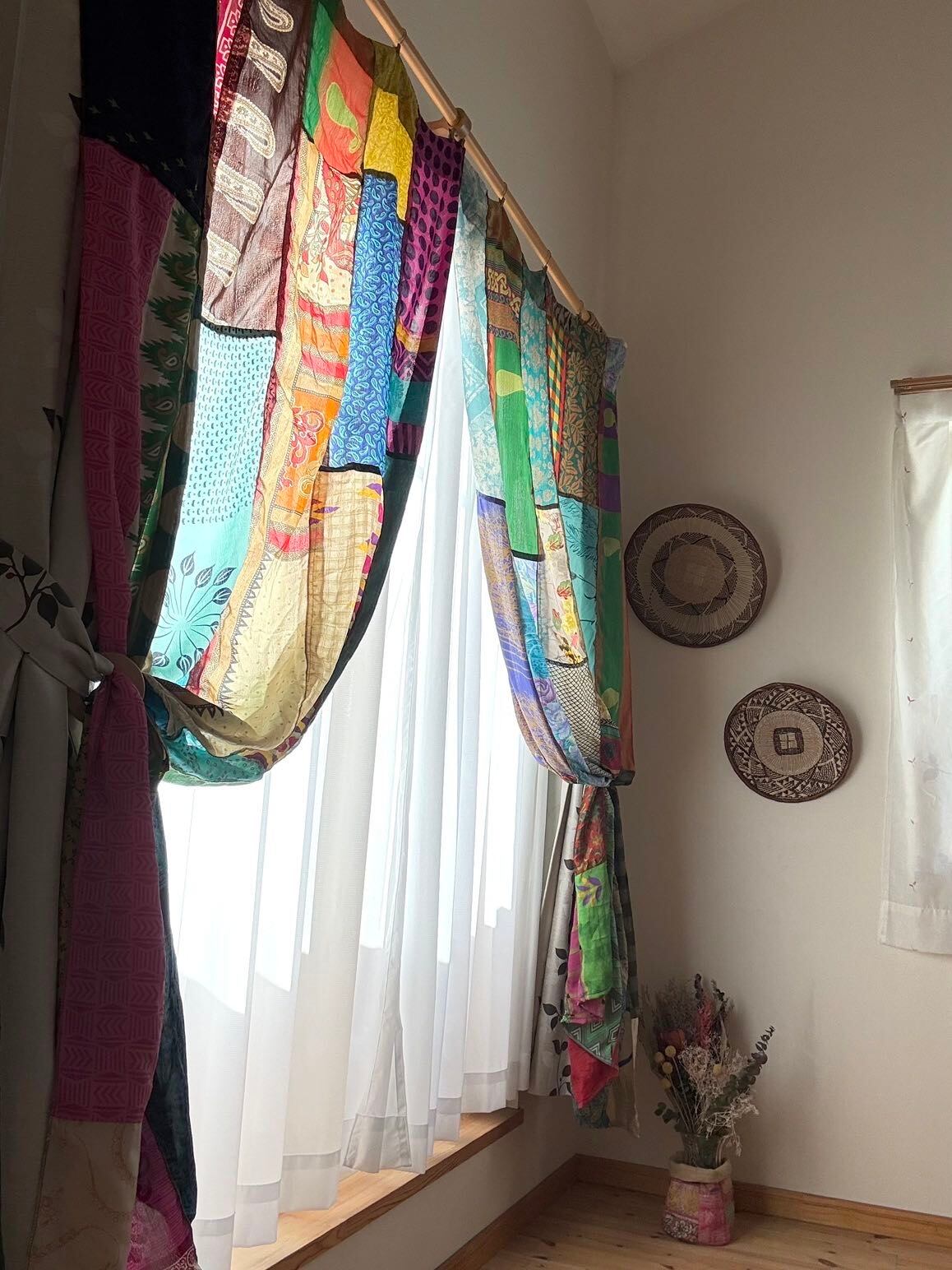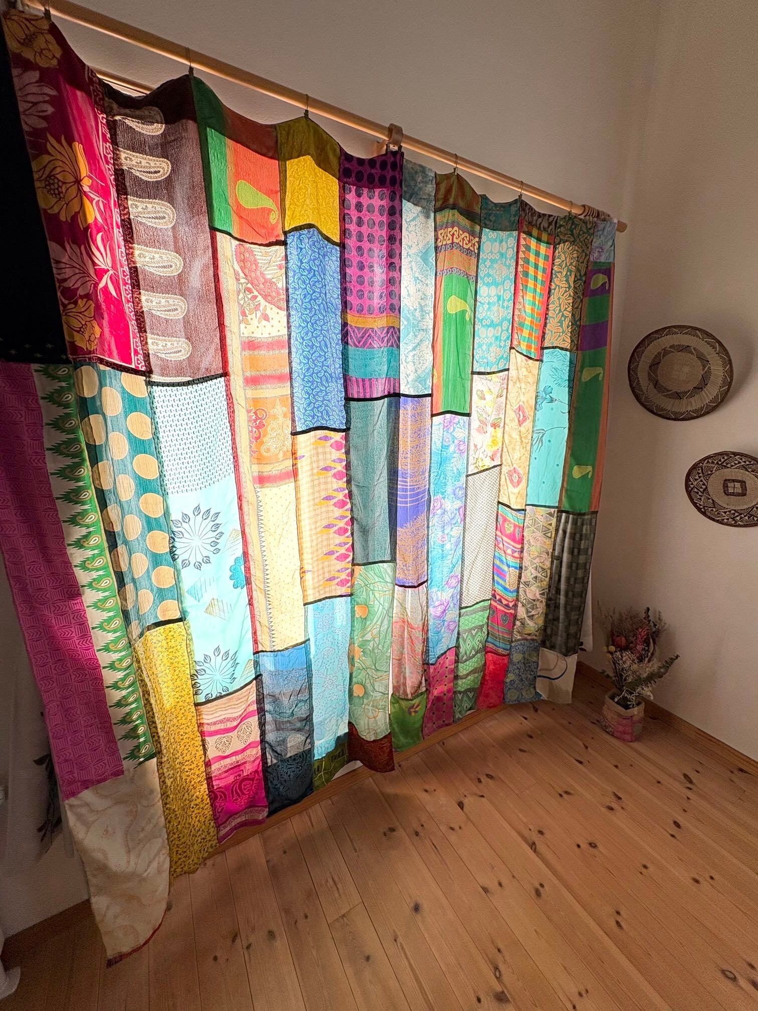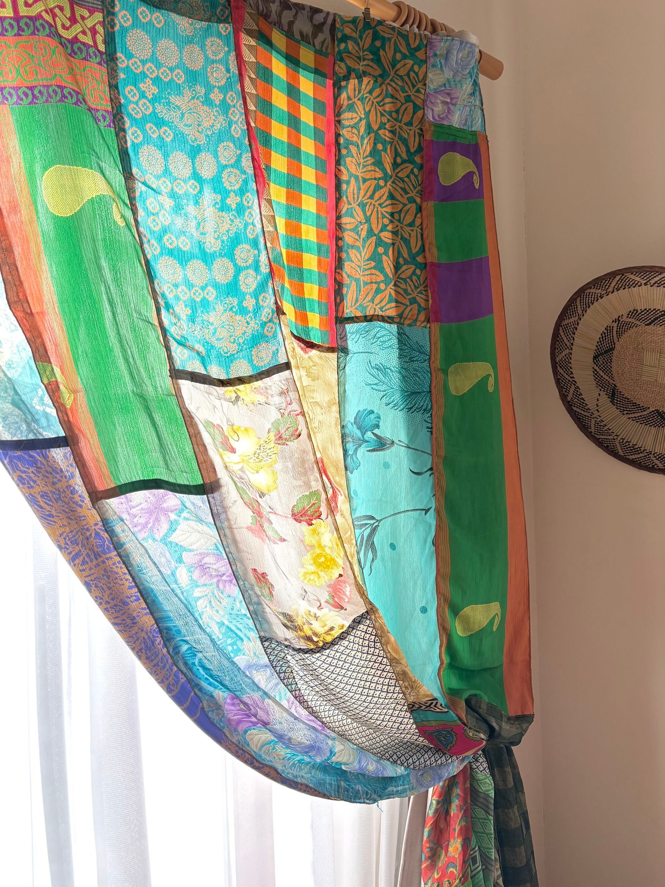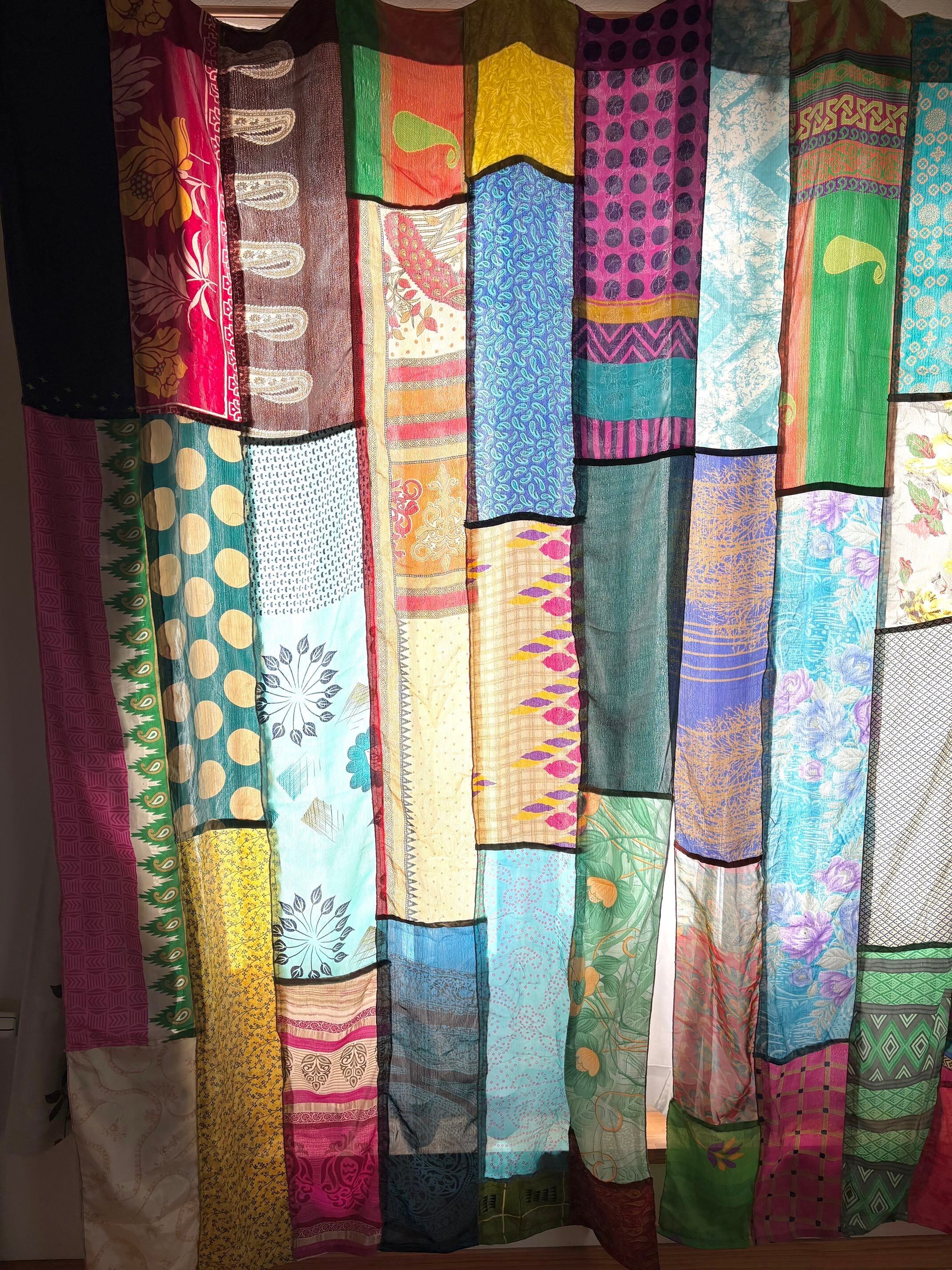 ヴィンテージサリーで出来たパッチワークシルクカーテン
