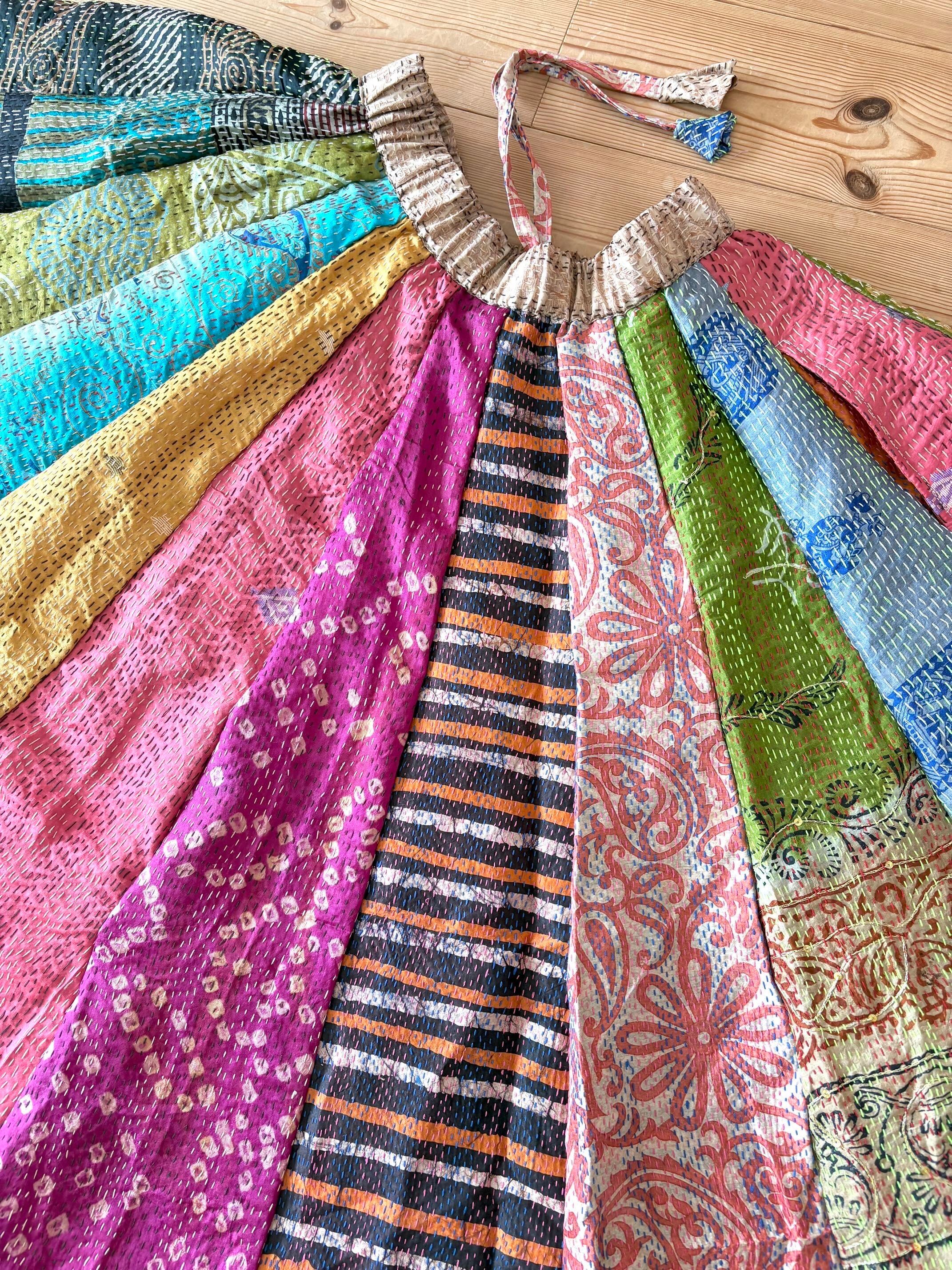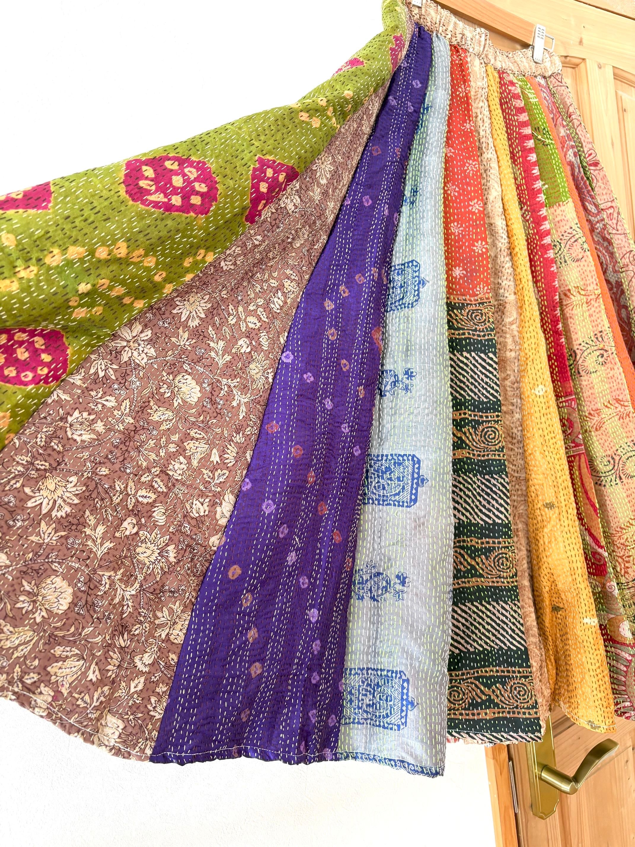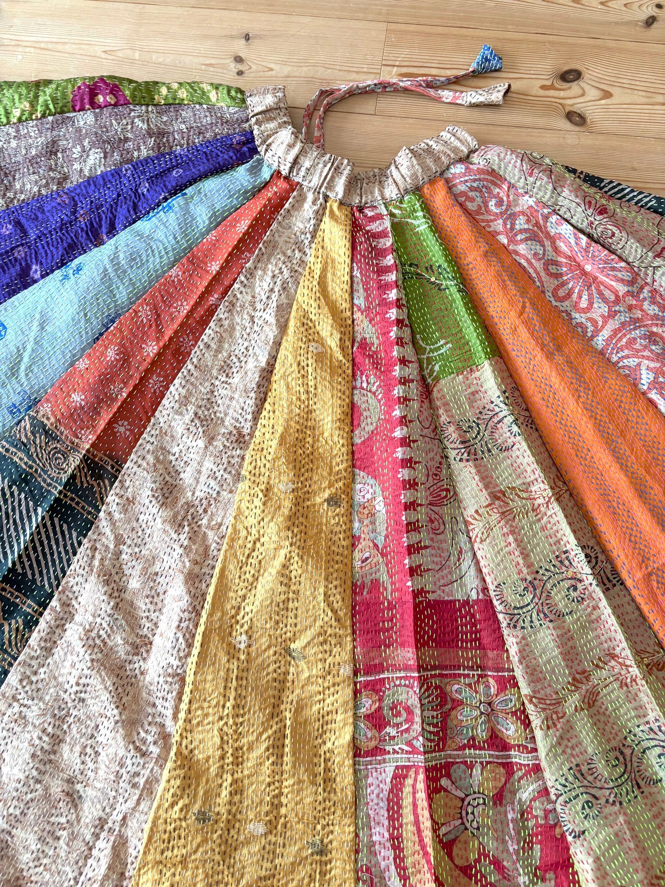 村の女性たちが一針一針カンタ刺繍をしたシルク生地をパッチワークで繋ぎ合わせた唯一無二のスカートです!!