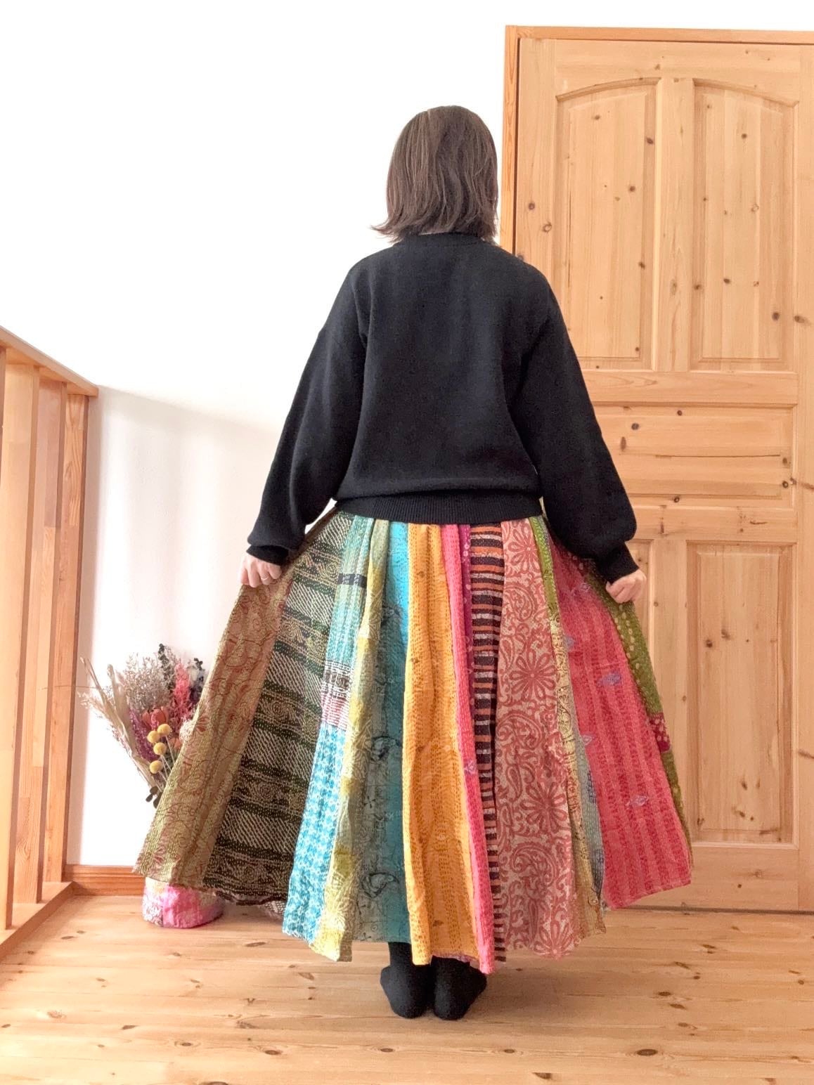カラフルチャイ/カンタ刺繍パッチワークスカート