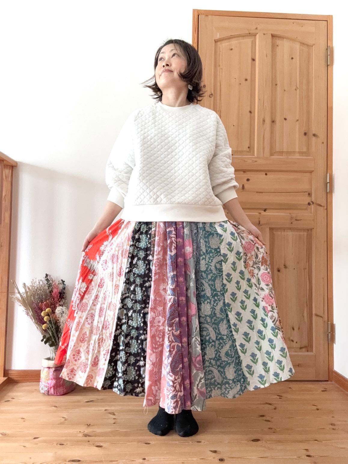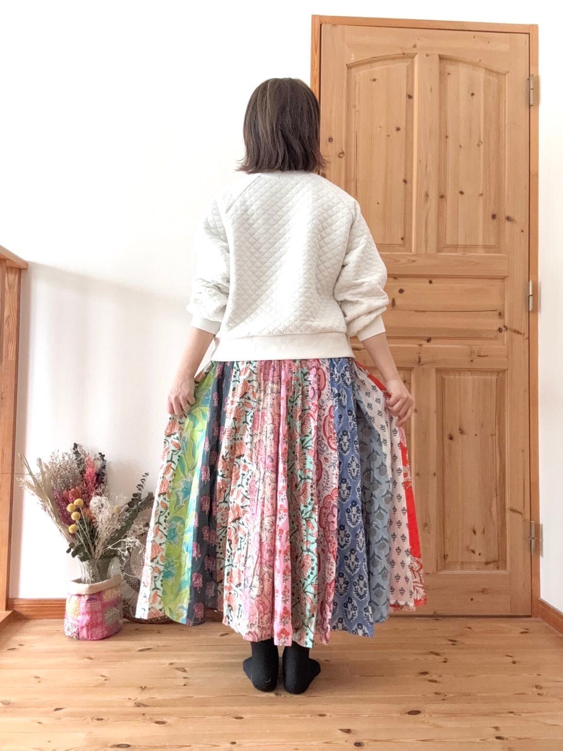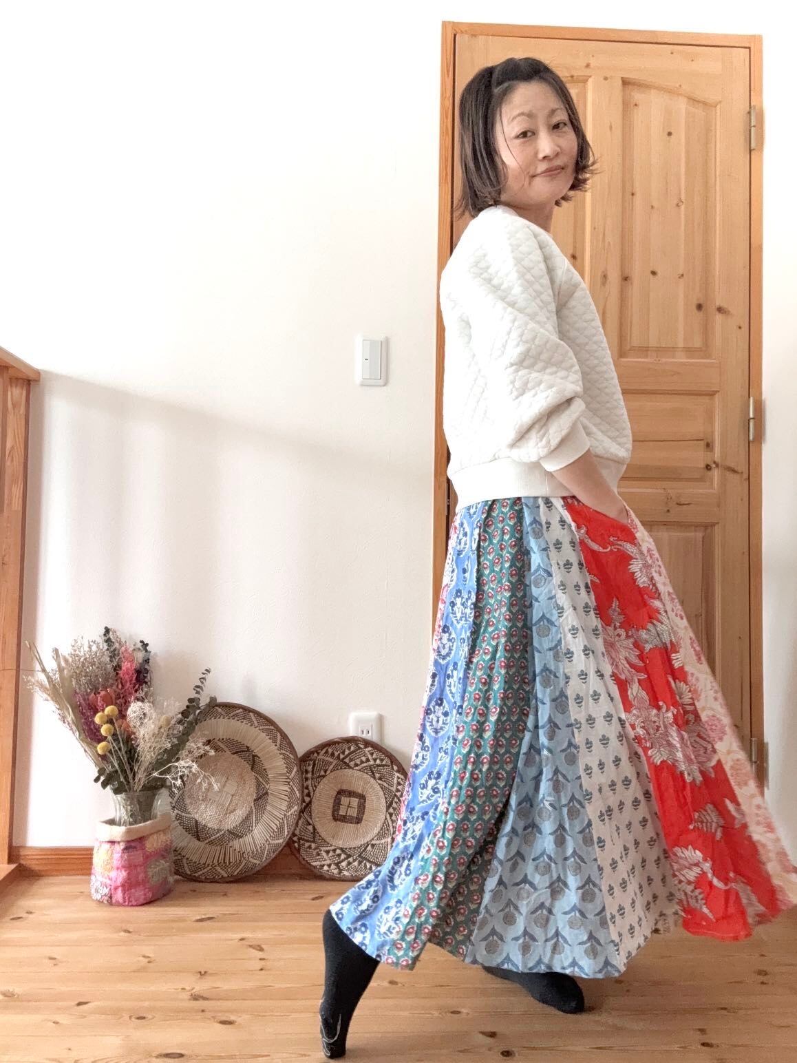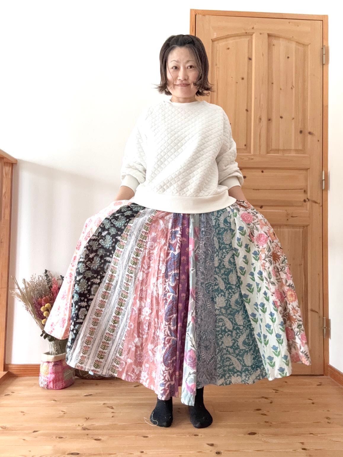 世界にひとつのブロックプリントパッチワークスカートです!!