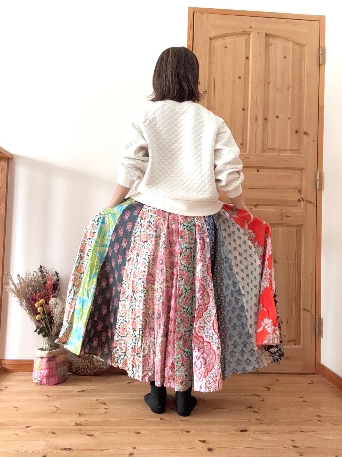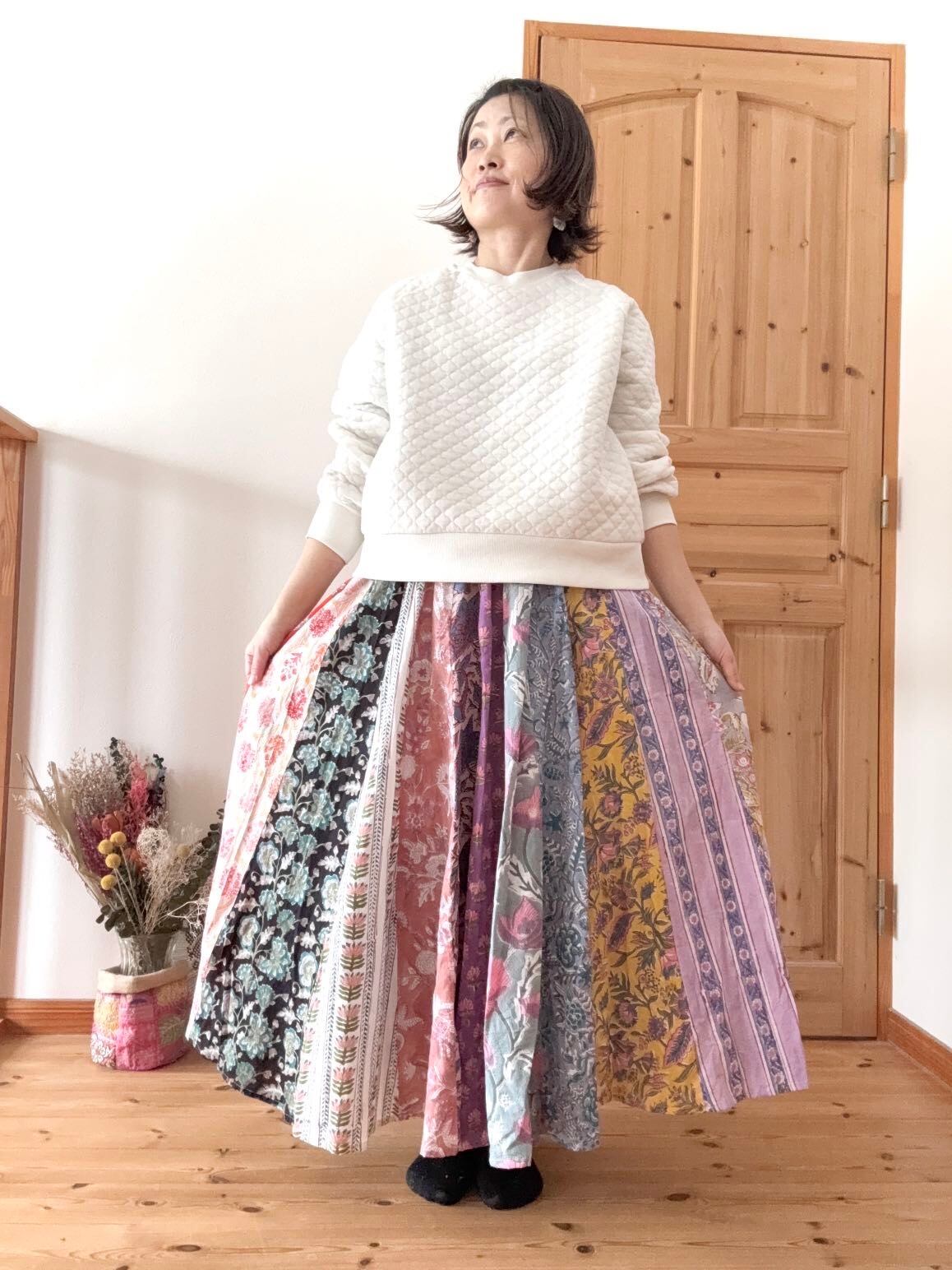 世界にひとつのブロックプリントパッチワークスカートです!!