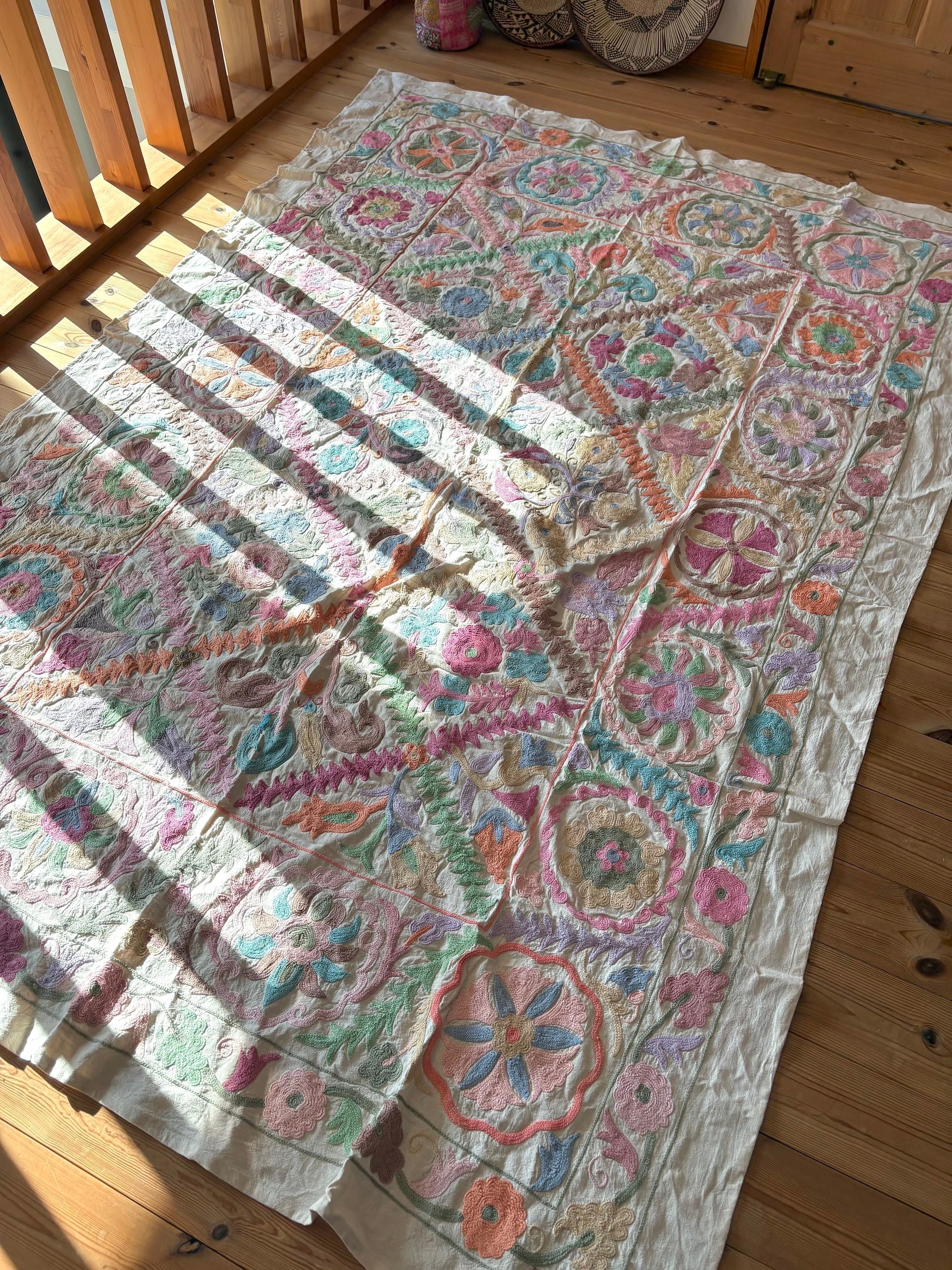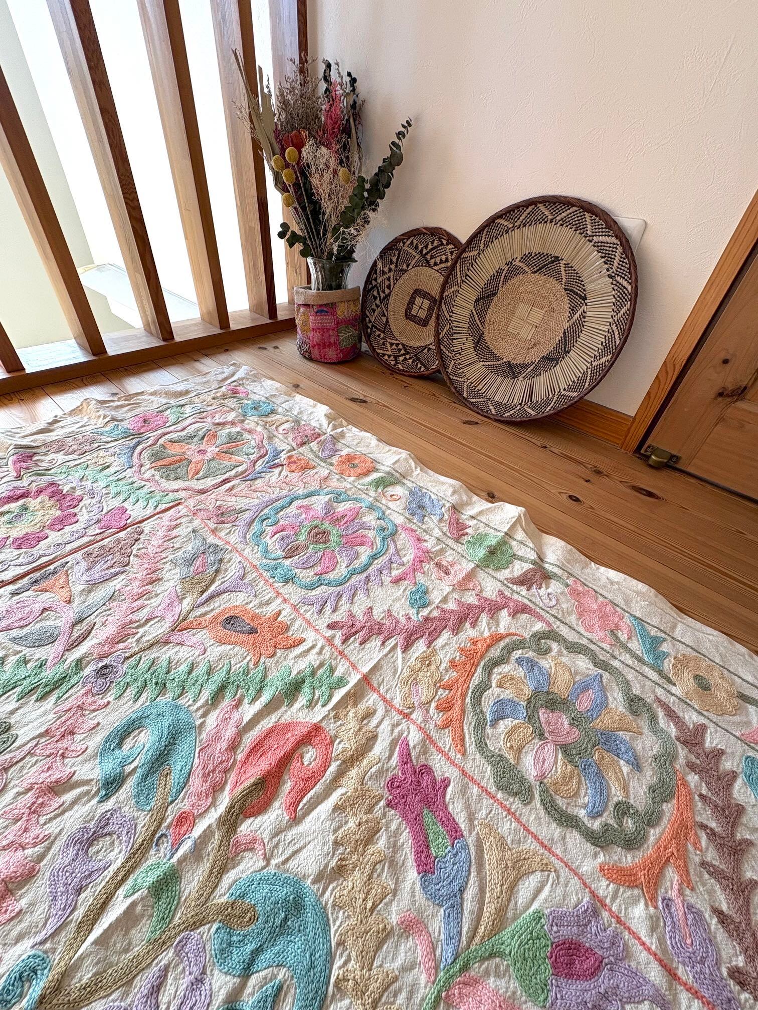 つながる花めぐり/パステルスザニ刺繍キルト