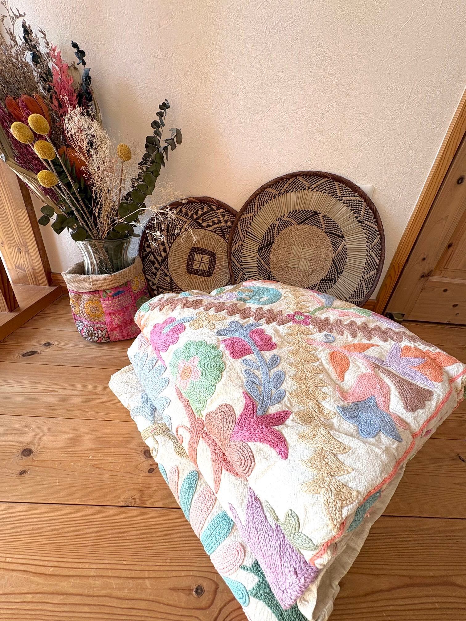 【パステルスザニ刺繍キルト♡】