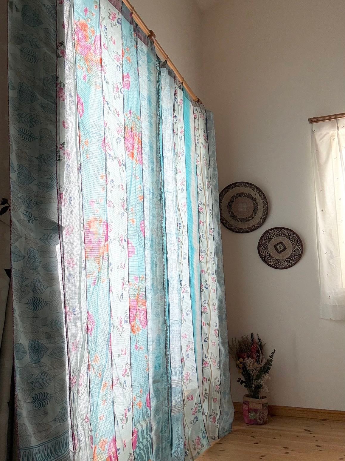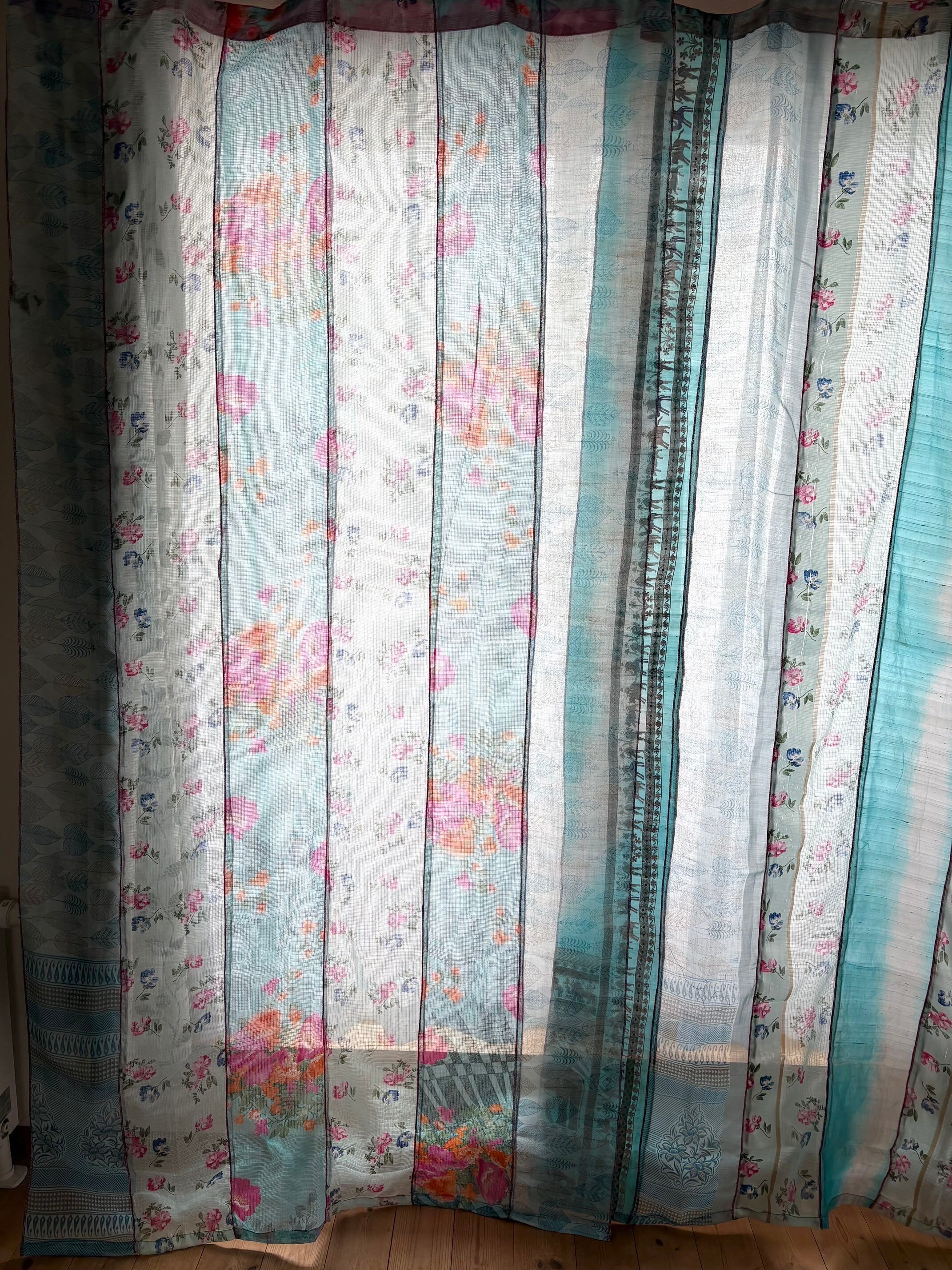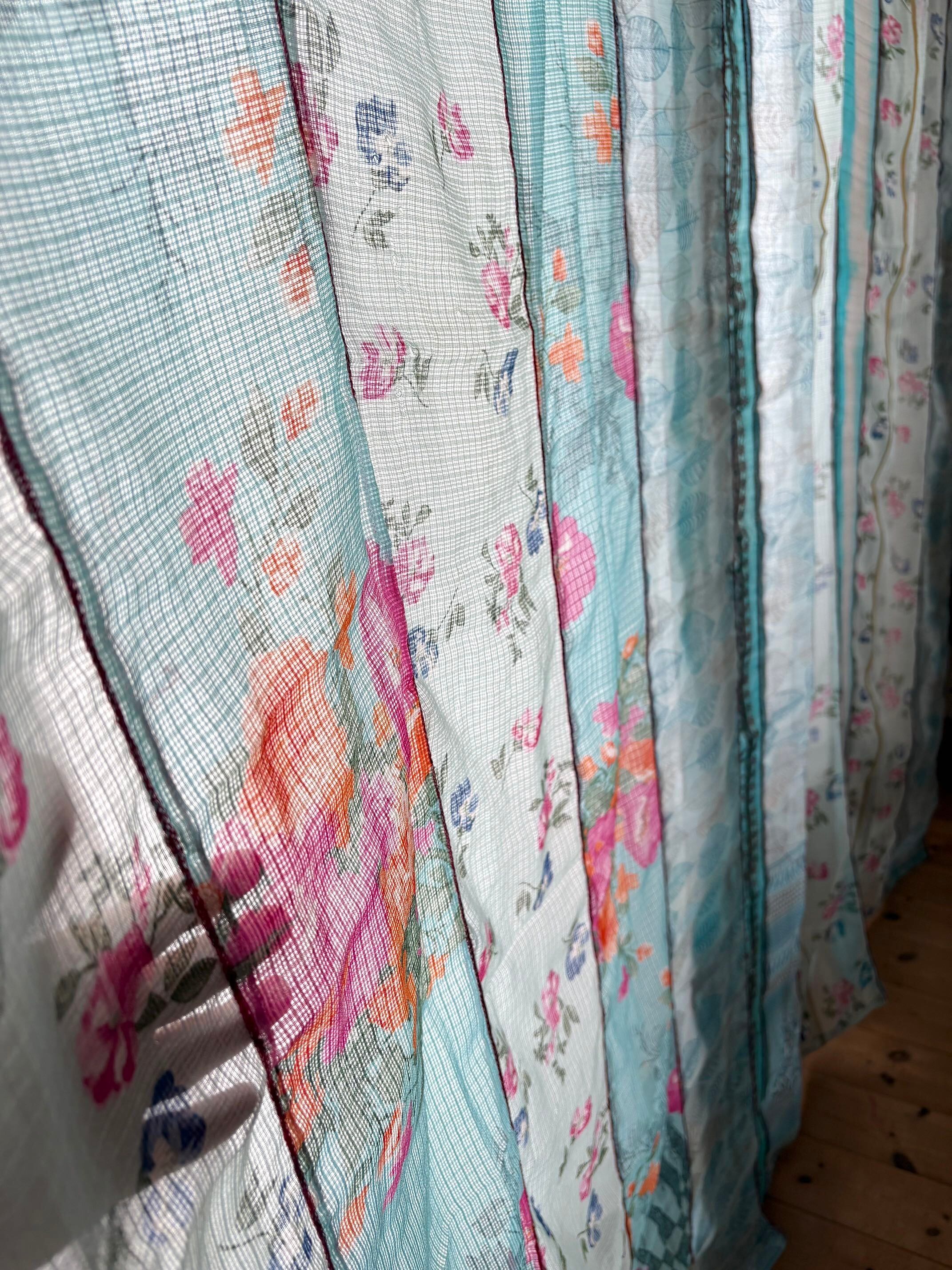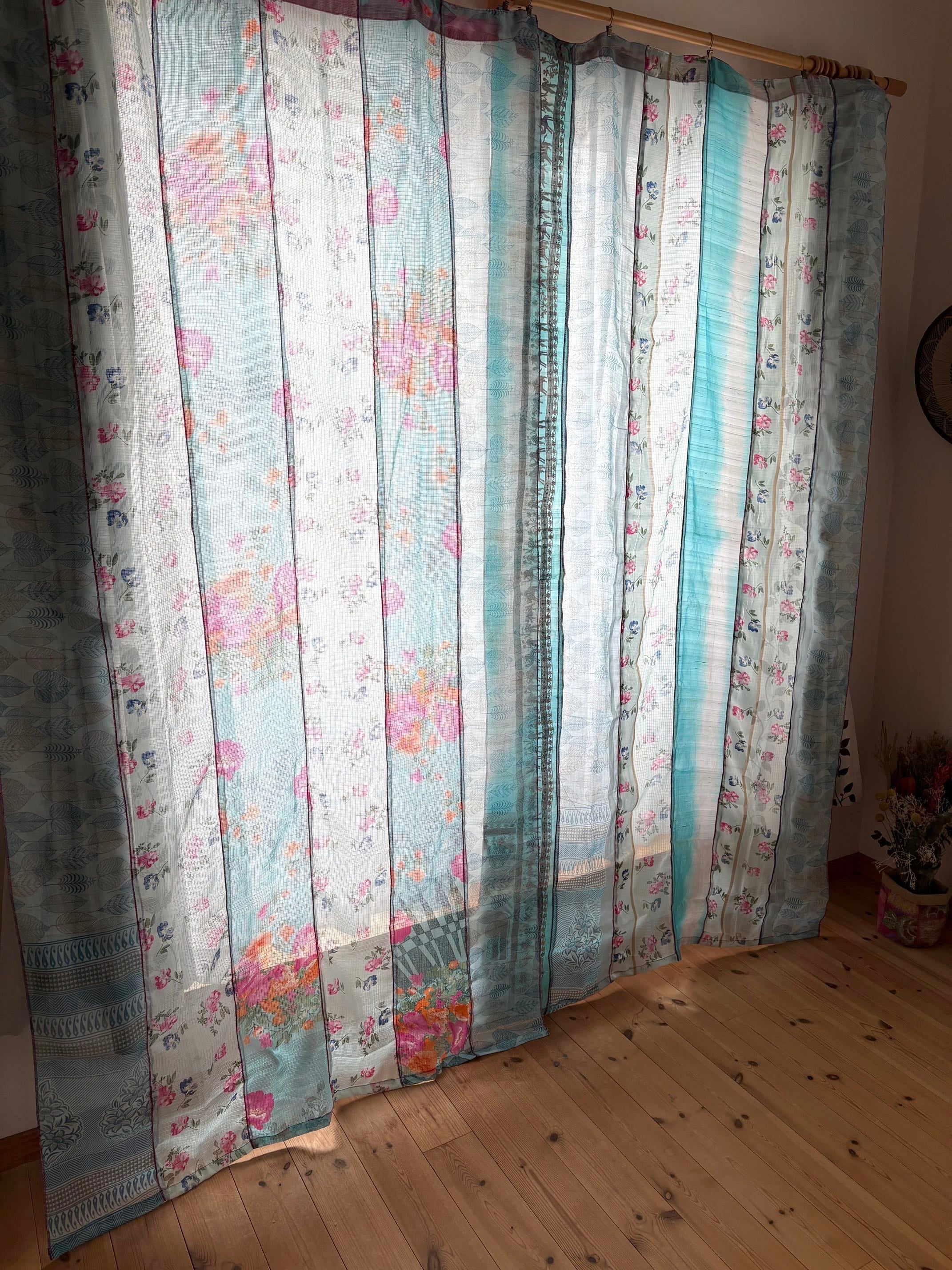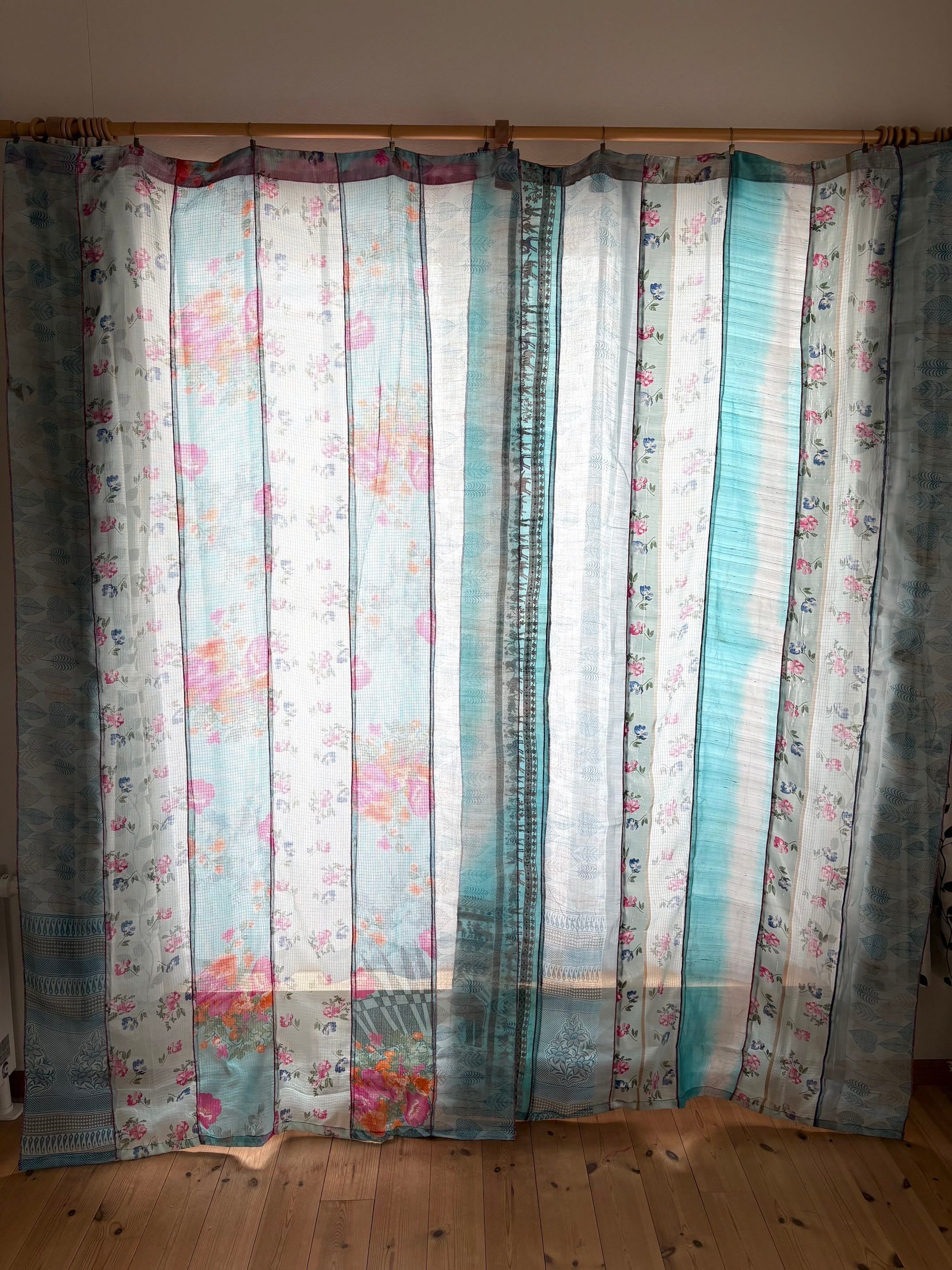 ヴィンテージサリーで出来たパッチワークシルクカーテン