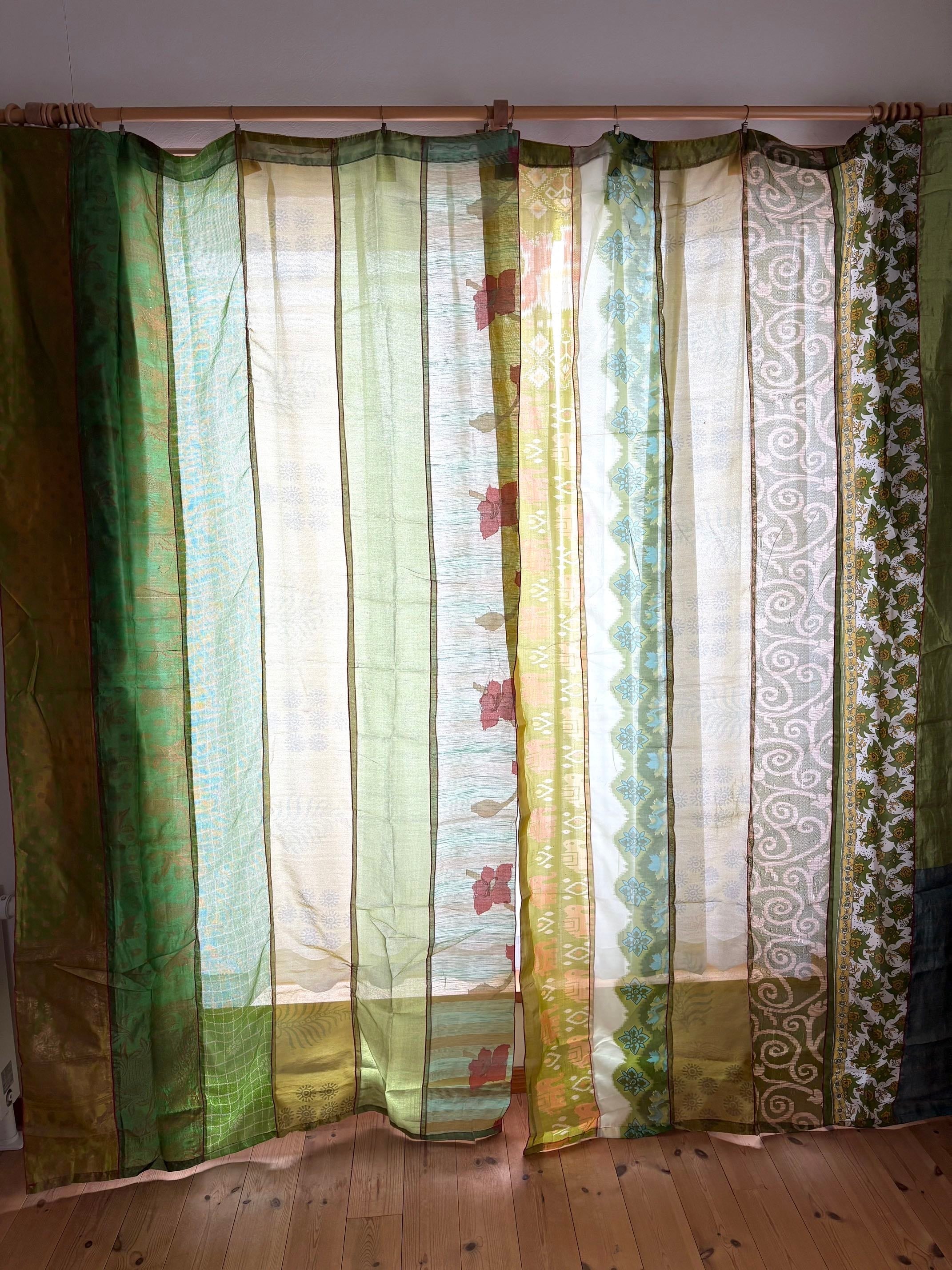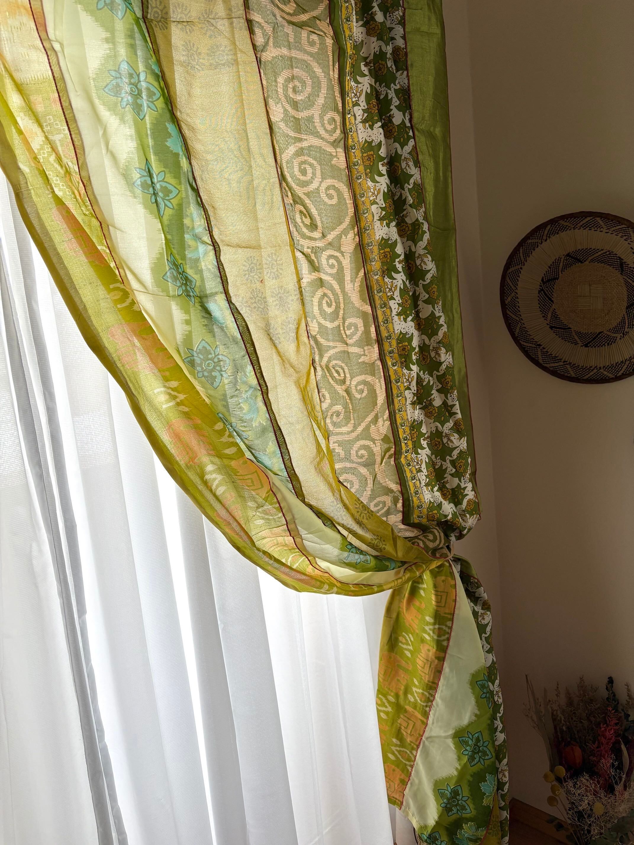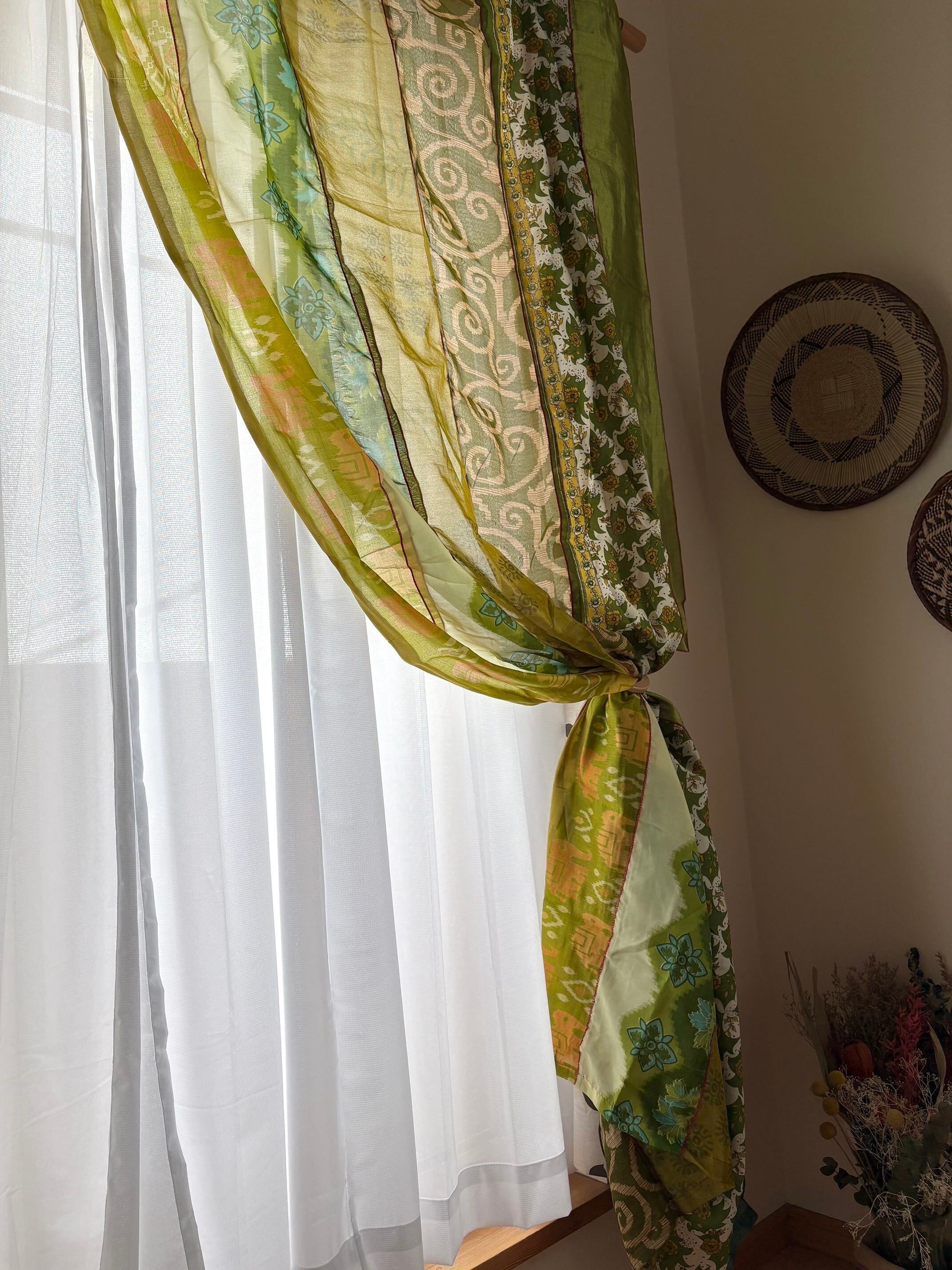 ヴィンテージサリーで出来たパッチワークシルクカーテン