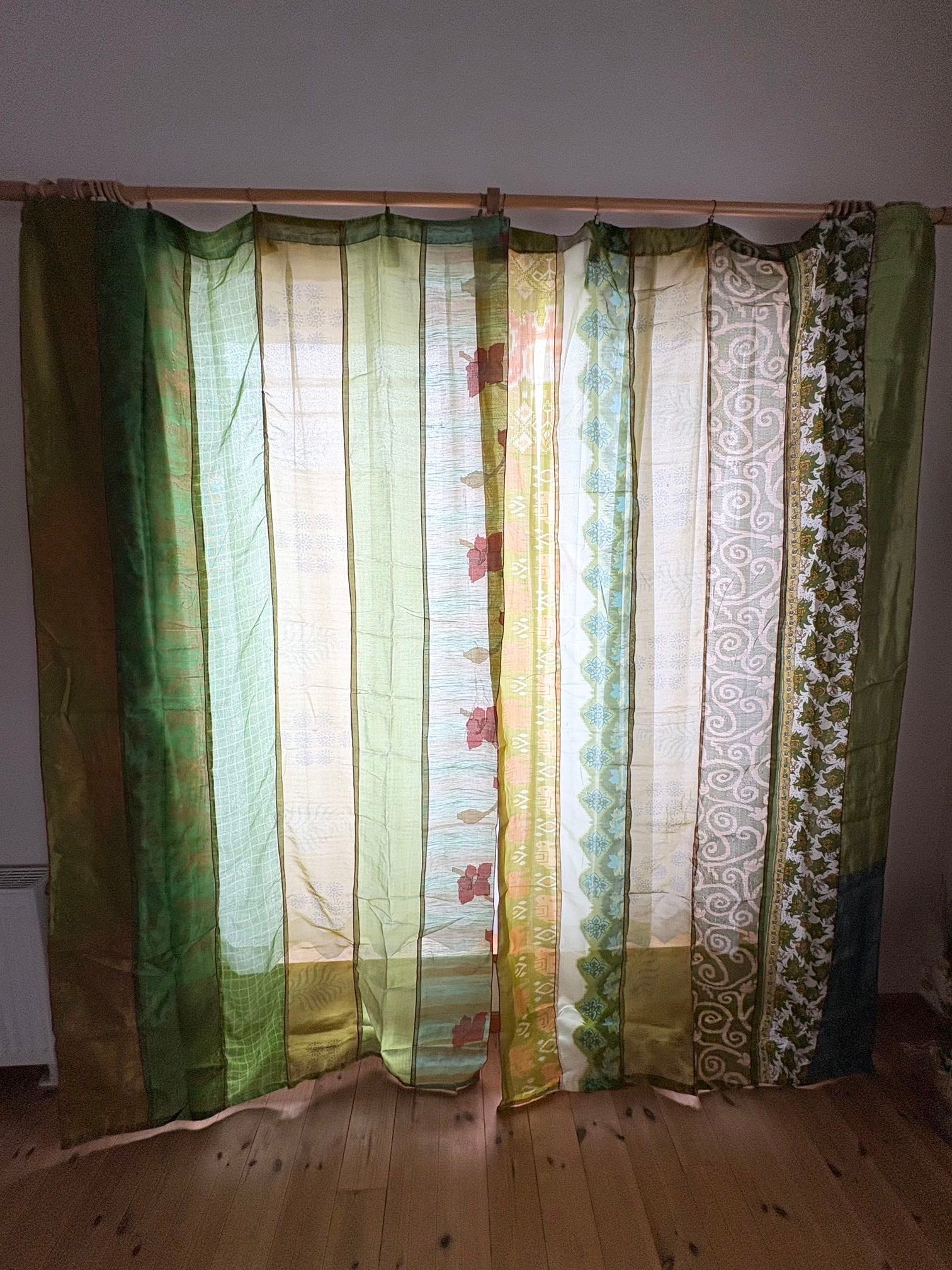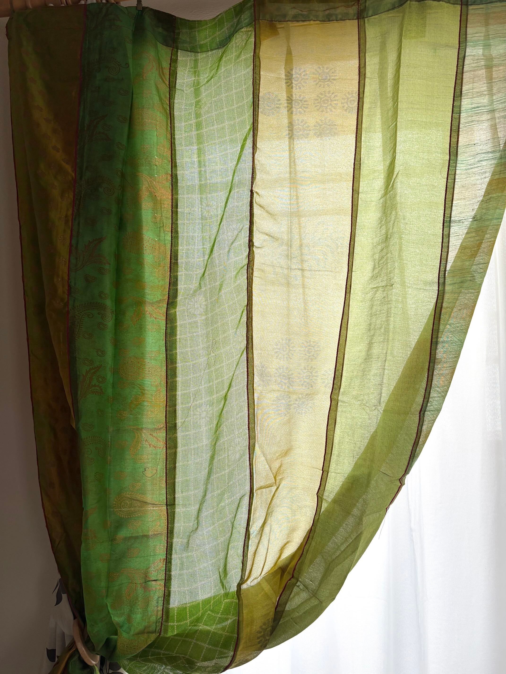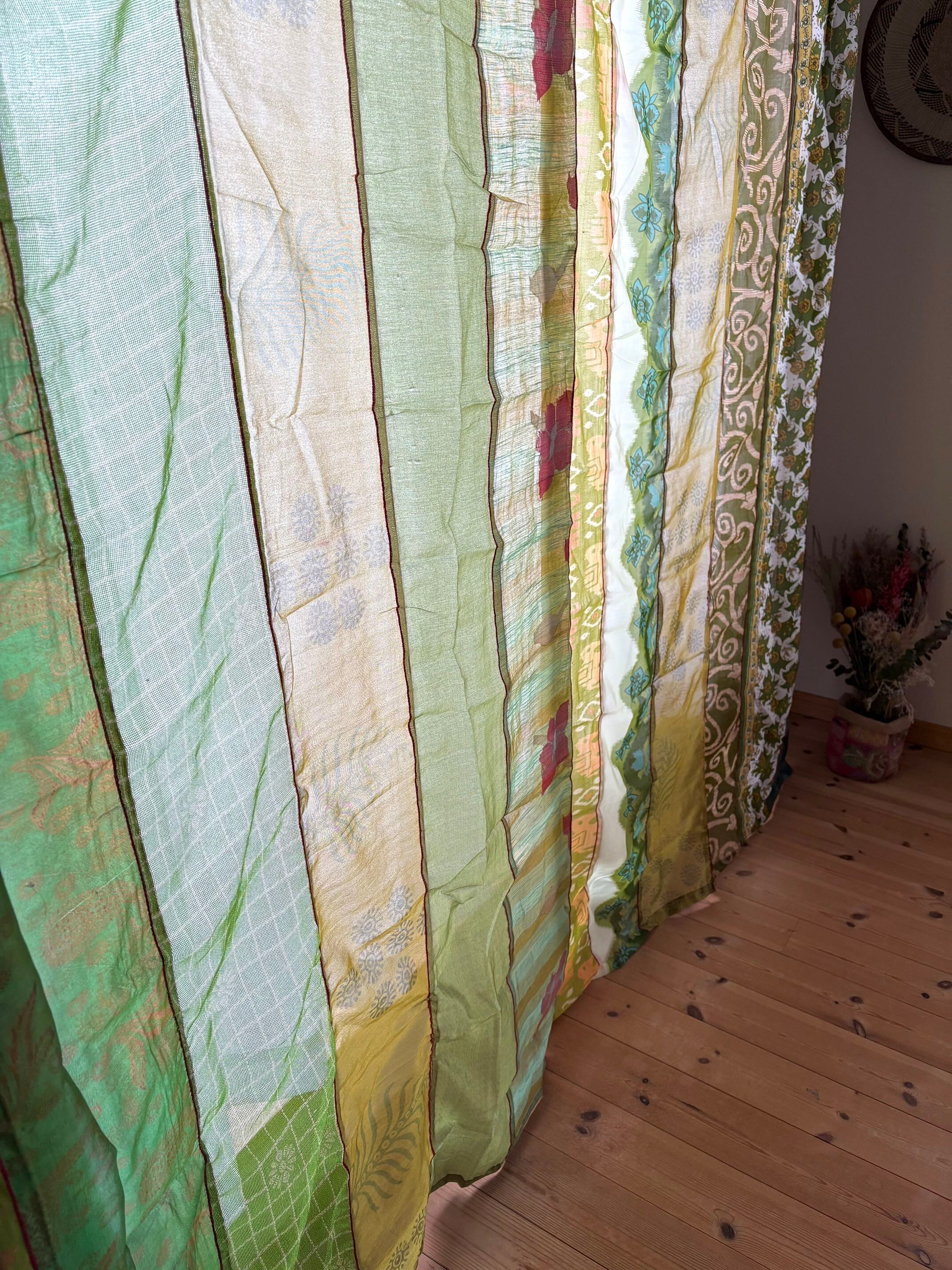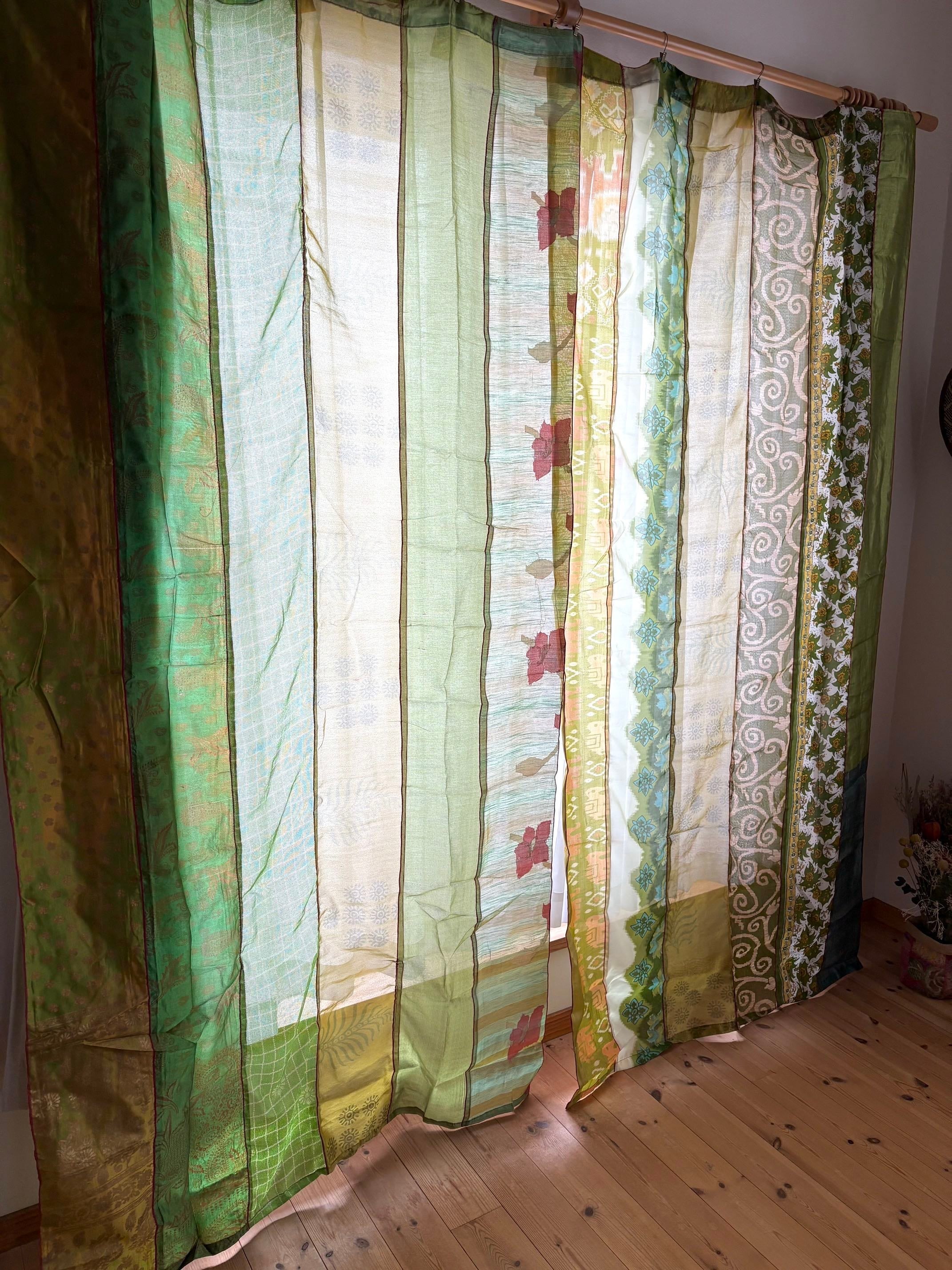 ヴィンテージサリーで出来たパッチワークシルクカーテン
