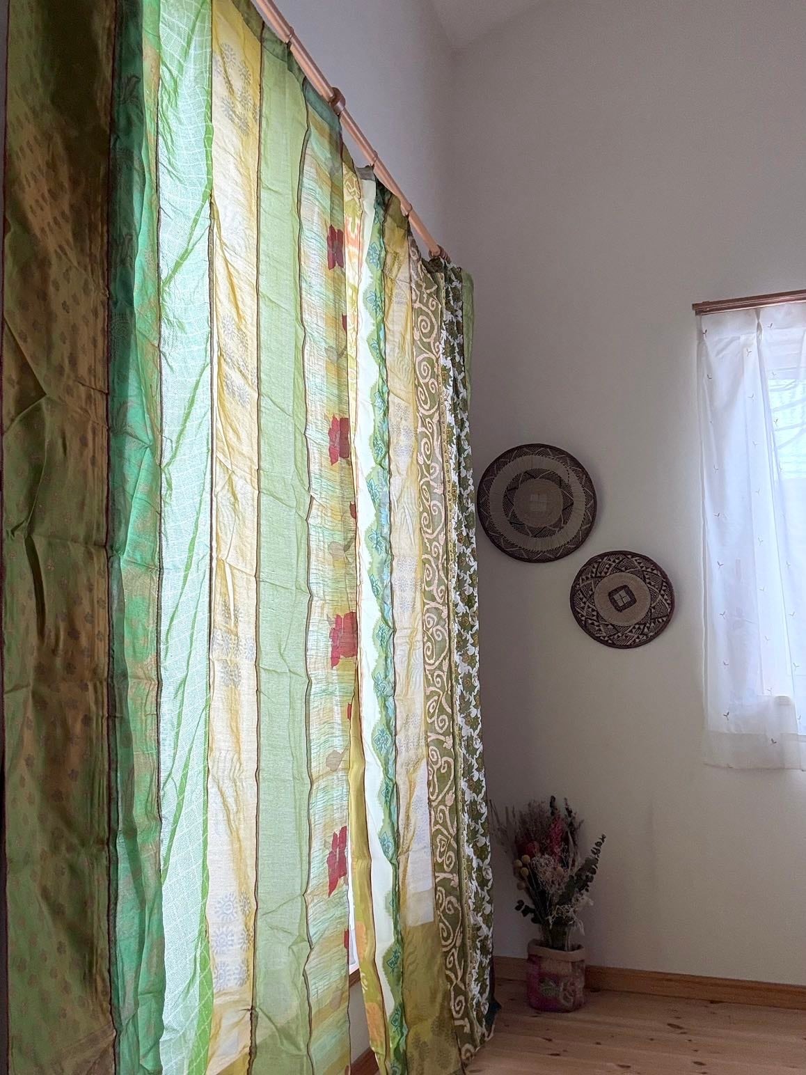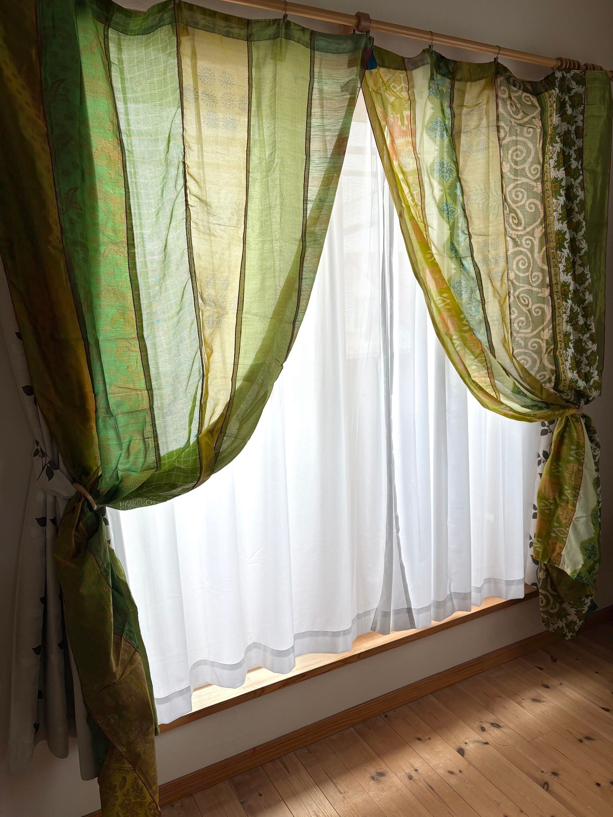 ※カーテンとしては新品未使用ですが、布はヴィンテージサリーを使っております。