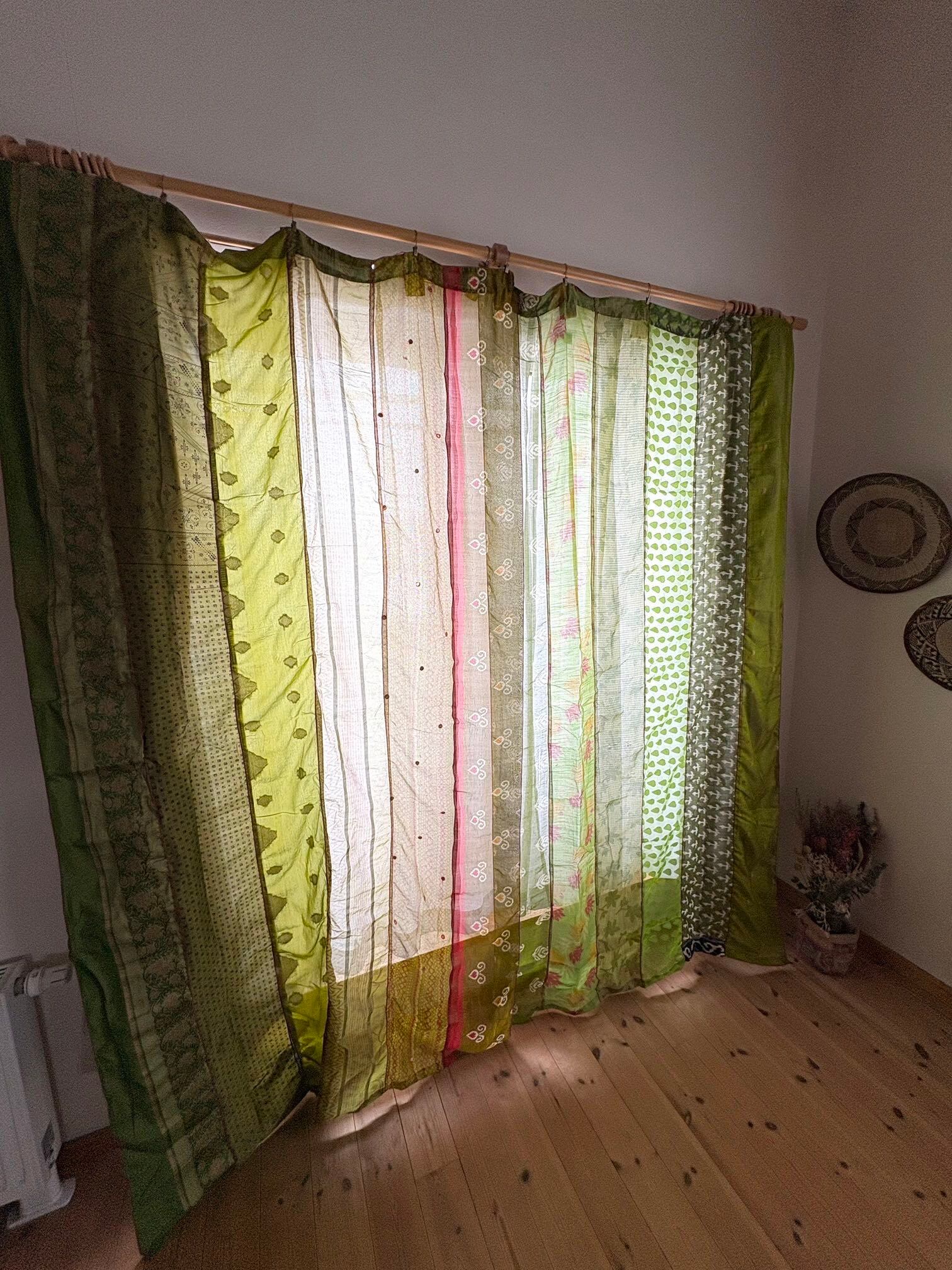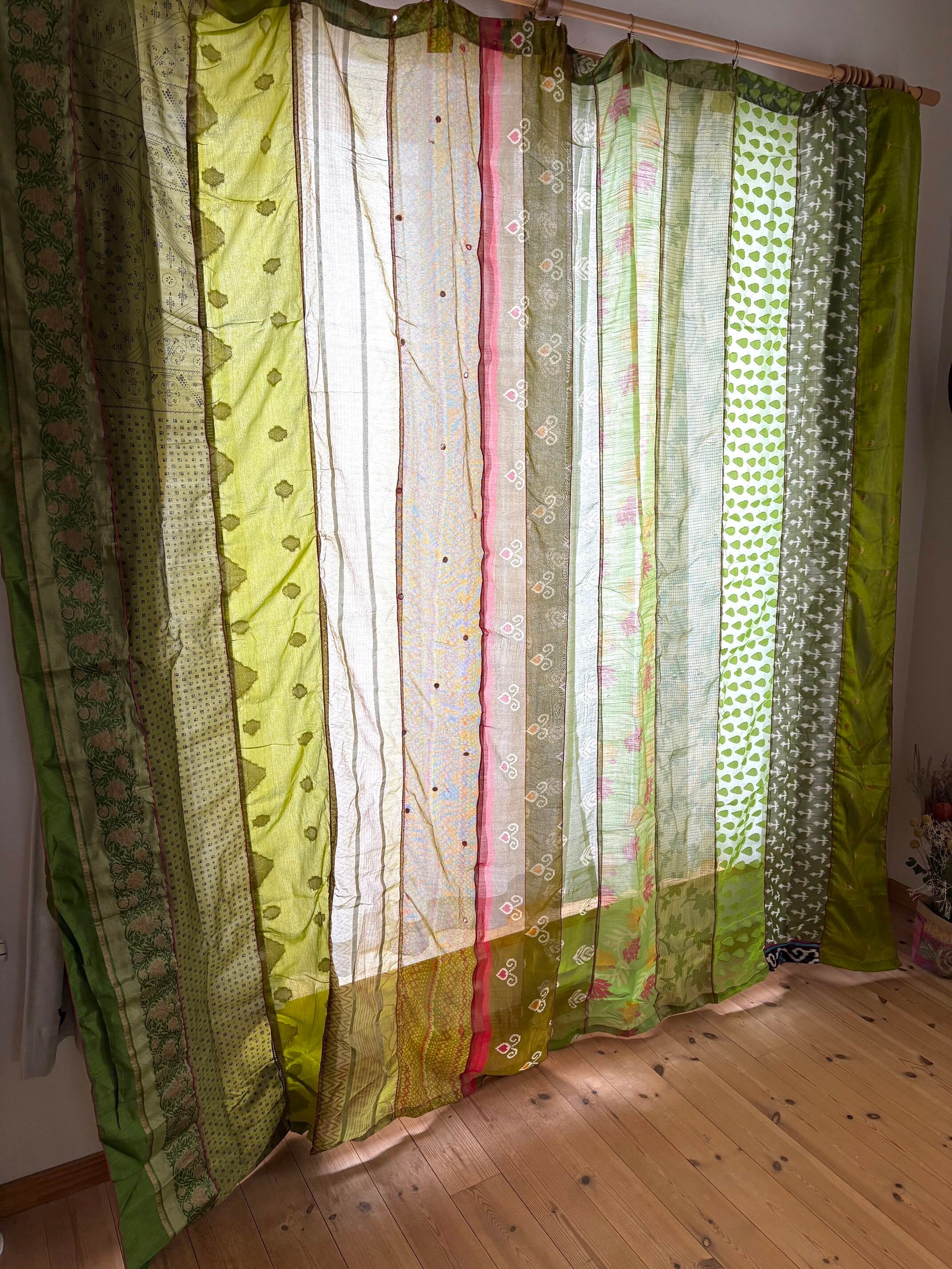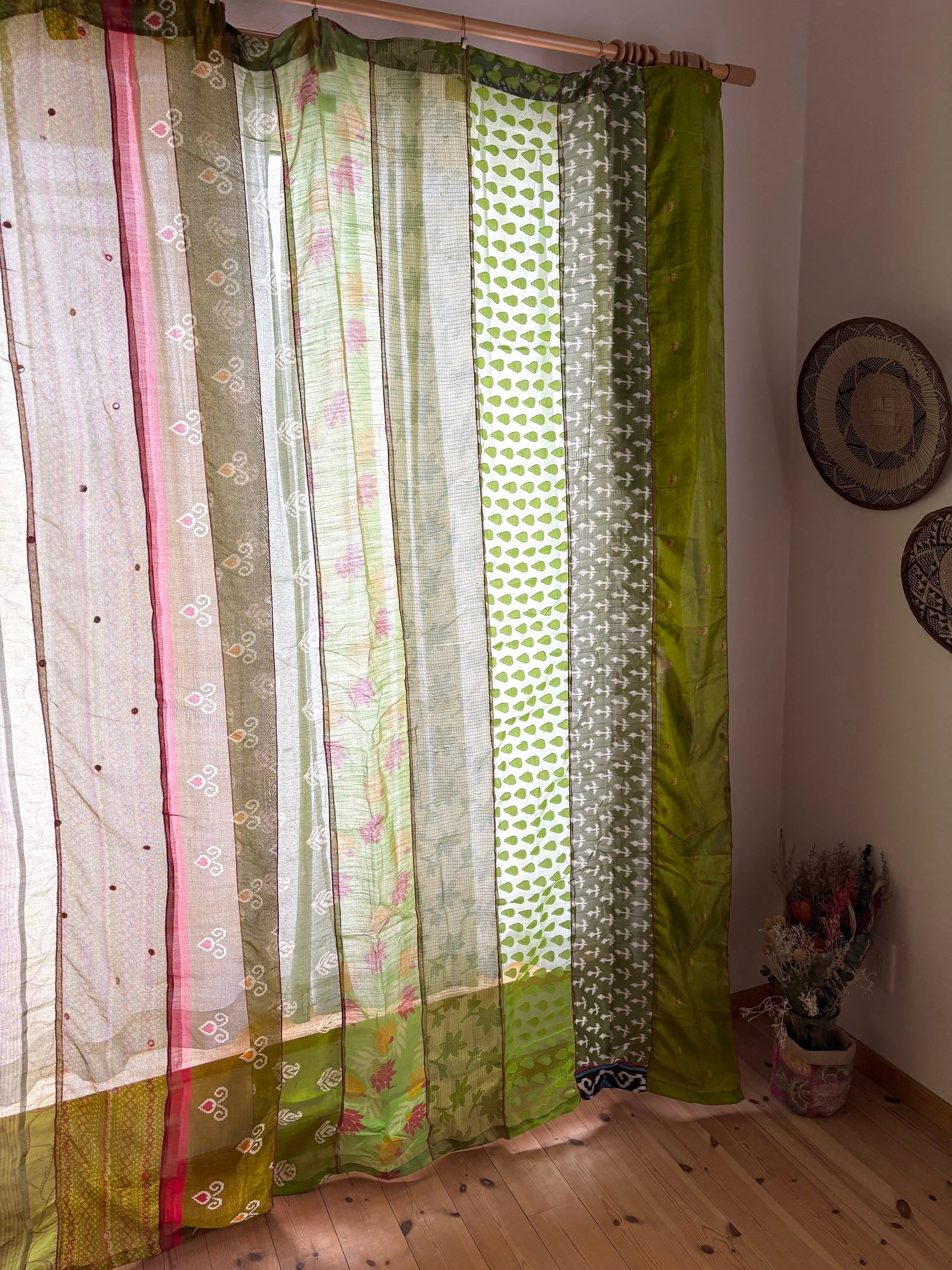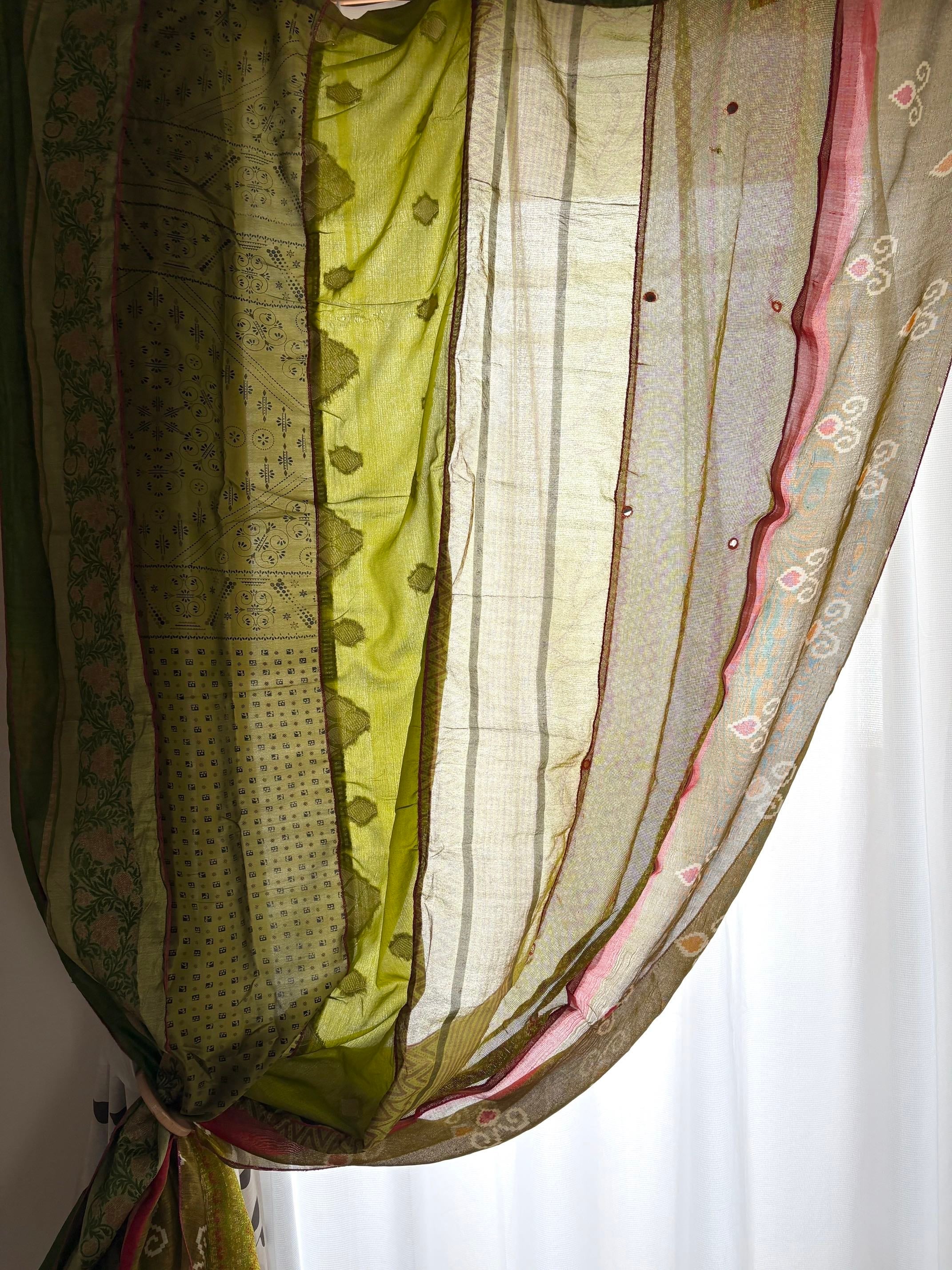 ヴィンテージサリーで出来たパッチワークシルクカーテン