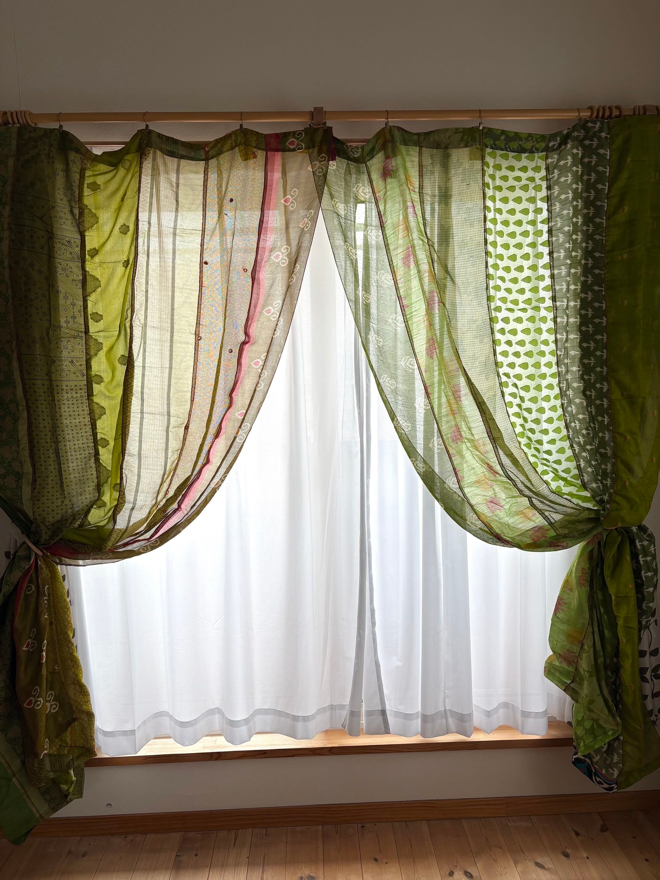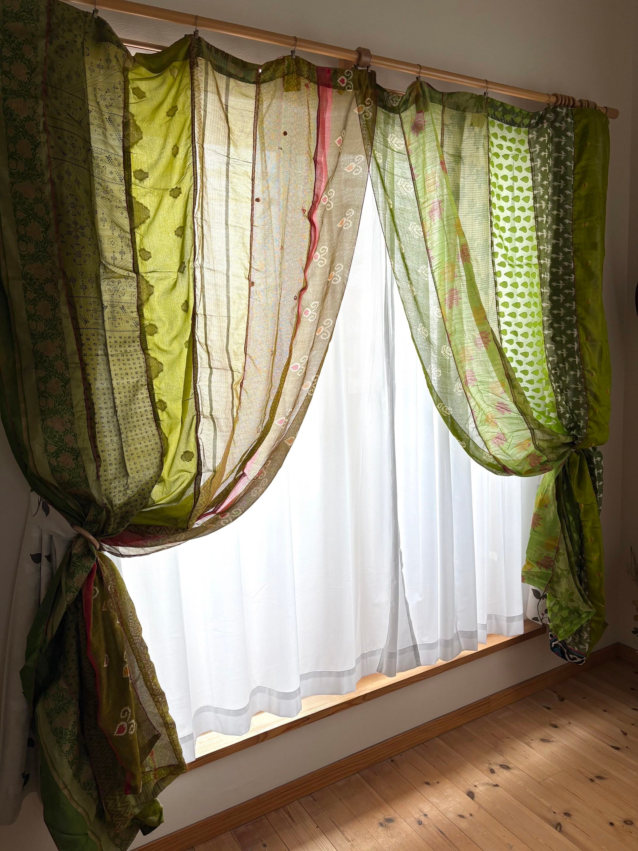 ※カーテンとしては新品未使用ですが、布はヴィンテージサリーを使っております。
