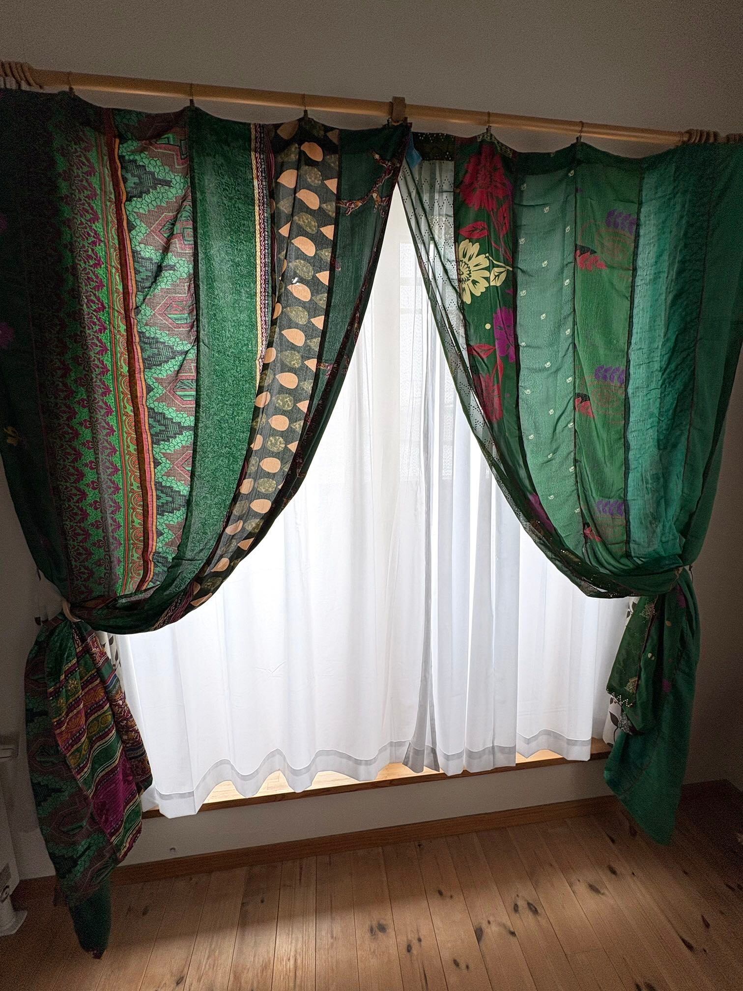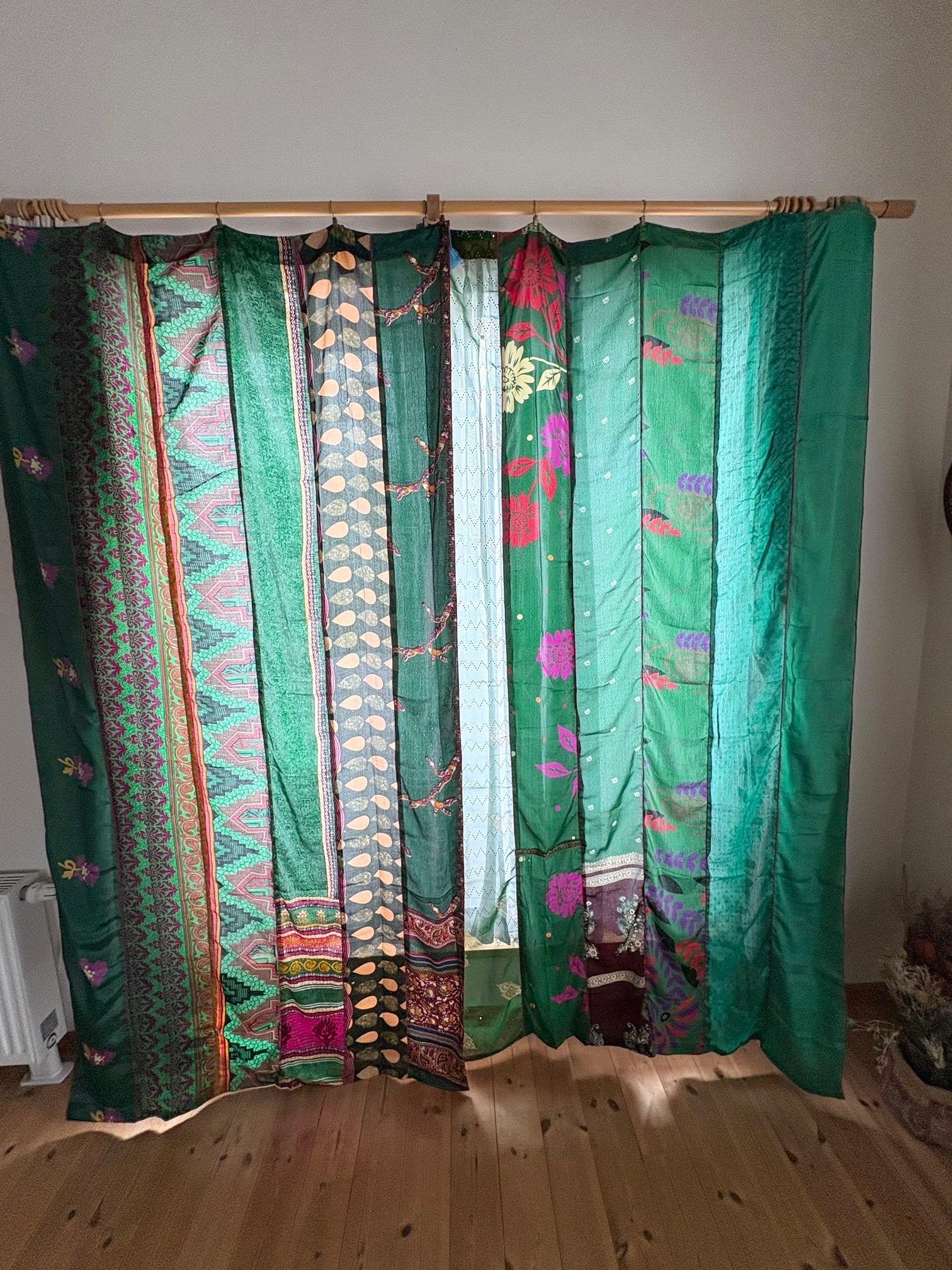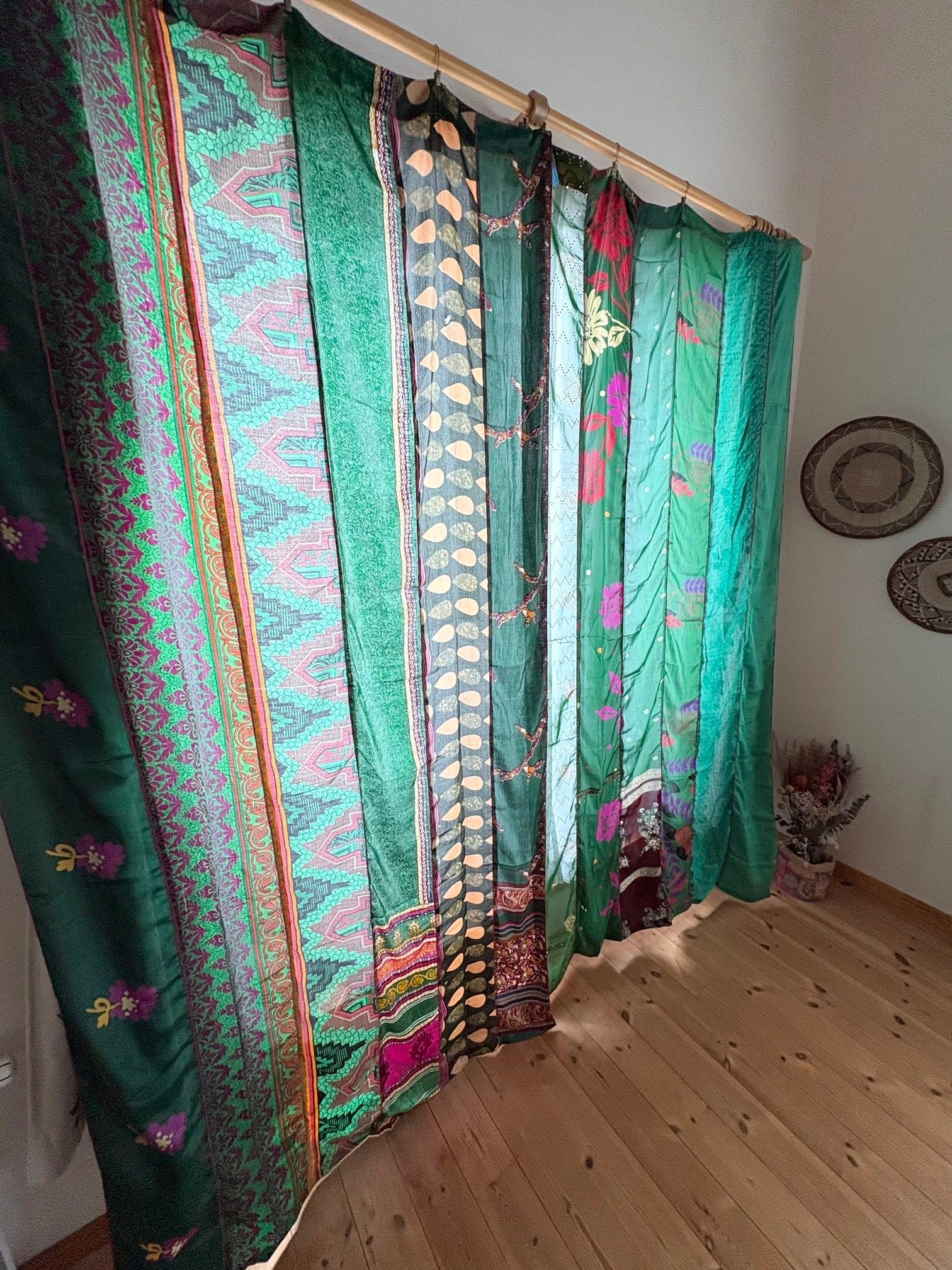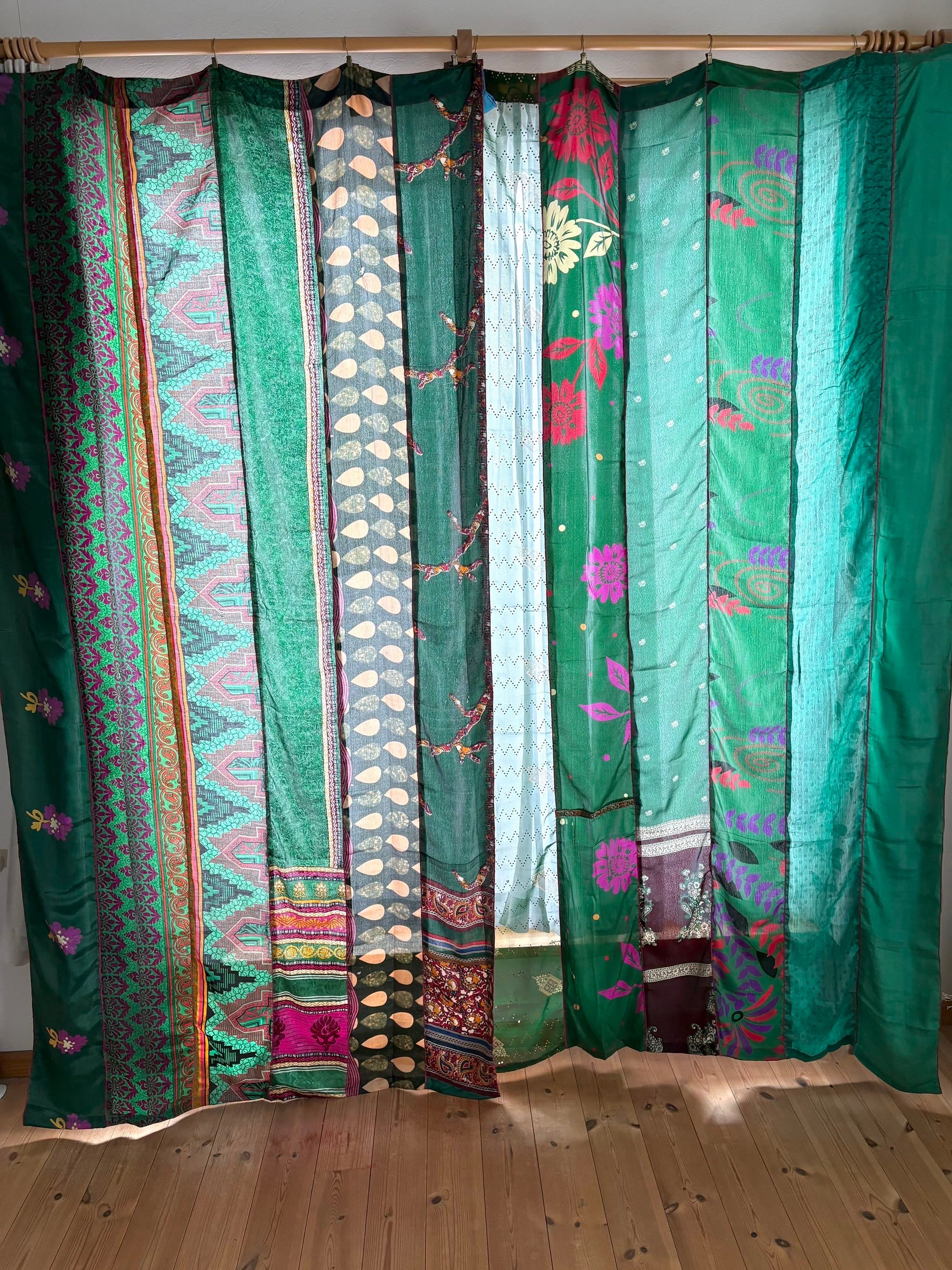 ヴィンテージサリーで出来たパッチワークシルクカーテン
