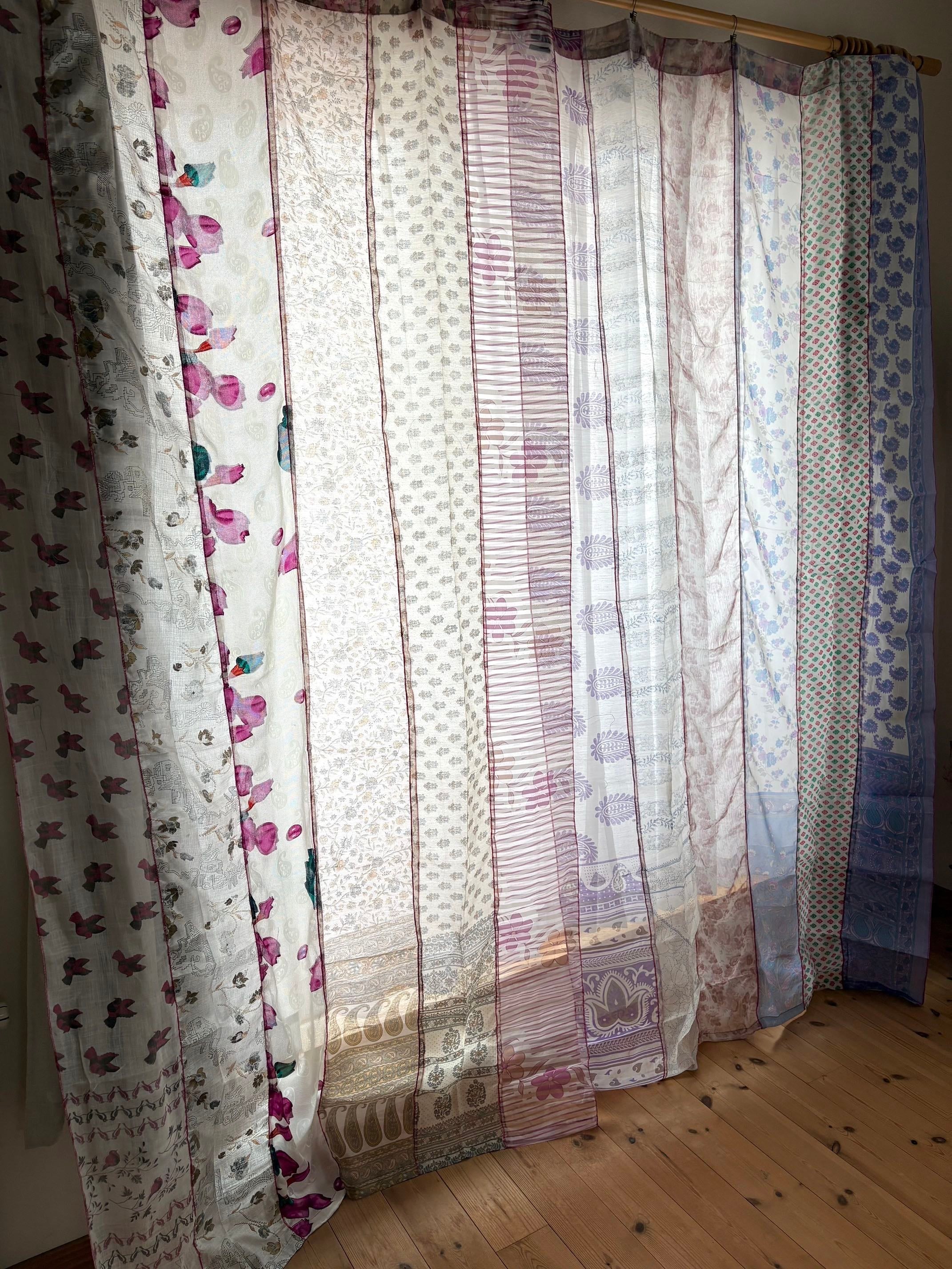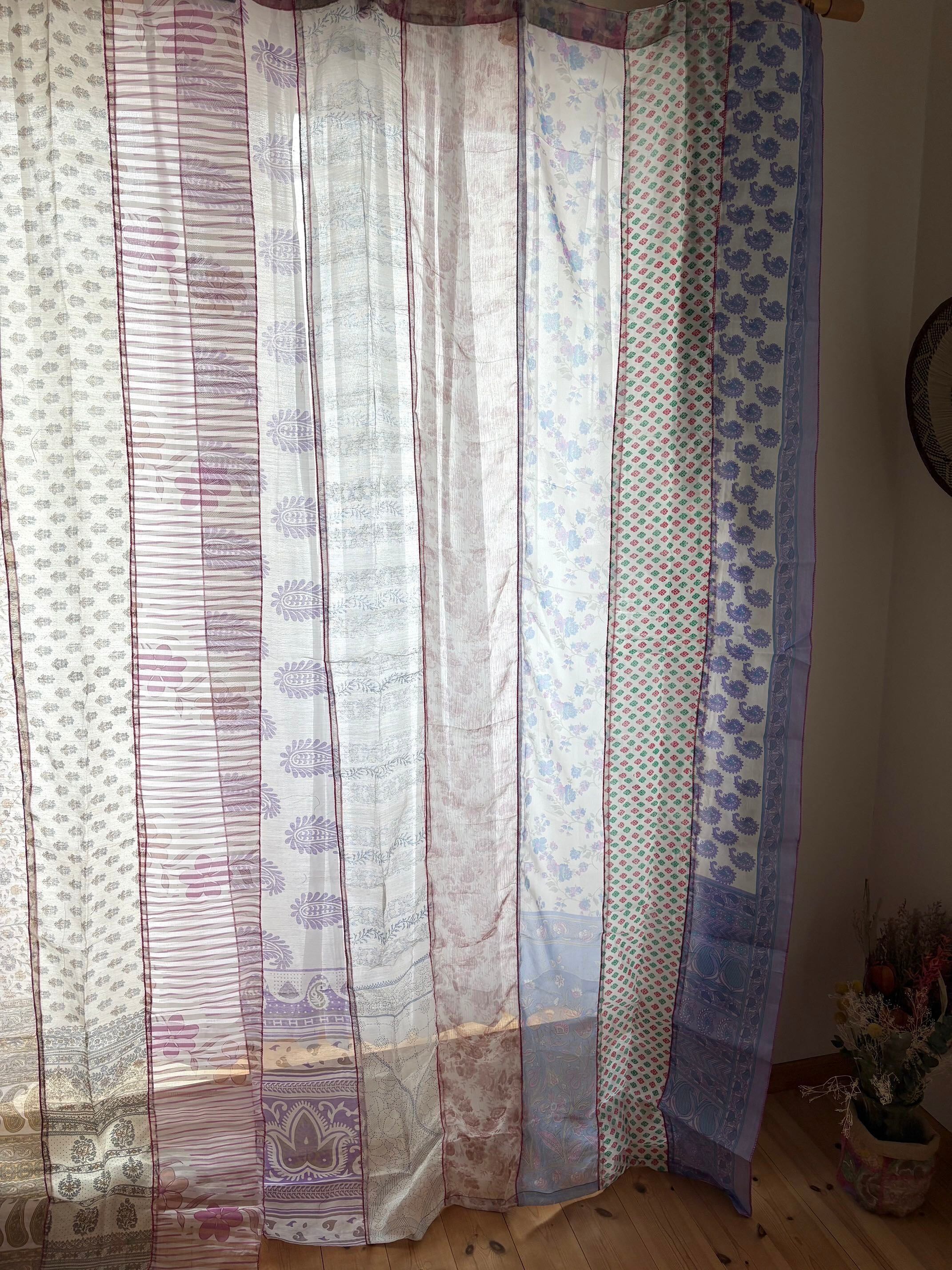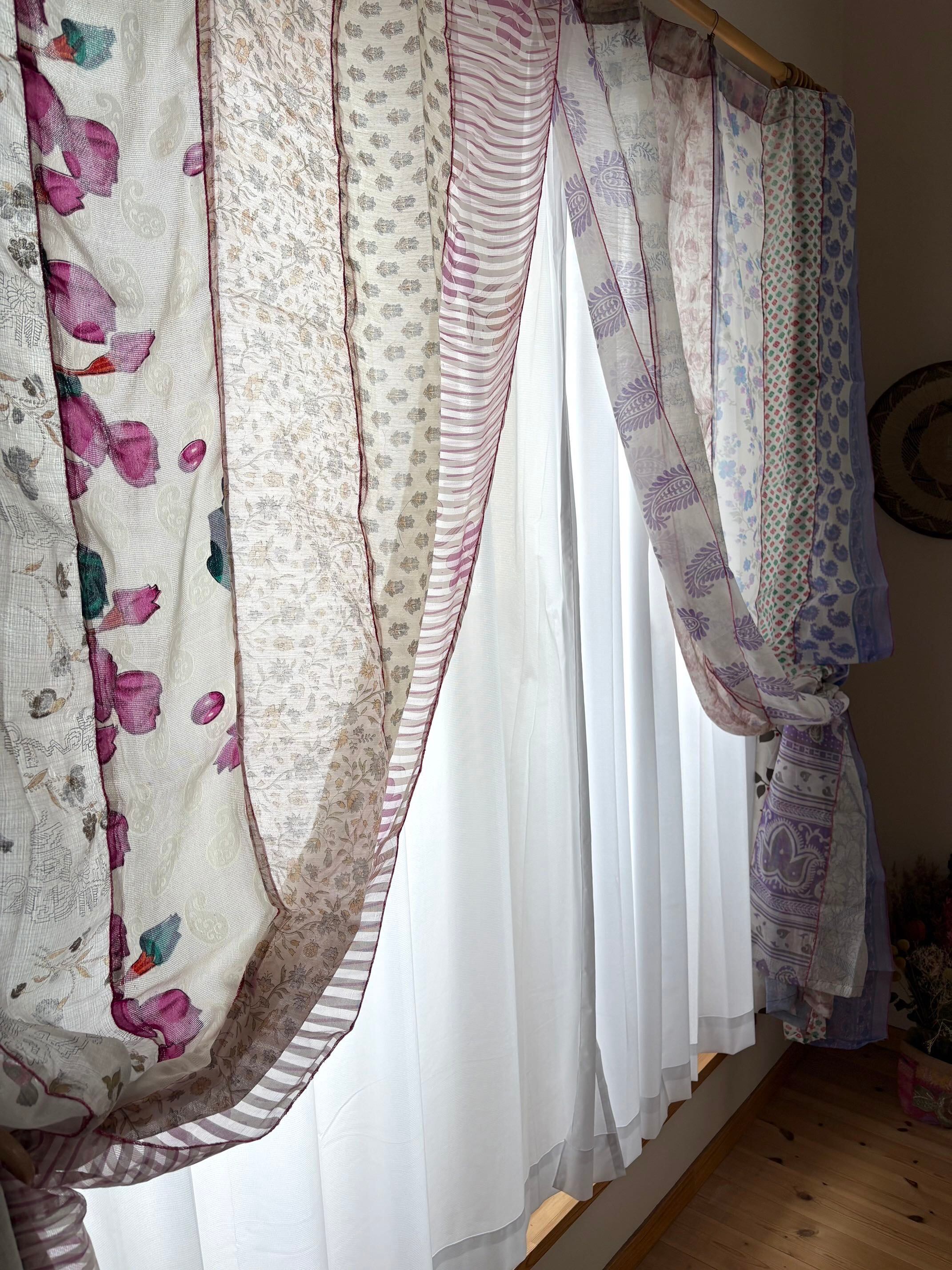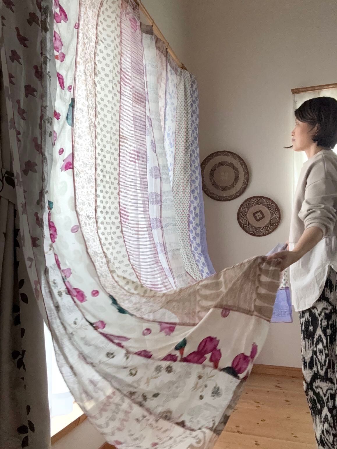 ヴィンテージサリーで出来たパッチワークシルクカーテン