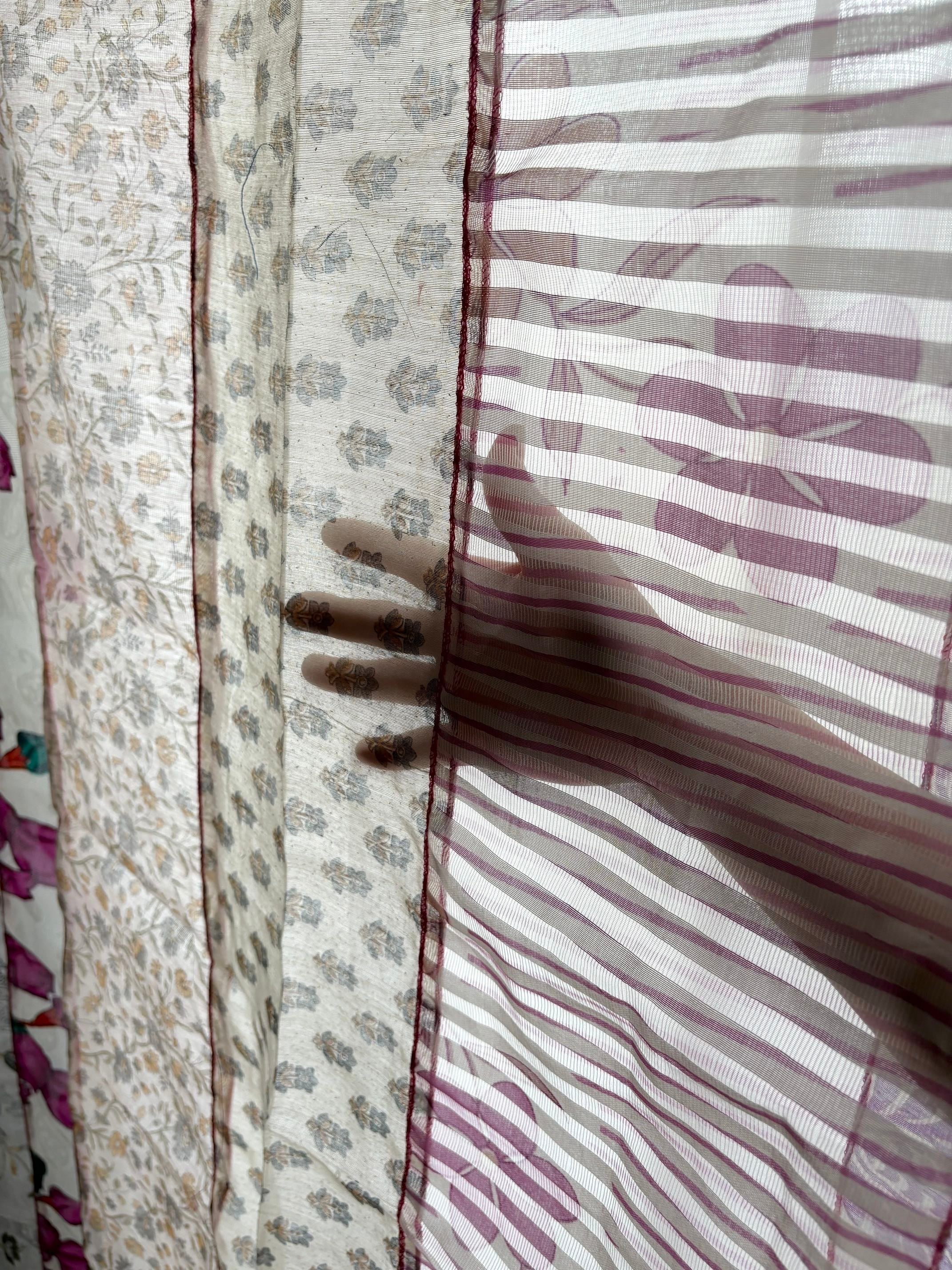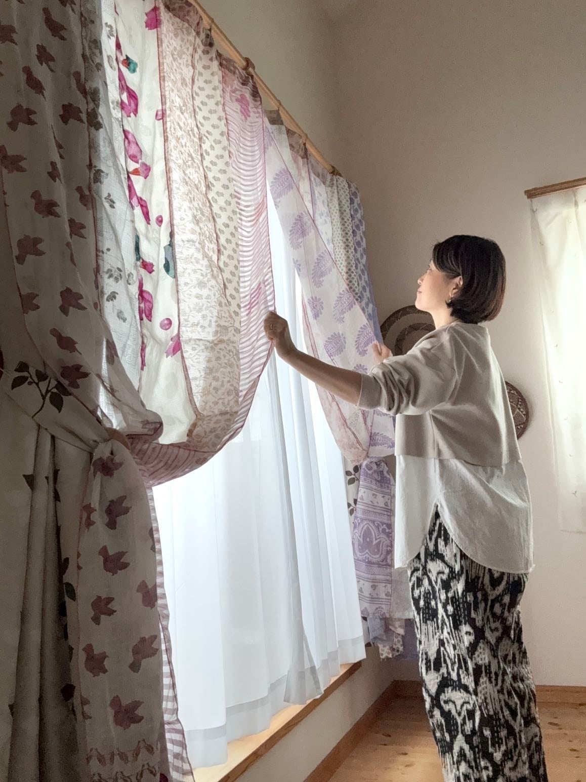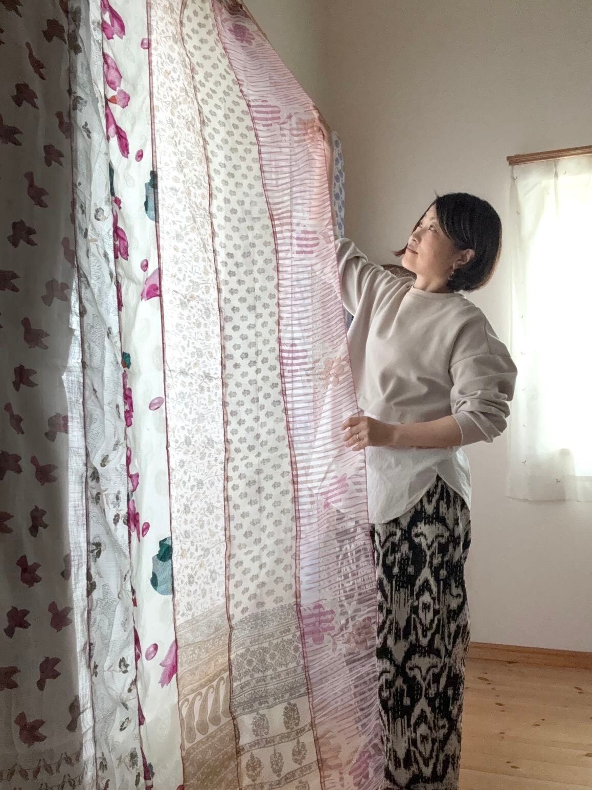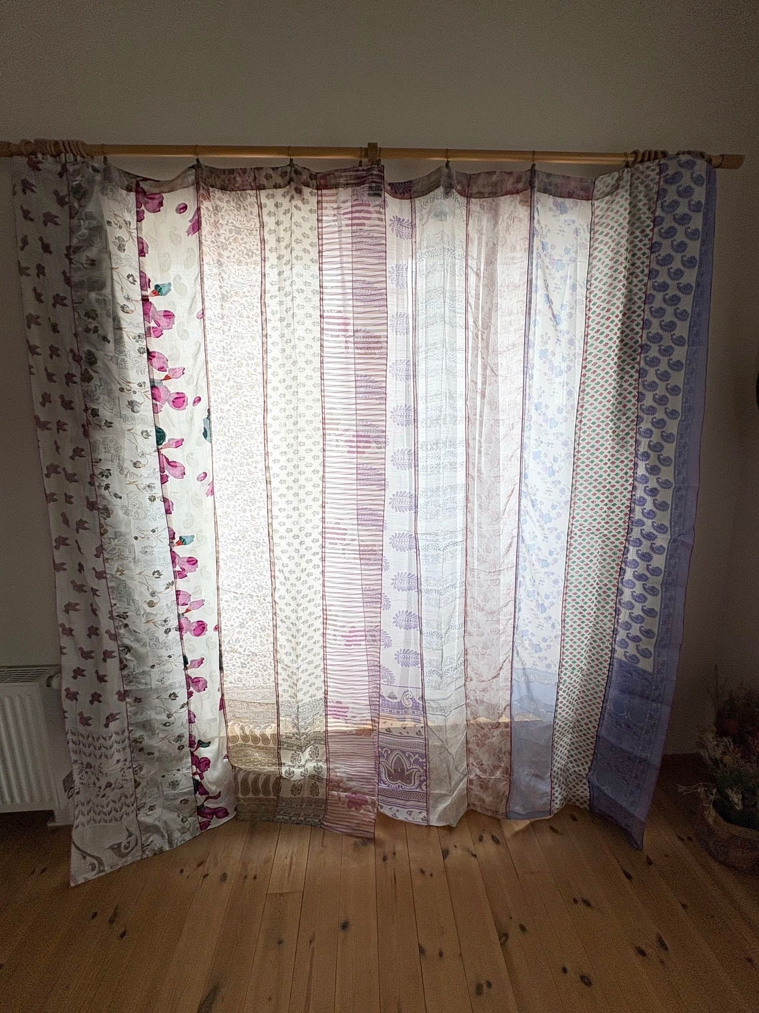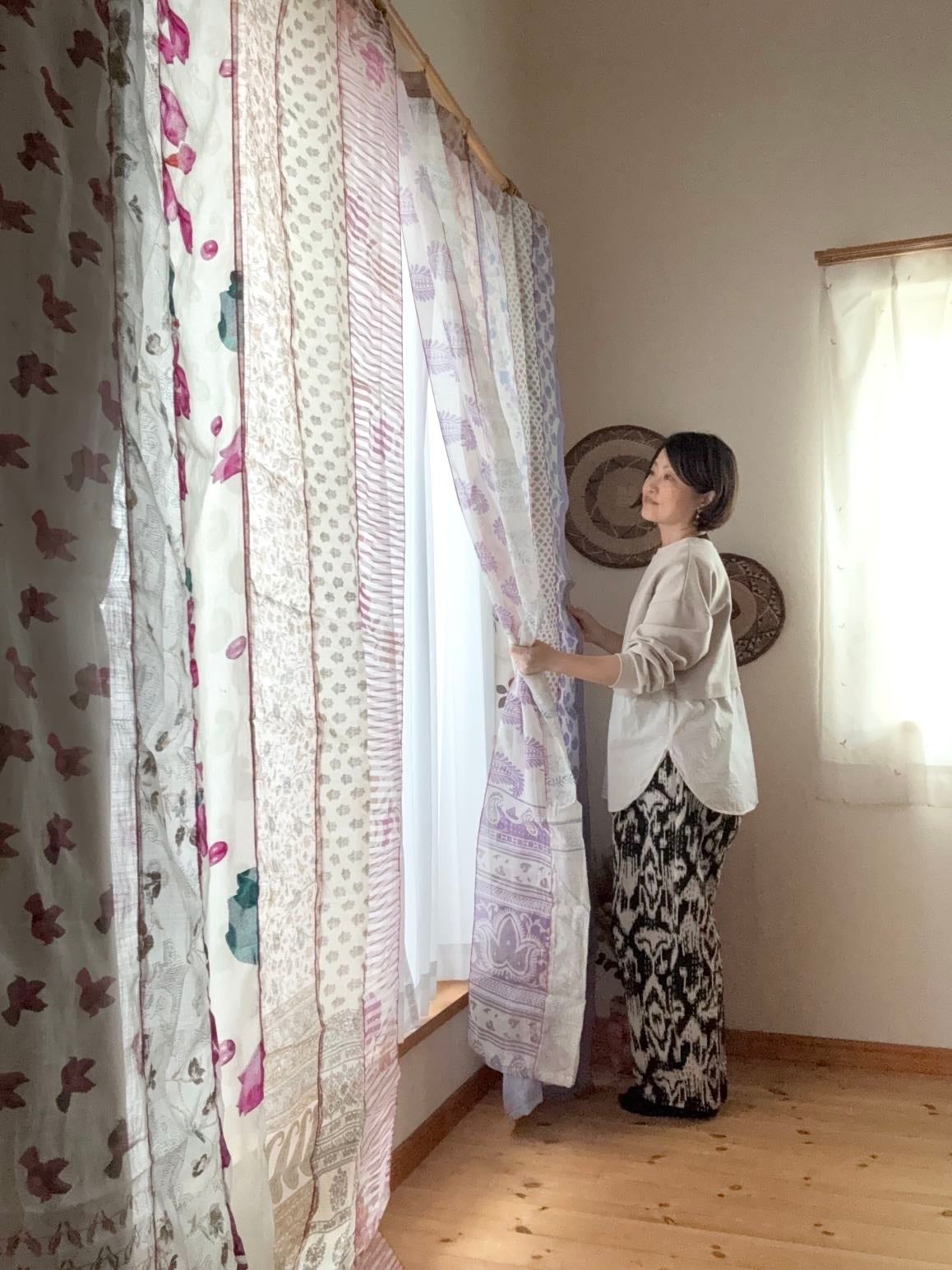 ヴィンテージサリーで出来たパッチワークシルクカーテン