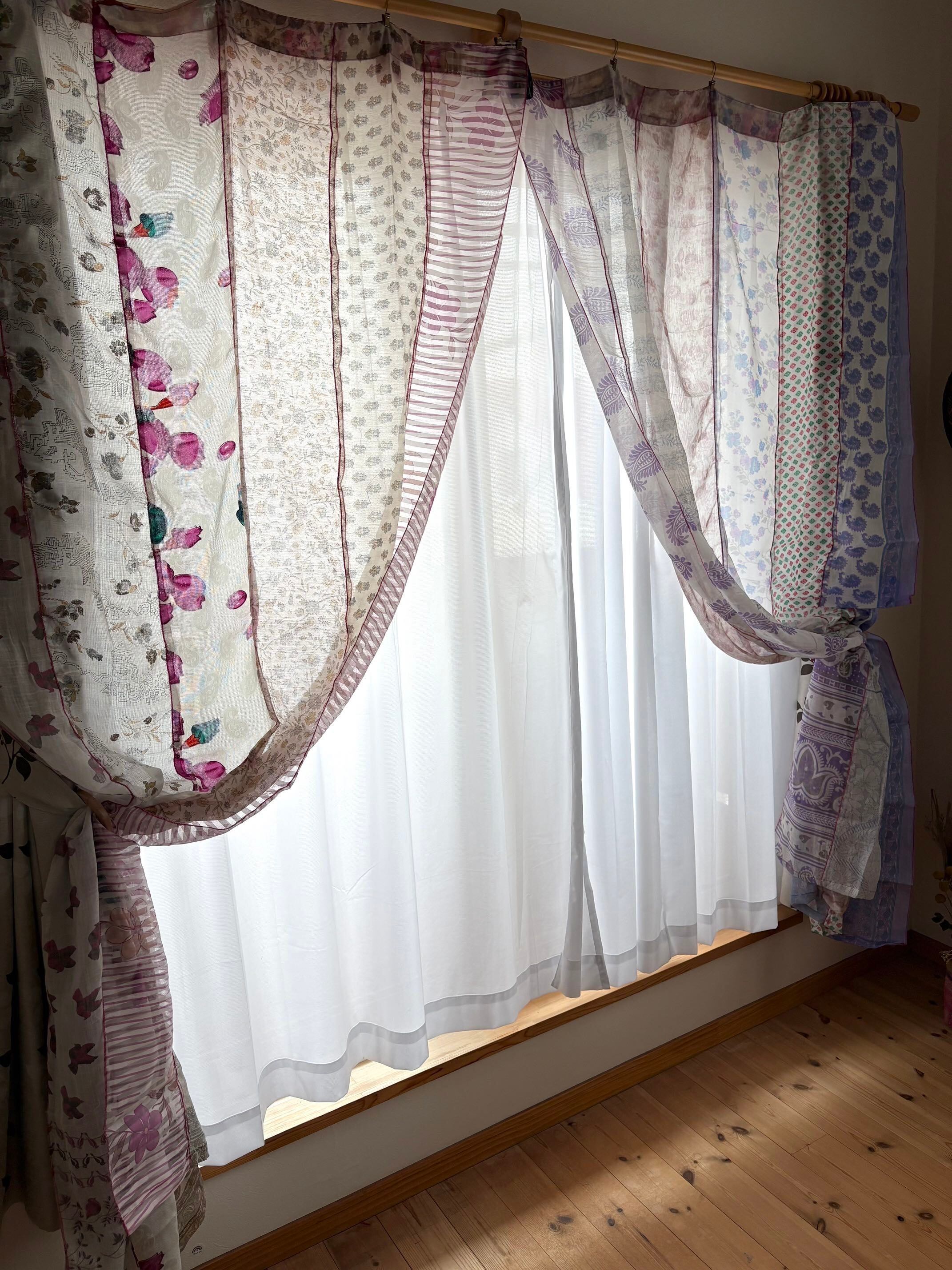 ※カーテンとしては新品未使用ですが、布はヴィンテージサリーを使っております。
