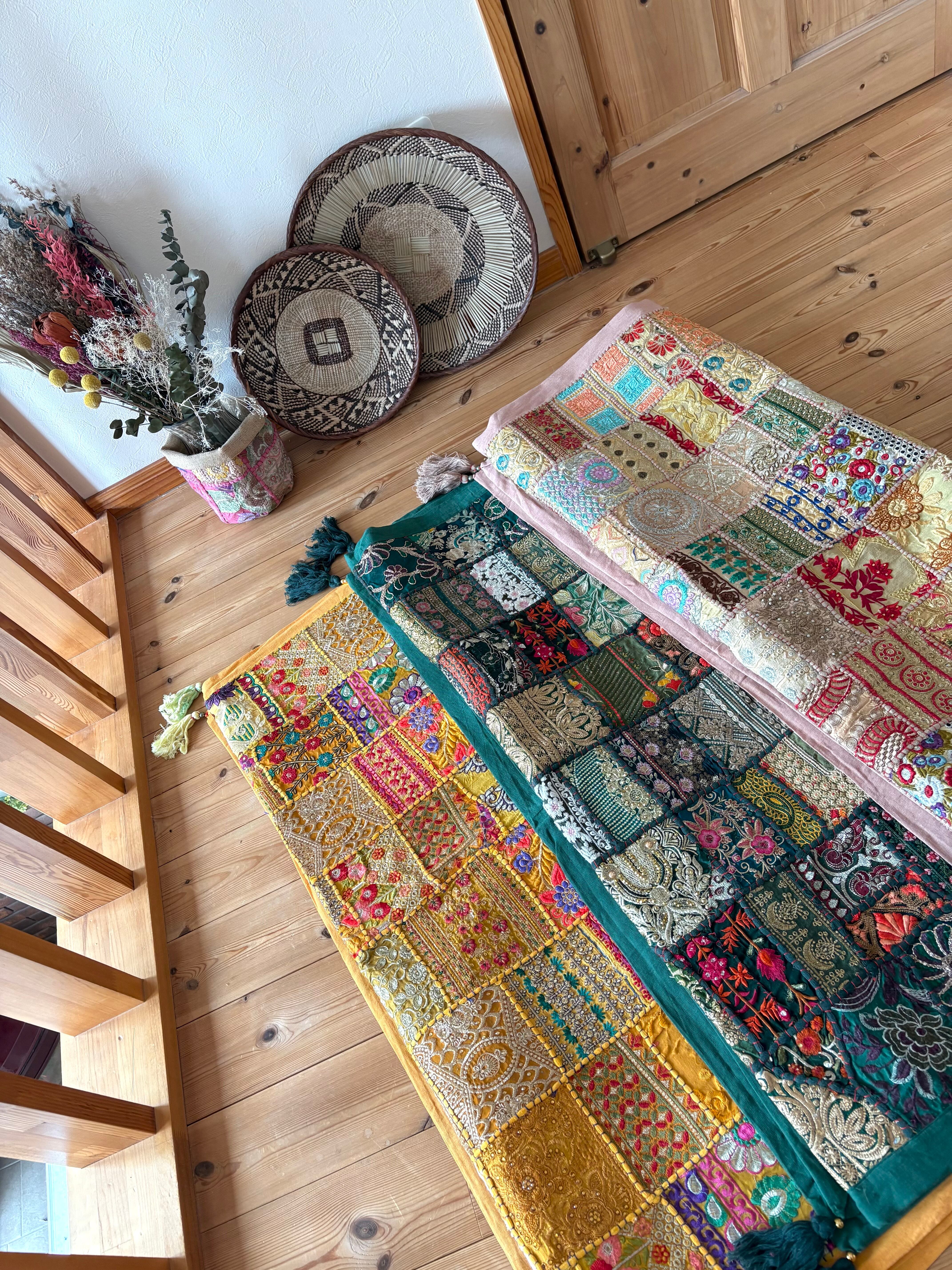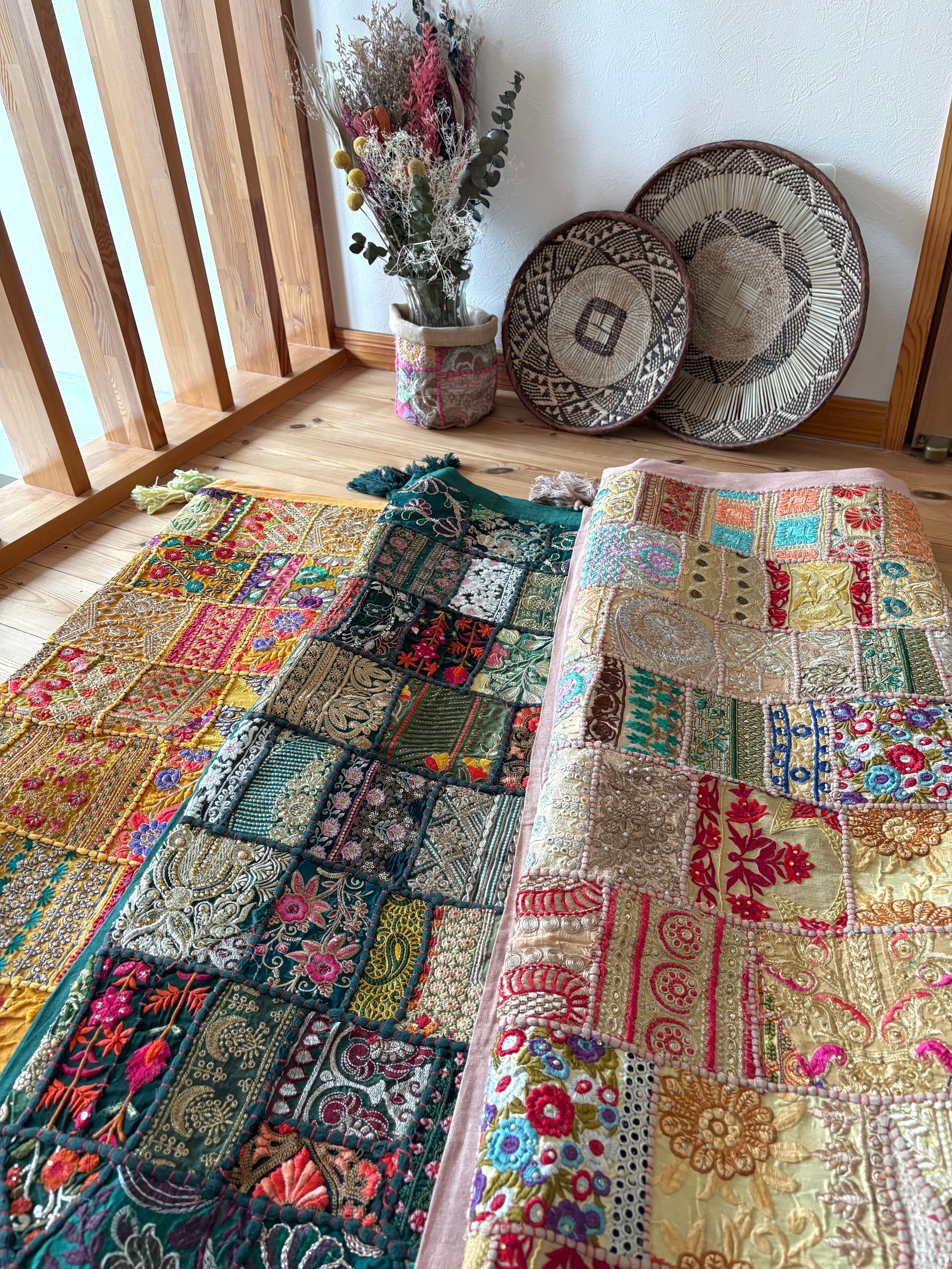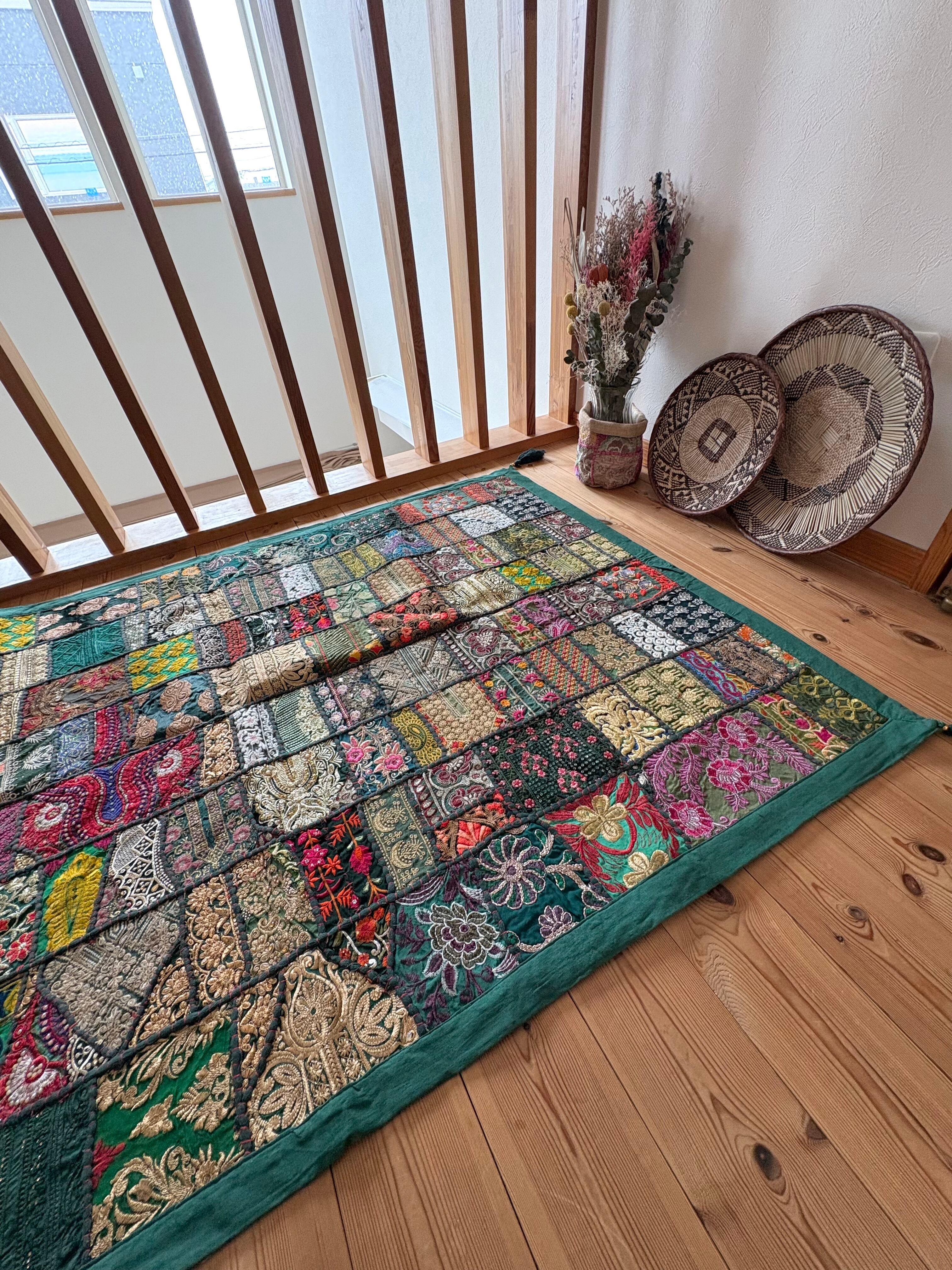 【ザリ刺繍タペストリーパッチワークラグ】