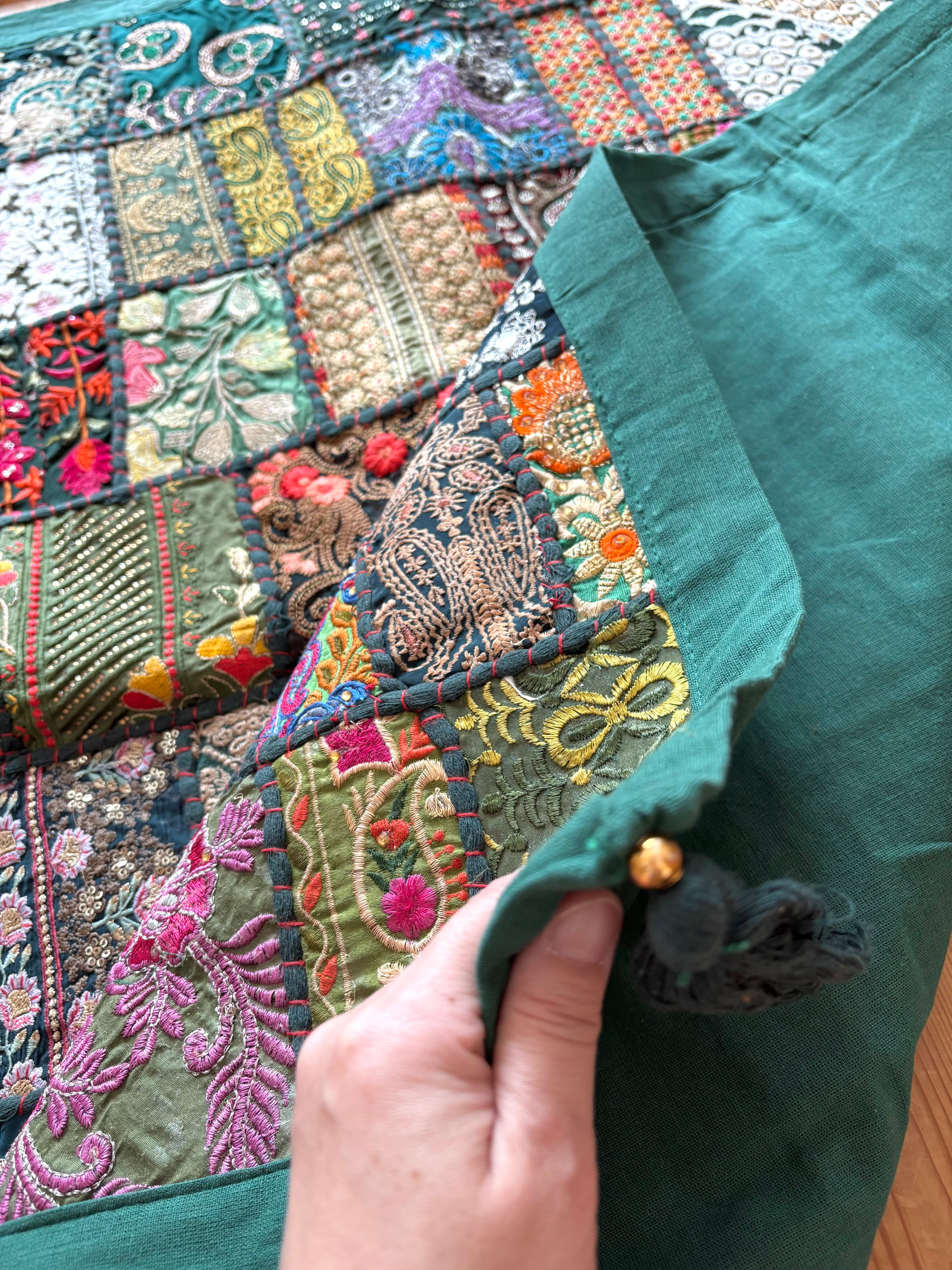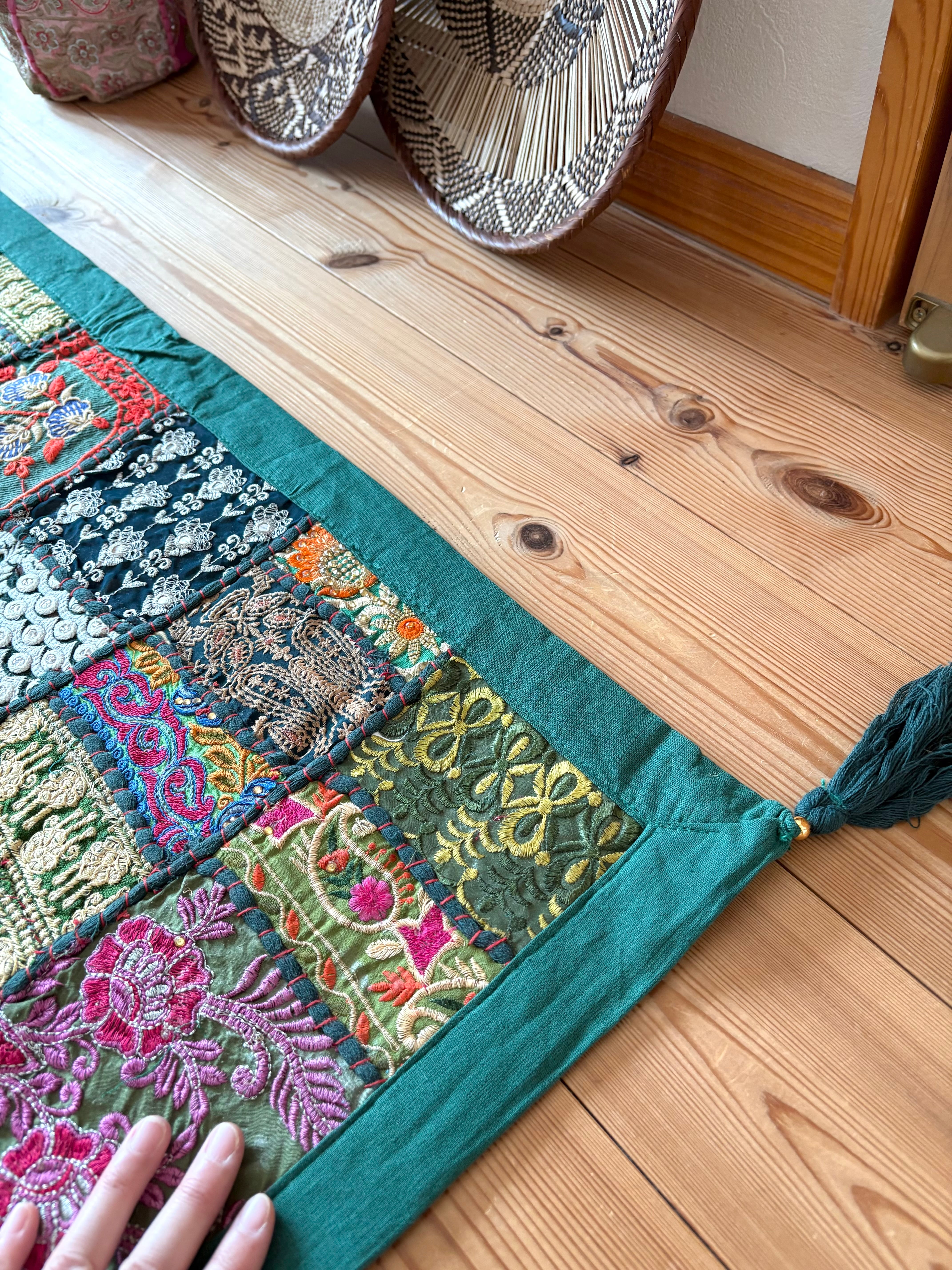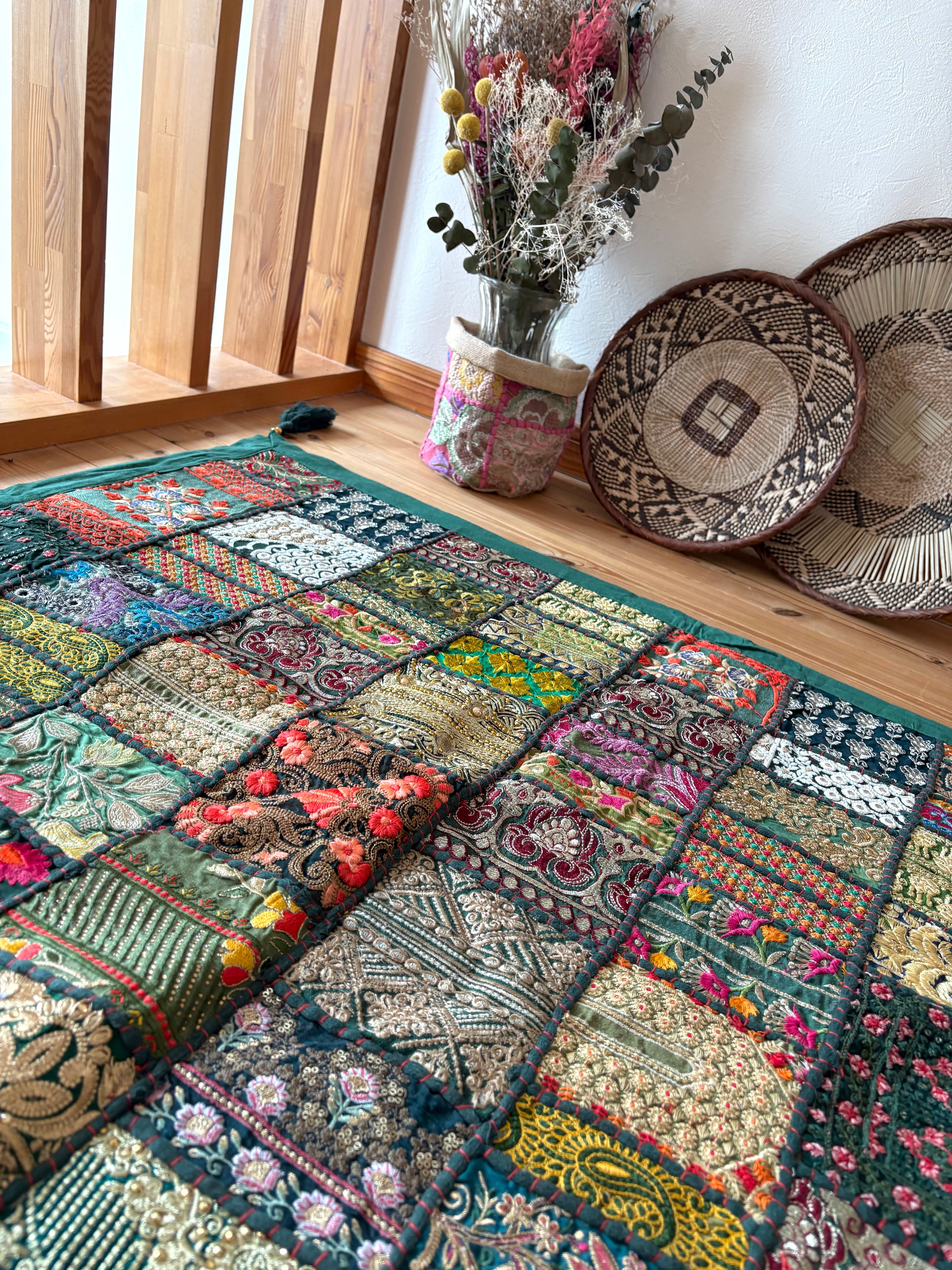 【ザリ刺繍タペストリーパッチワークラグ】