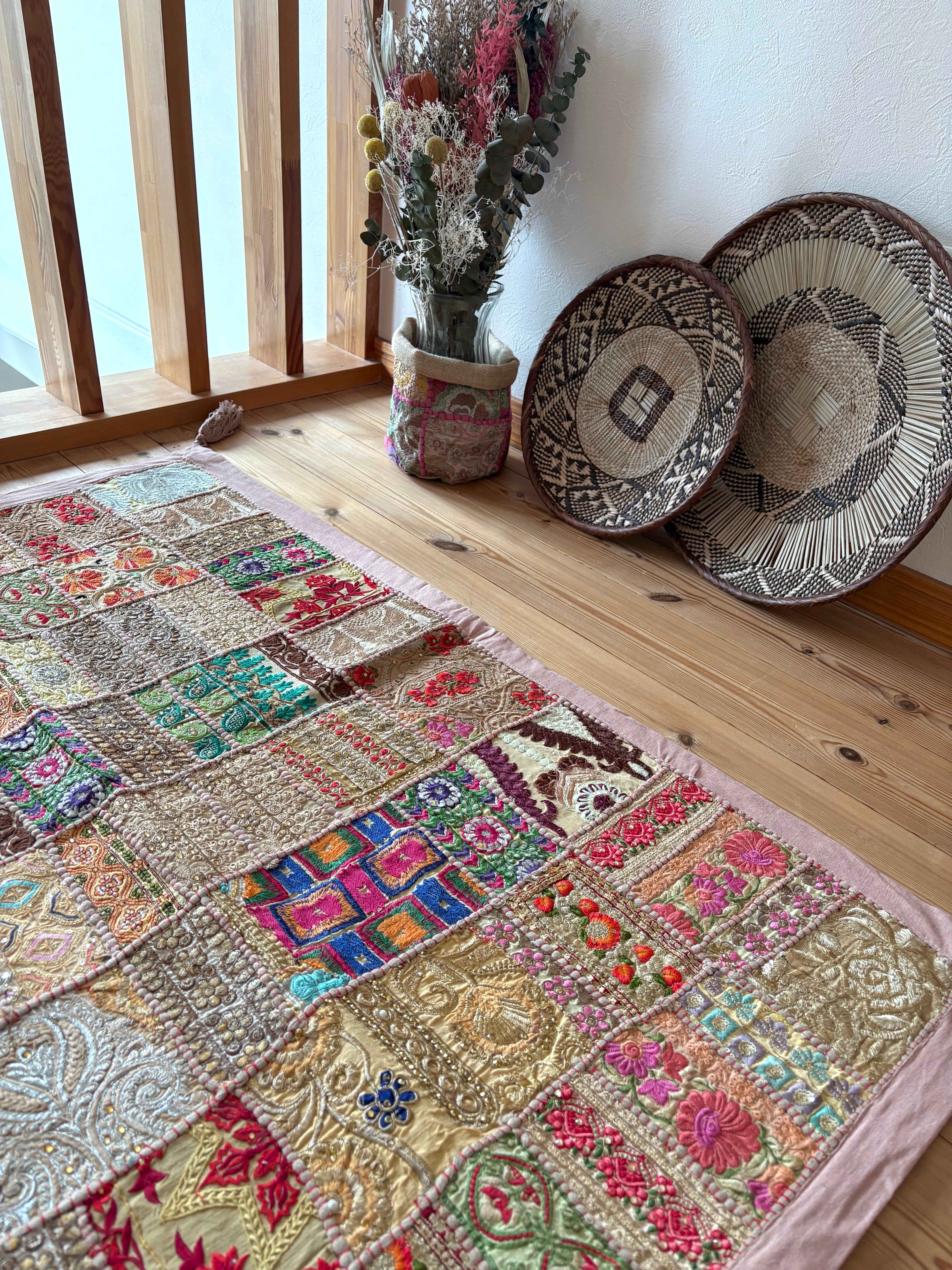 【ザリ刺繍タペストリーパッチワークラグ】