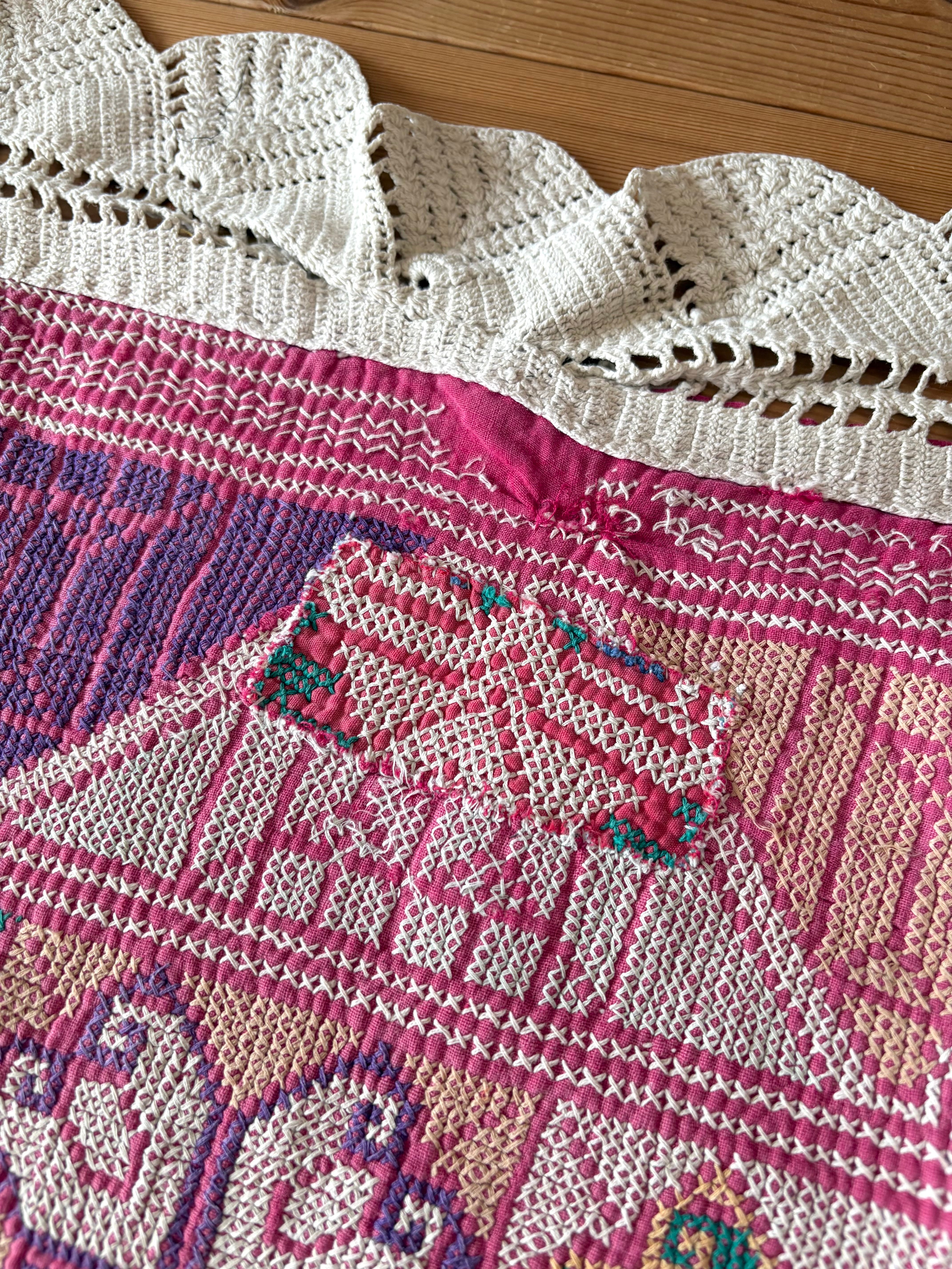 全体的に濃いめのピンク色で賑やかなお庭のようなキルトです♡