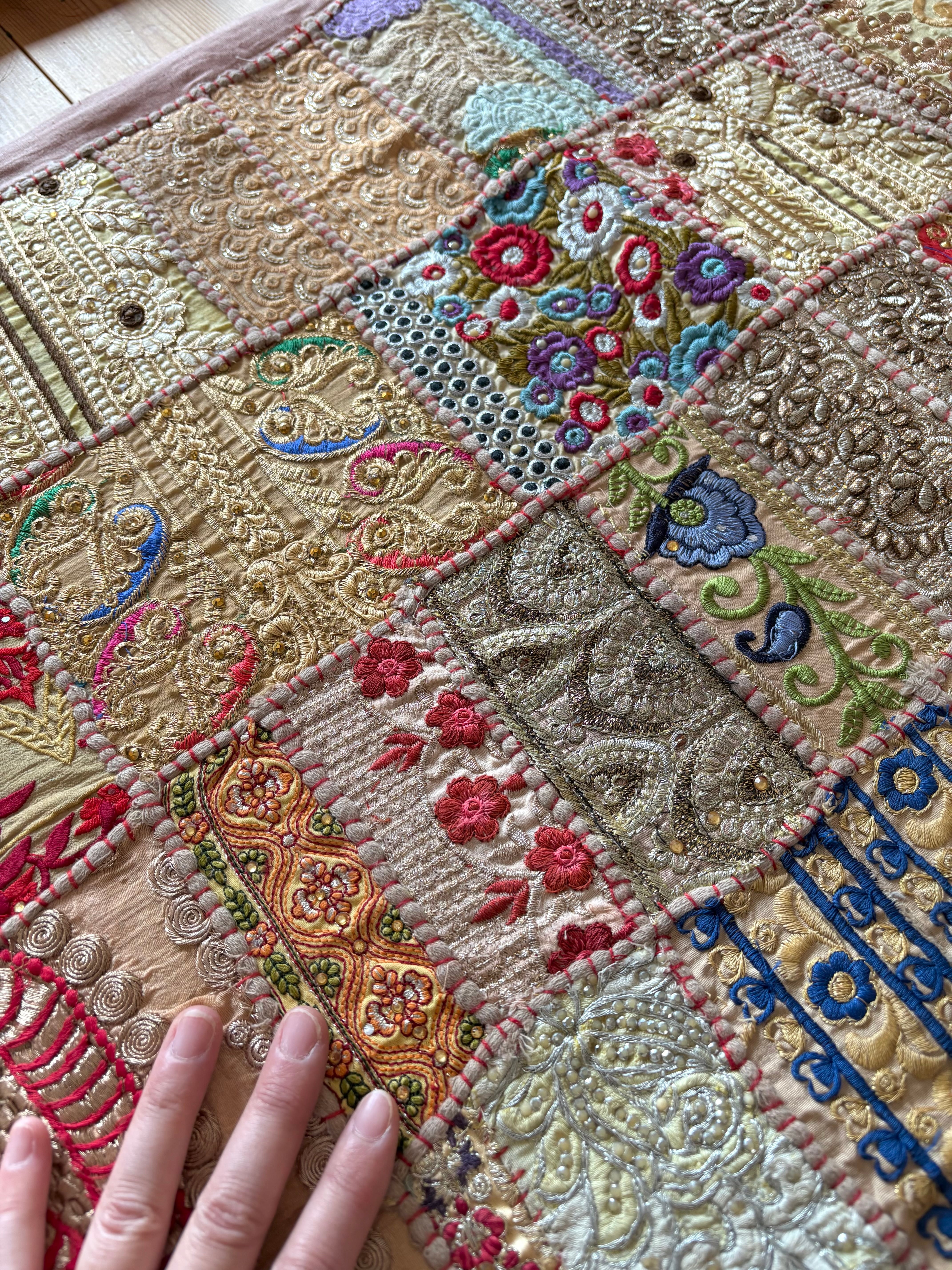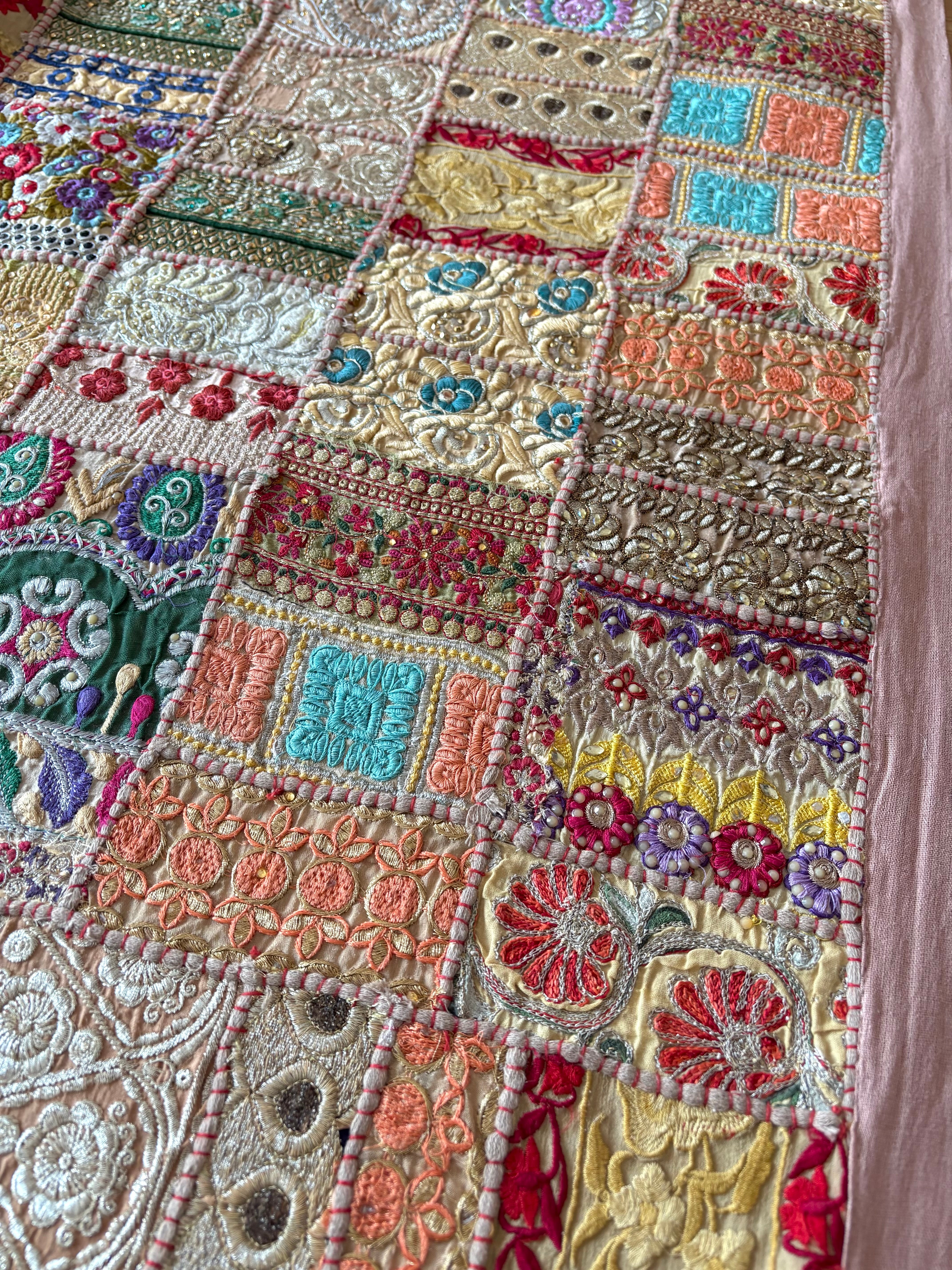 【ザリ刺繍タペストリーパッチワークラグ】