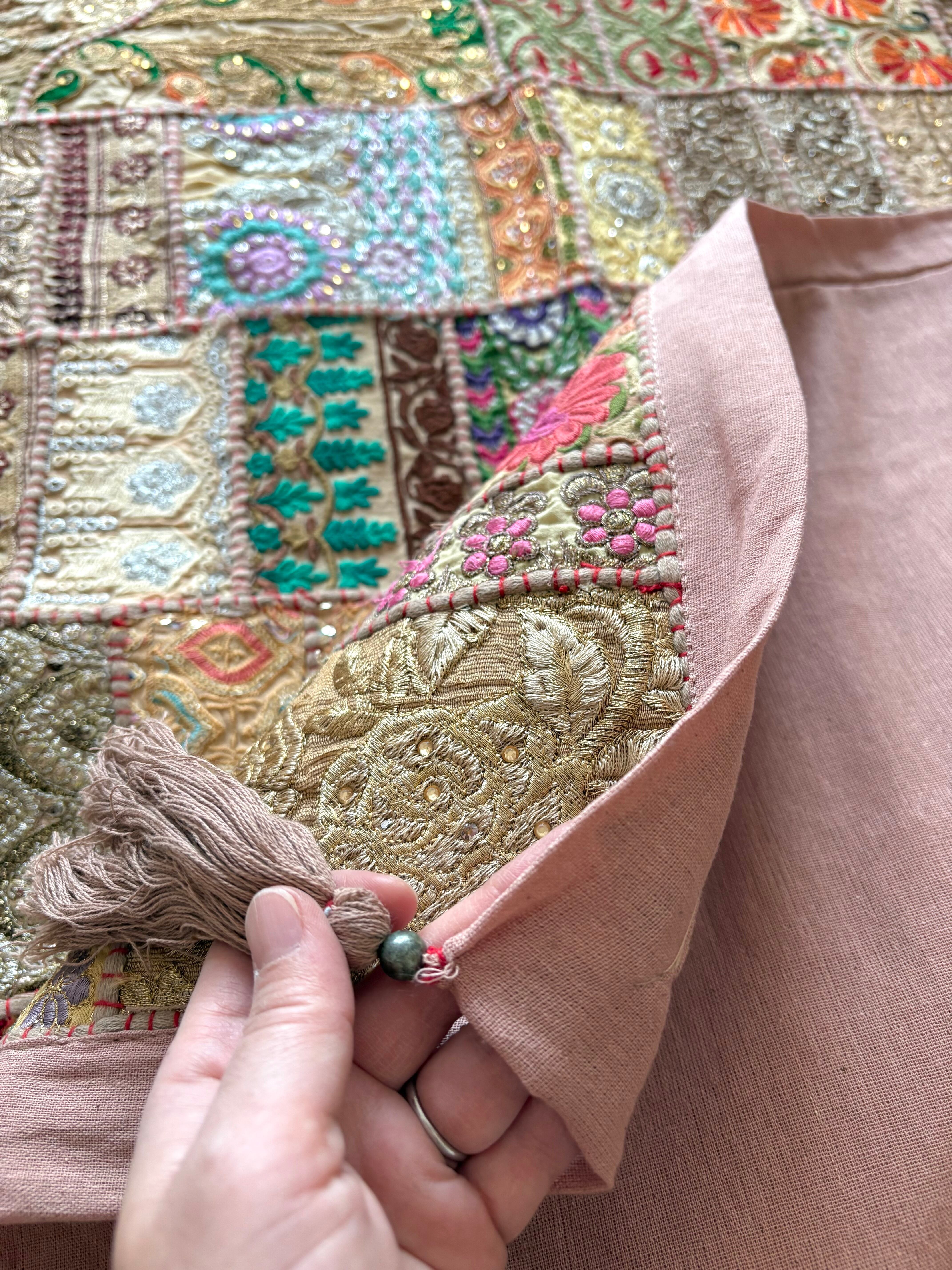 ピンクベージュ/ザリ刺繍タペストリーラグ