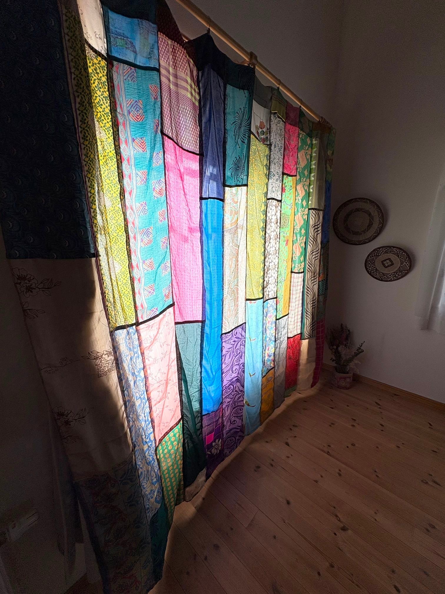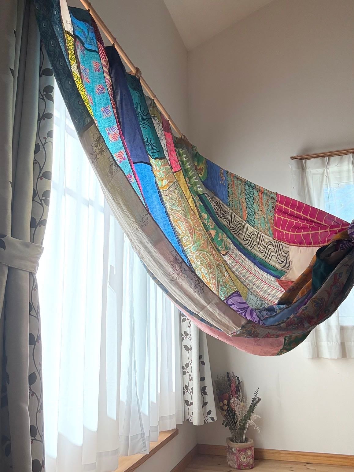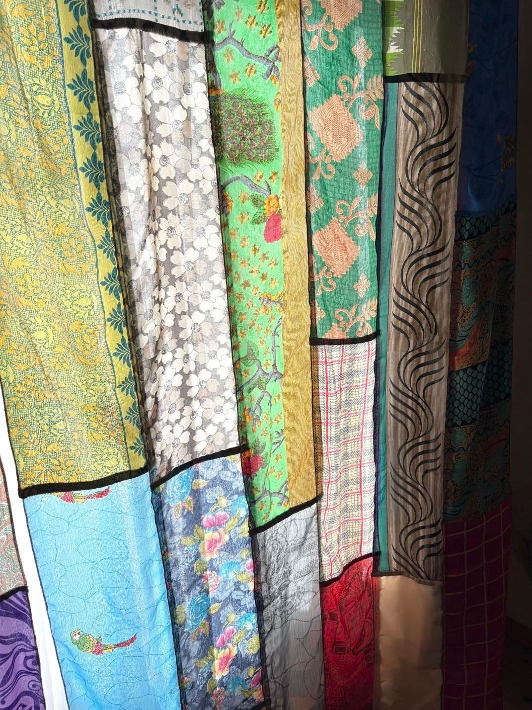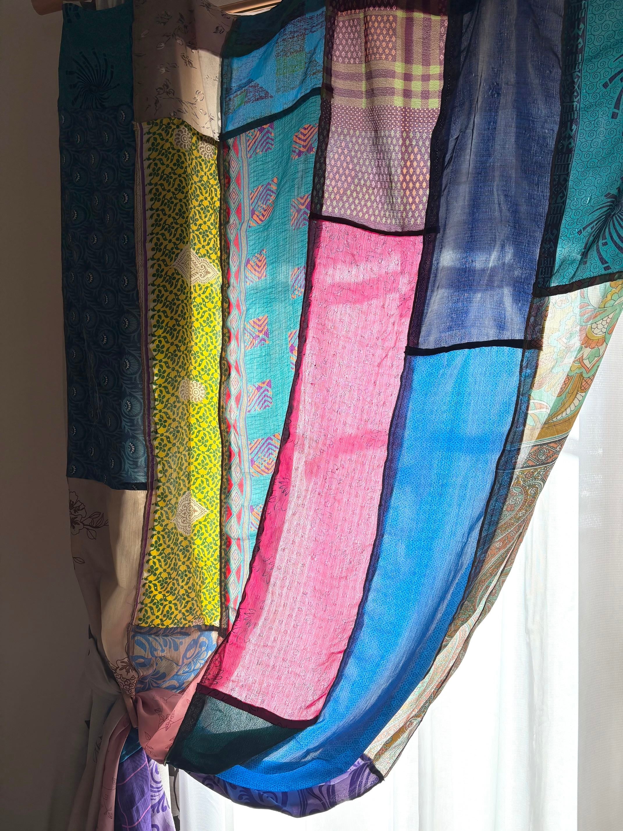 ヴィンテージサリーで出来たパッチワークシルクカーテン