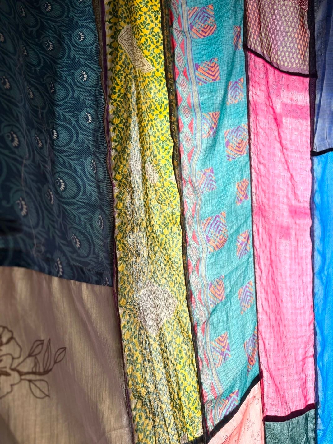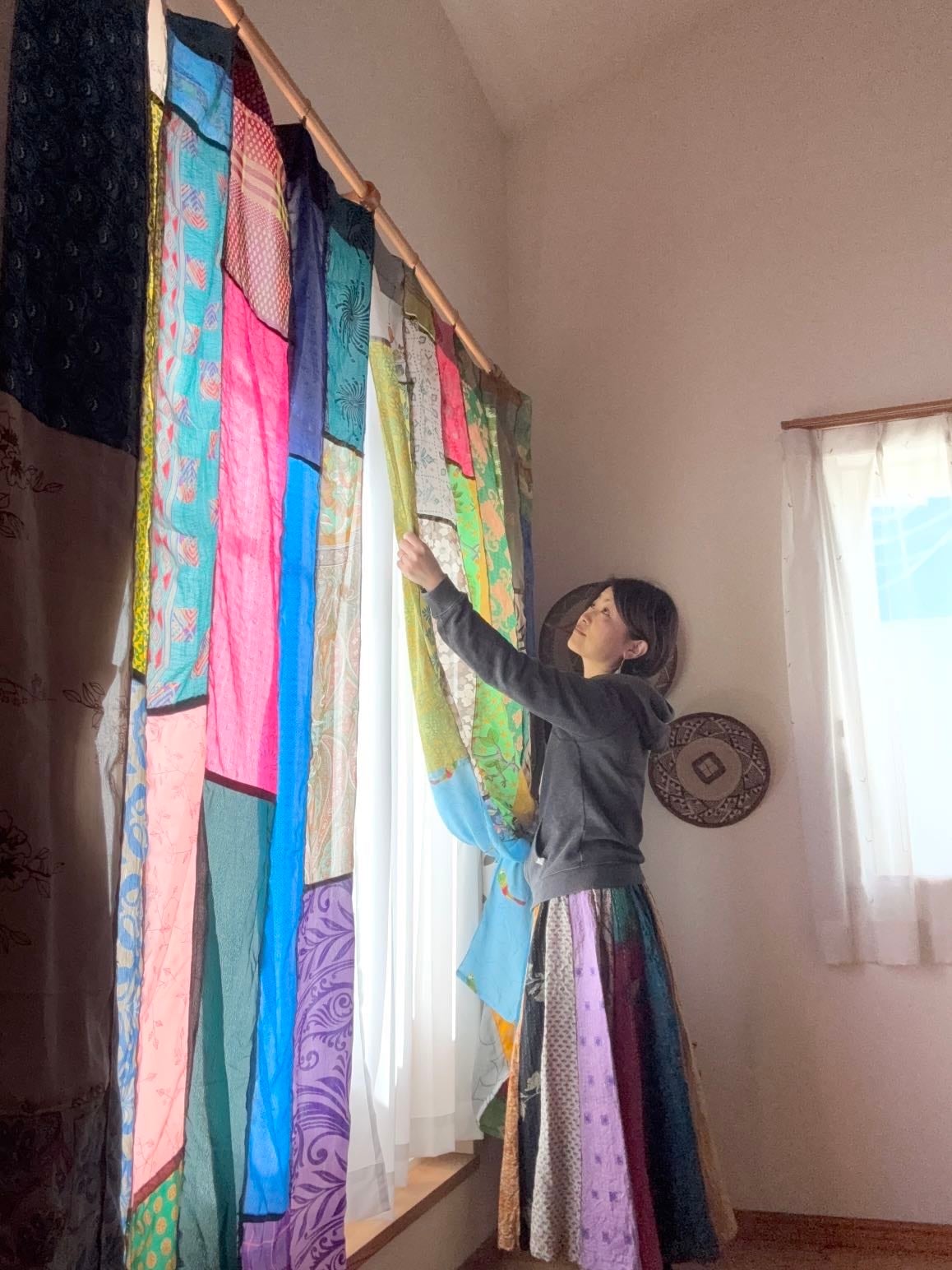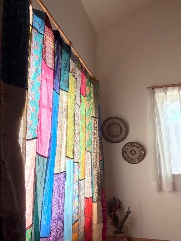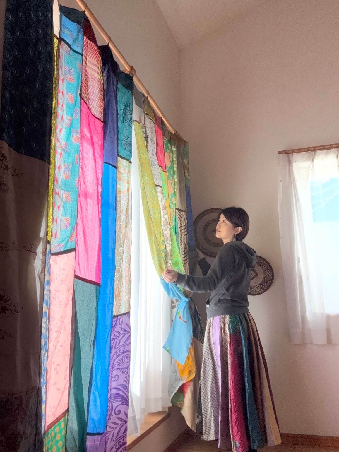 ヴィンテージサリーで出来たパッチワークシルクカーテン