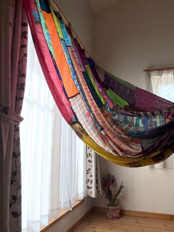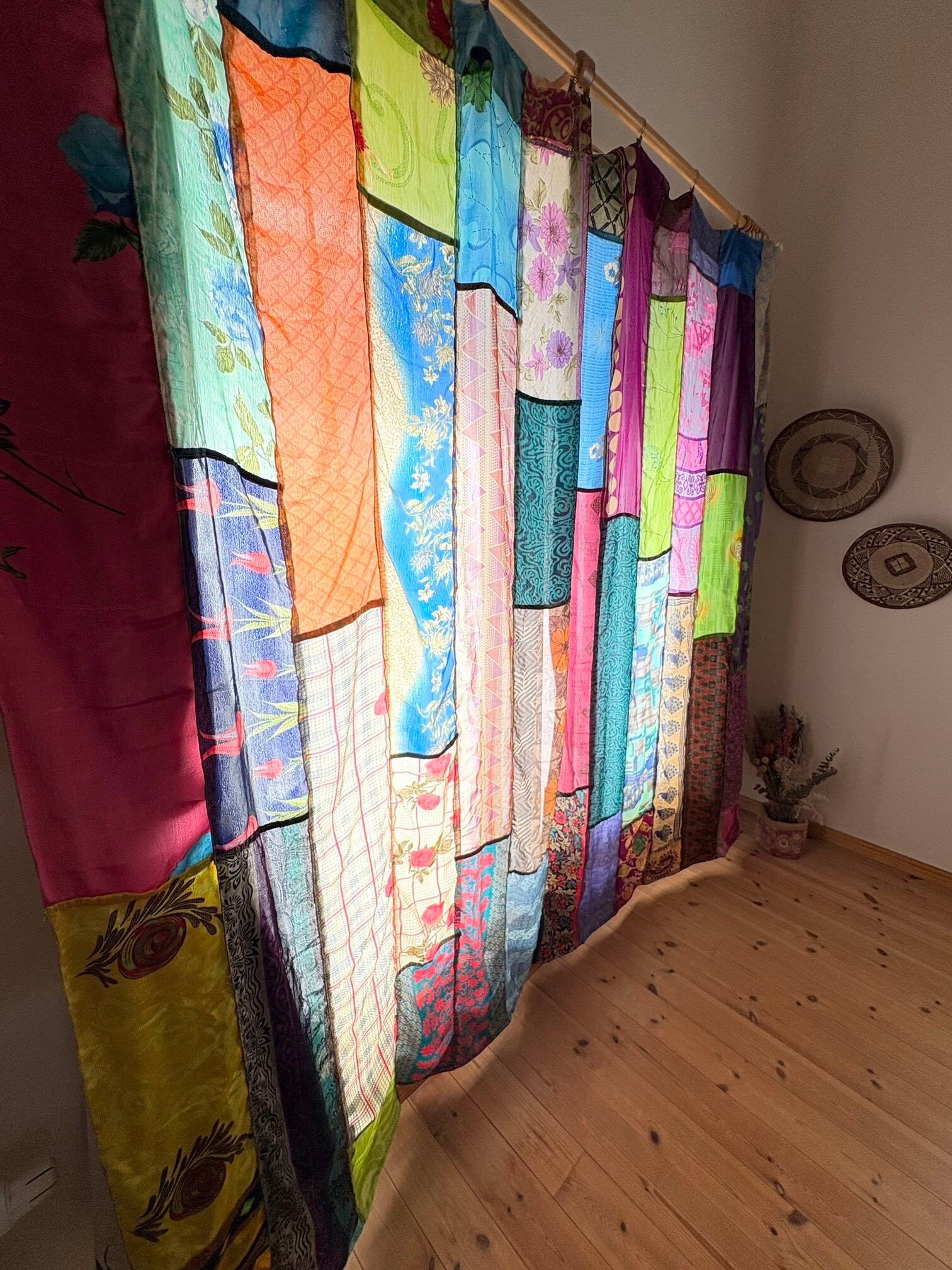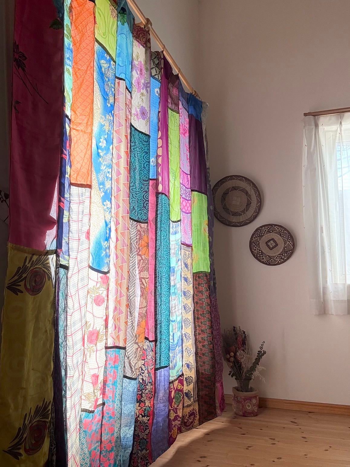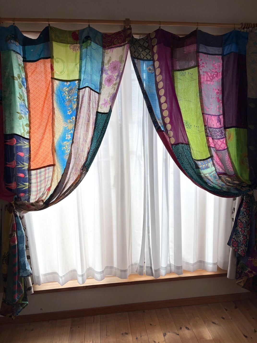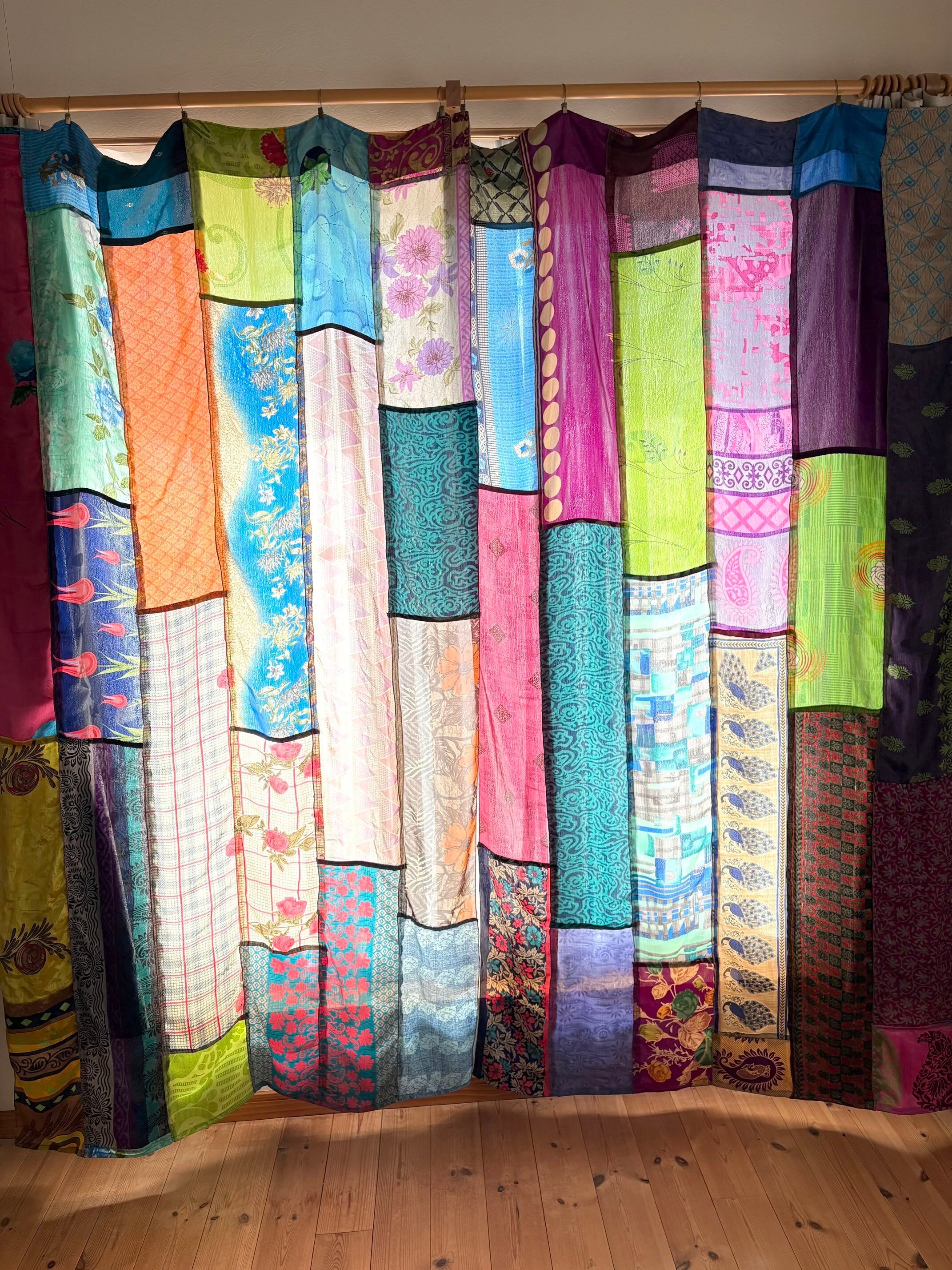 ヴィンテージサリーで出来たパッチワークシルクカーテン