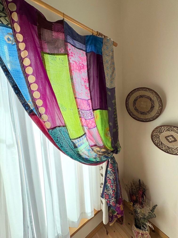 ※カーテンとしては新品未使用ですが、布はヴィンテージサリーを使っております。